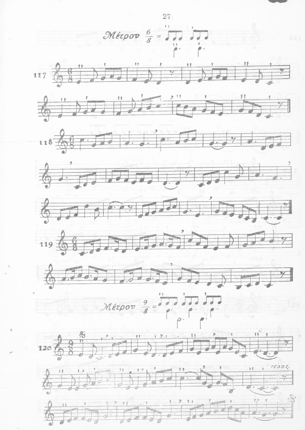 Σχολικό εγχειρίδιο Μουσικής για την Α', Β', Γ', Δ' Γυμνασίου, Πρακτικών Λυκείων και Διδασκαλείων. Περιέχει ασκήσεις μελωδικές, χωρίς θεωρία.