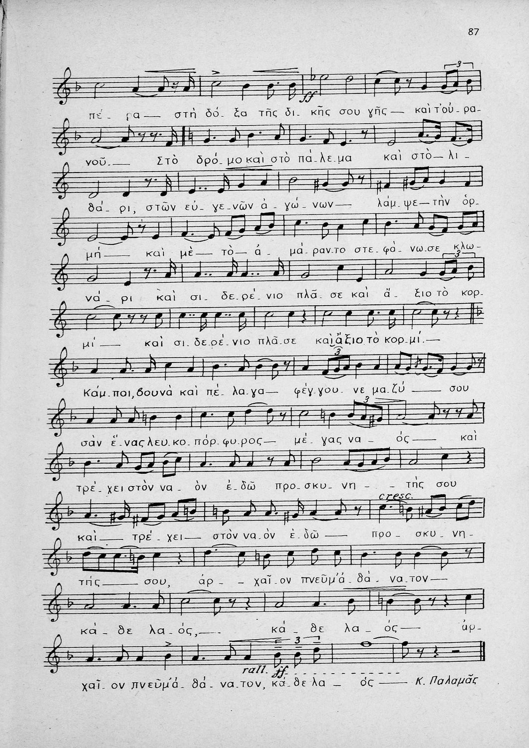 Σχετιζόμενοι όροι:  άσματα, ποιήματα, προσευχή, εμβατήριο