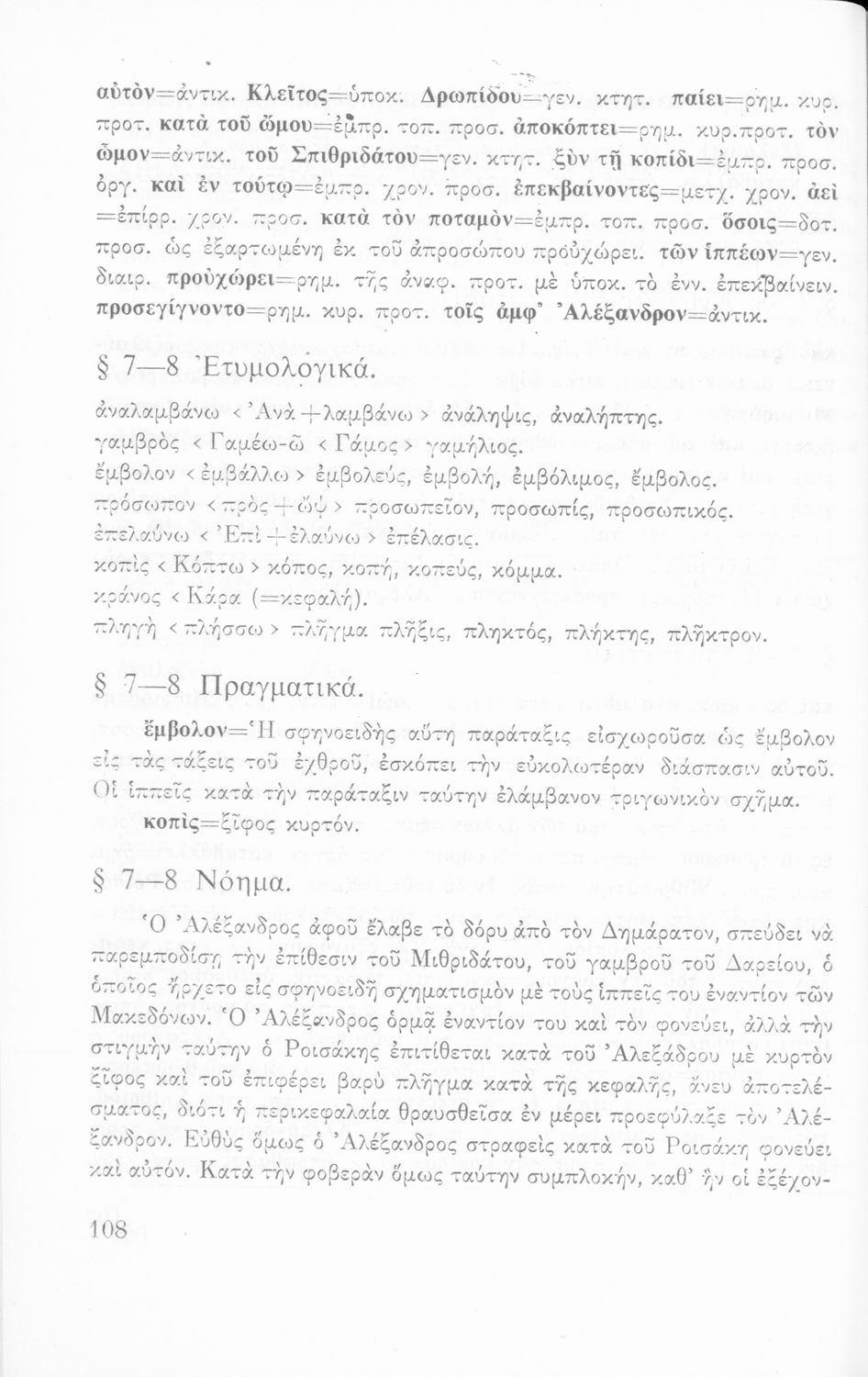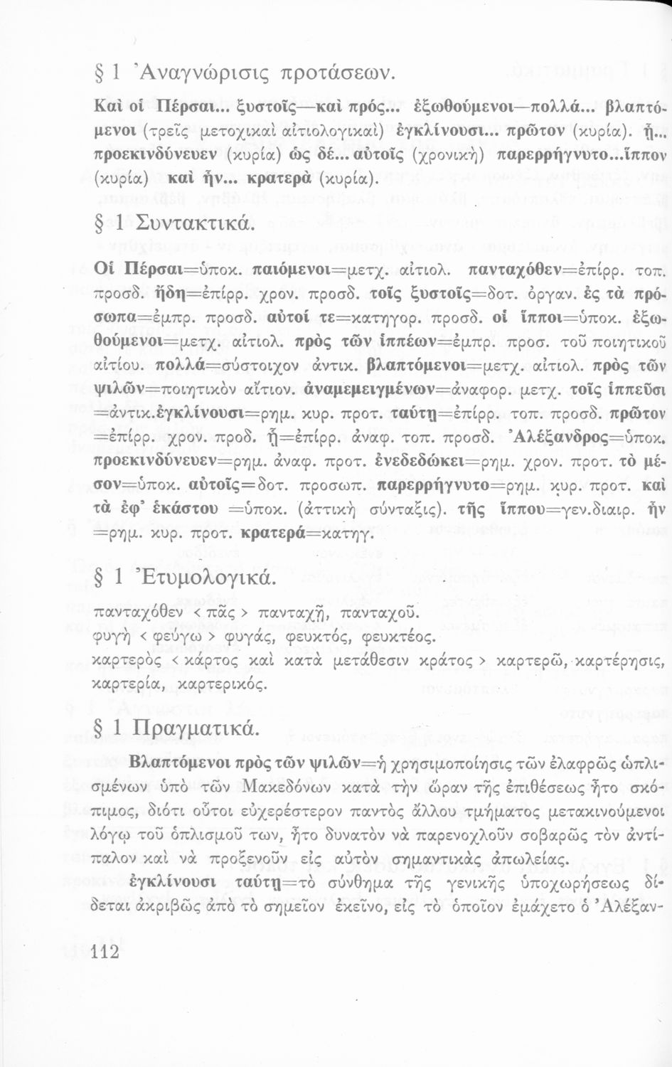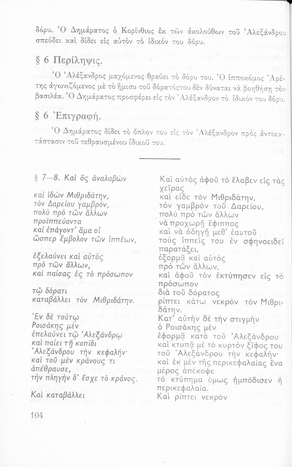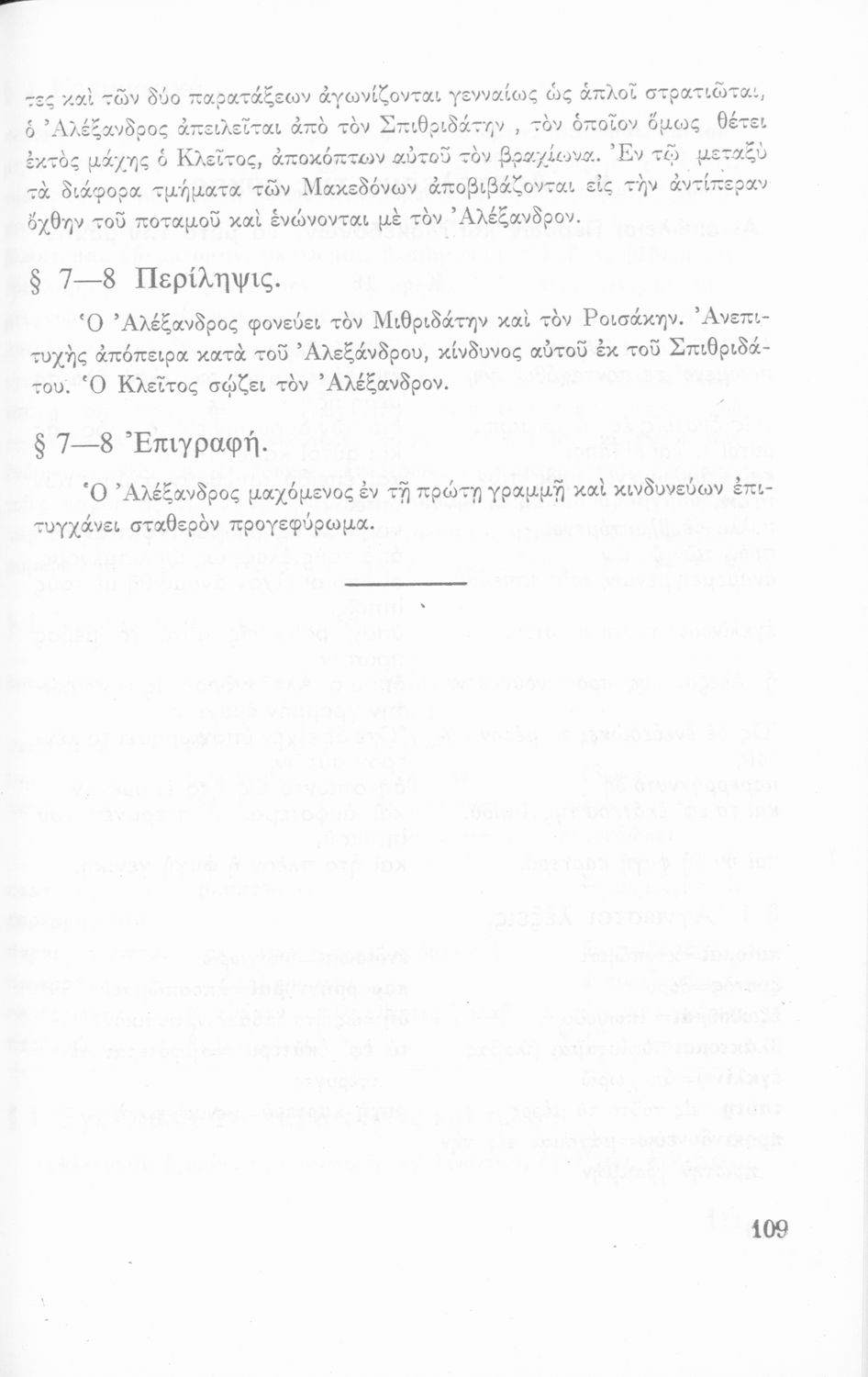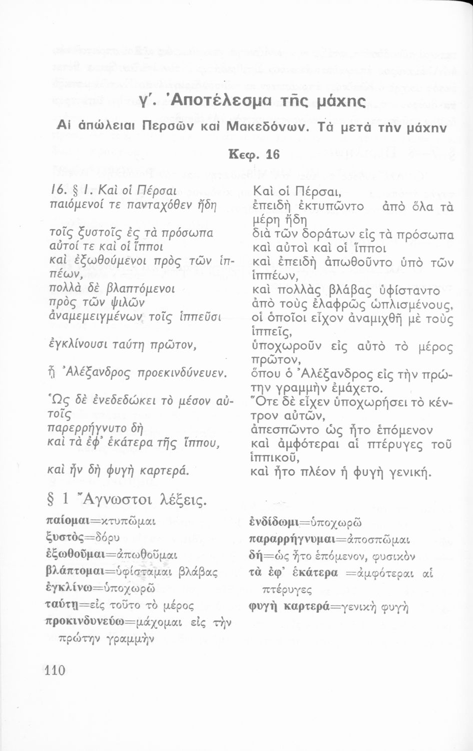Μαθητικό βοήθημα Αρχαίων Ελληνικών Γ' Γυμνασίου που περιλαμβάνει αποσπάσματα από το έργο του Αρριανού Αλεξάνδρου Ανάβασις, ερμηνευτικά και γραμματικά σχόλια καθώς και χρονικές και εγκλιτικές αντικαταστάσεις. Ο συγγραφέας ήταν Γυμνασιάρχης.