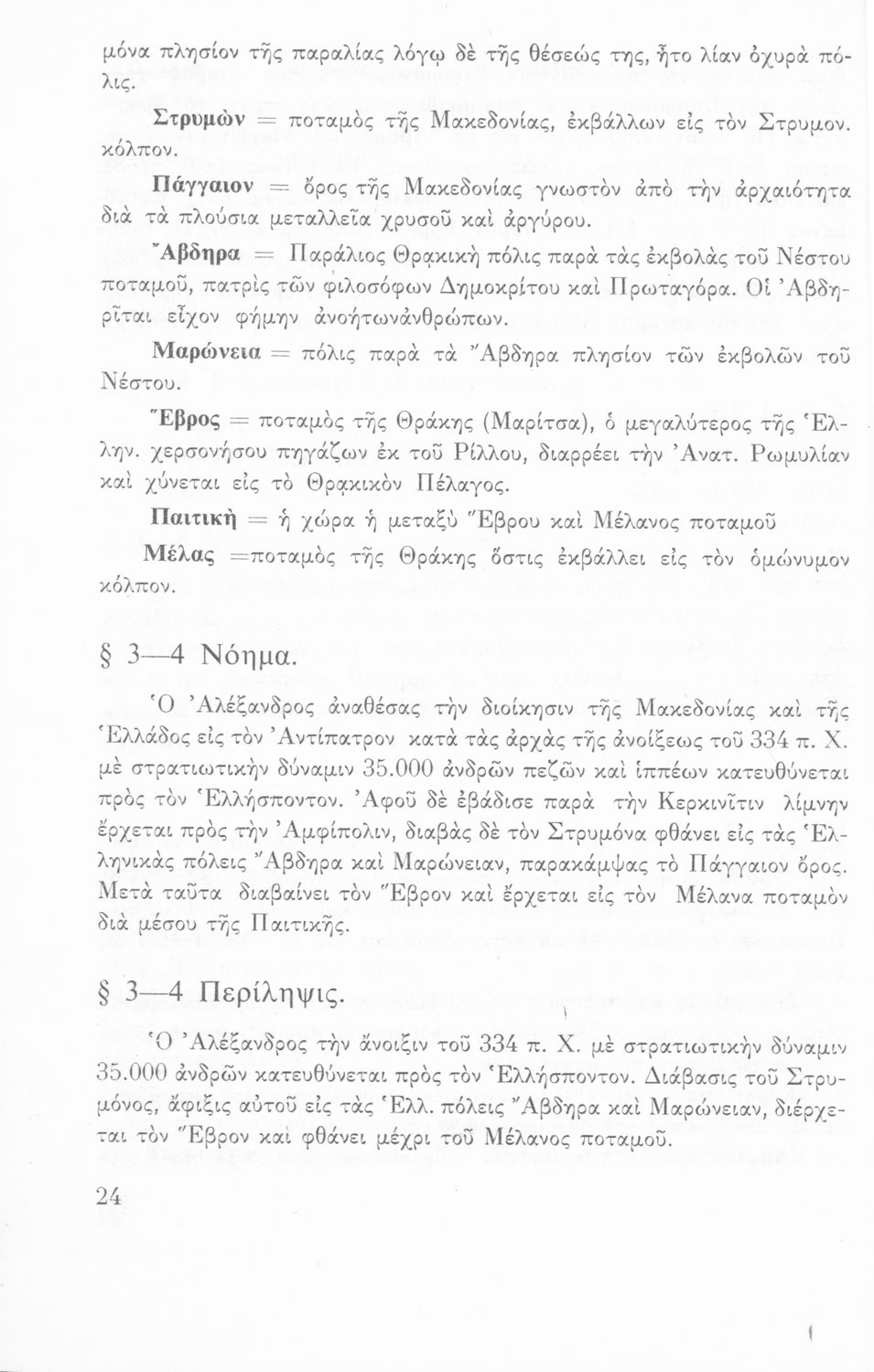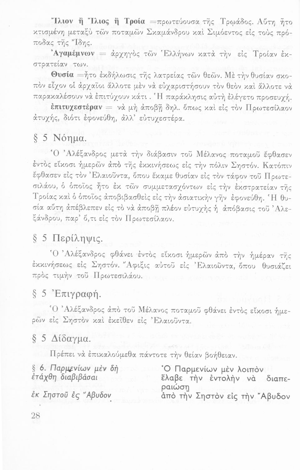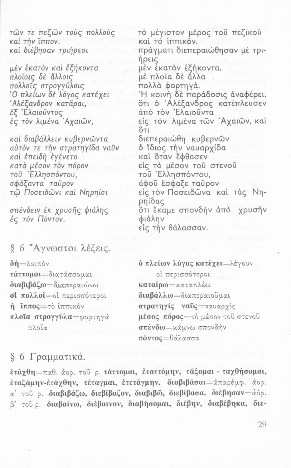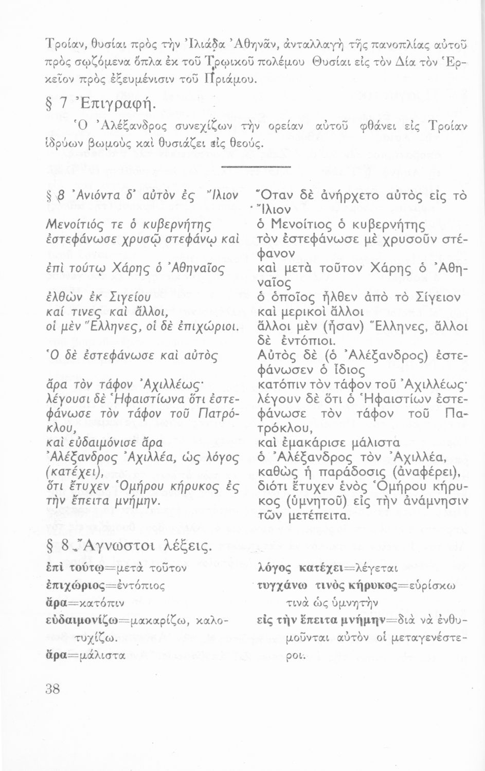 Μαθητικό βοήθημα Αρχαίων Ελληνικών Γ' Γυμνασίου που περιλαμβάνει αποσπάσματα από το έργο του Αρριανού Αλεξάνδρου Ανάβασις, ερμηνευτικά και γραμματικά σχόλια καθώς και χρονικές και εγκλιτικές αντικαταστάσεις. Ο συγγραφέας ήταν Γυμνασιάρχης.
