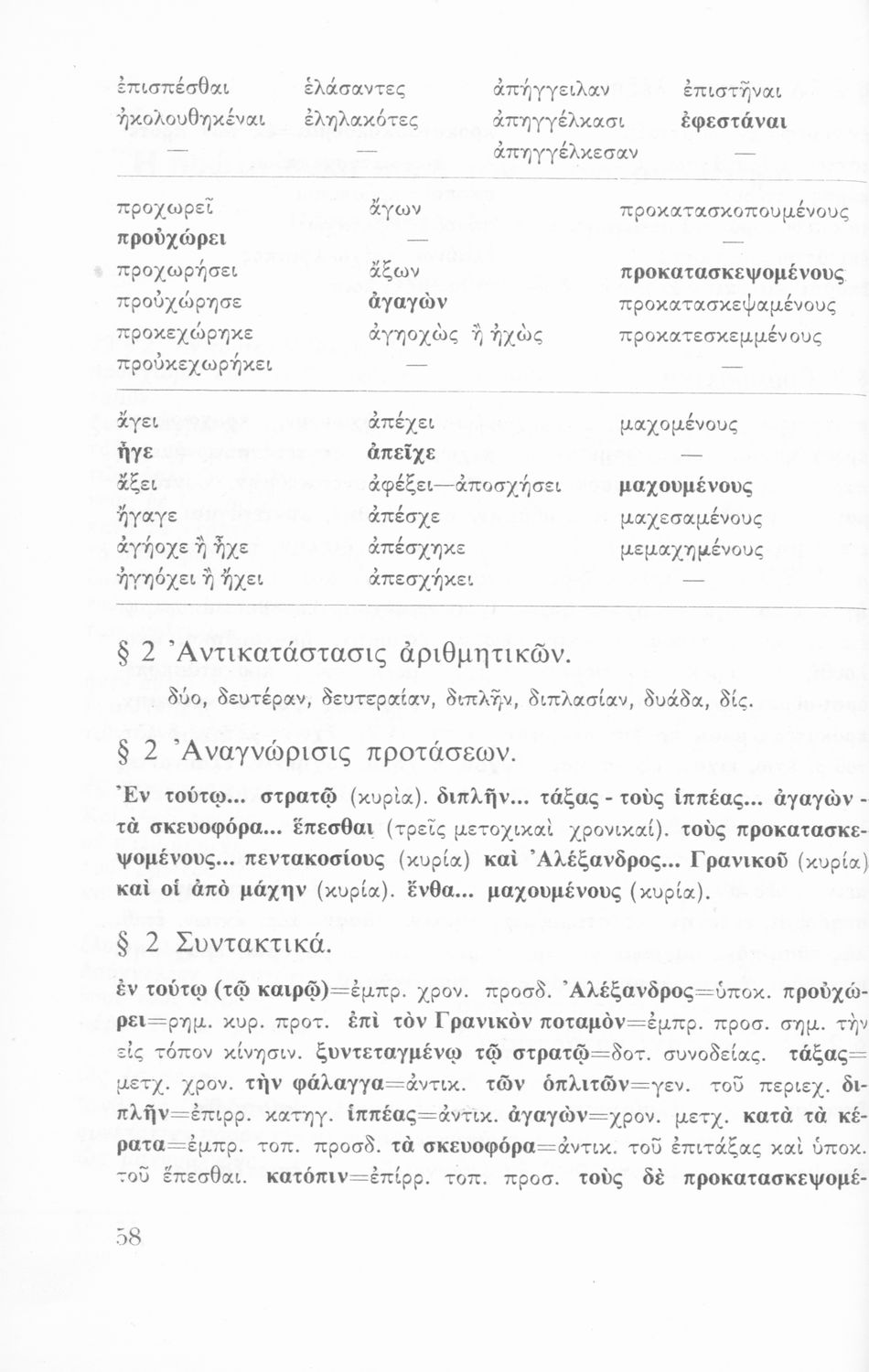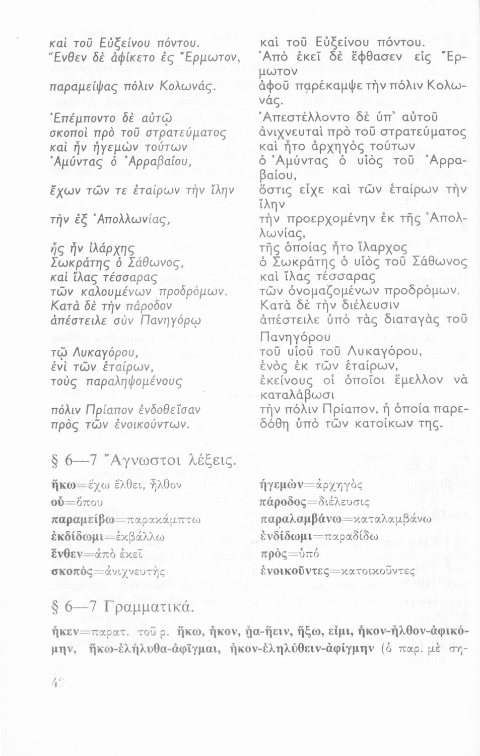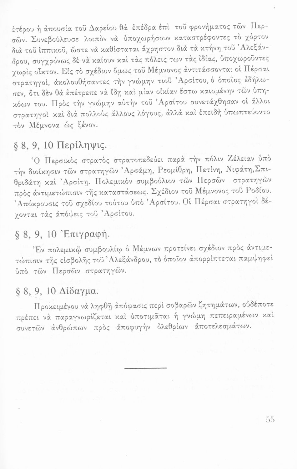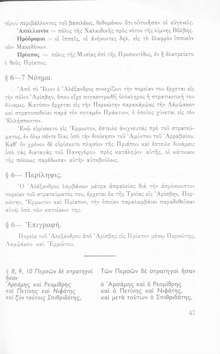 Μαθητικό βοήθημα Αρχαίων Ελληνικών Γ' Γυμνασίου που περιλαμβάνει αποσπάσματα από το έργο του Αρριανού Αλεξάνδρου Ανάβασις, ερμηνευτικά και γραμματικά σχόλια καθώς και χρονικές και εγκλιτικές αντικαταστάσεις. Ο συγγραφέας ήταν Γυμνασιάρχης.