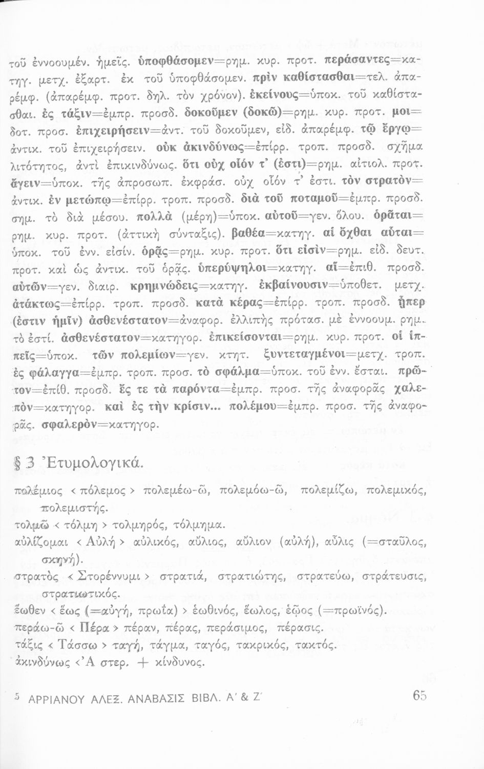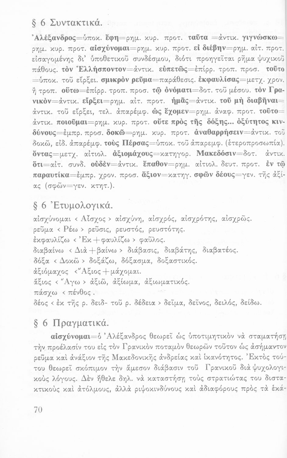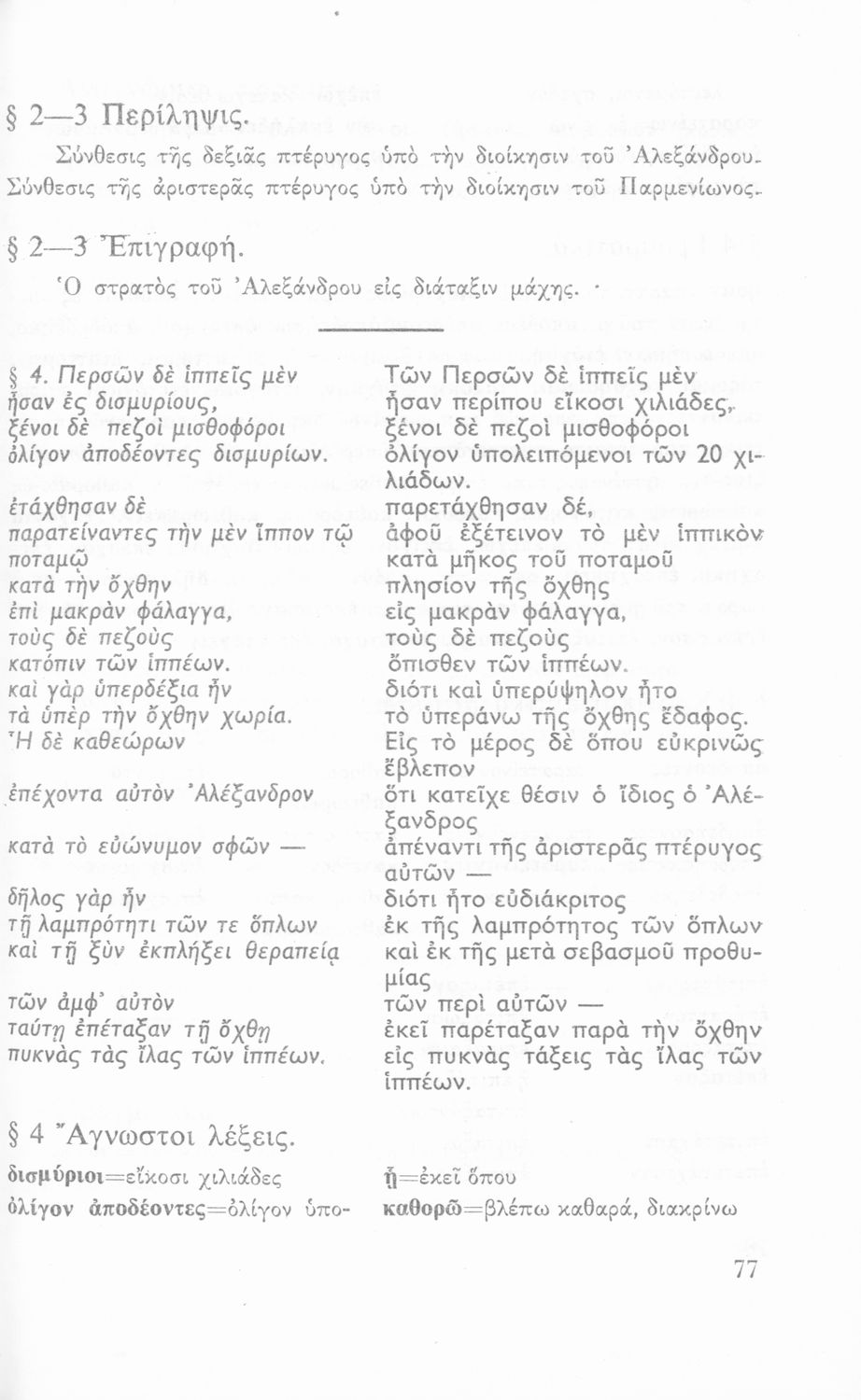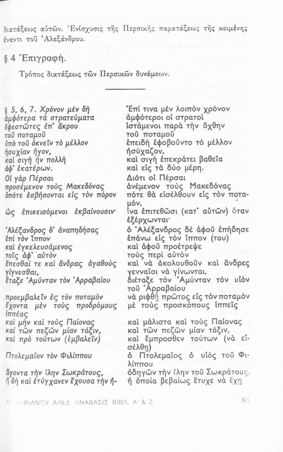 Μαθητικό βοήθημα Αρχαίων Ελληνικών Γ' Γυμνασίου που περιλαμβάνει αποσπάσματα από το έργο του Αρριανού Αλεξάνδρου Ανάβασις, ερμηνευτικά και γραμματικά σχόλια καθώς και χρονικές και εγκλιτικές αντικαταστάσεις. Ο συγγραφέας ήταν Γυμνασιάρχης.