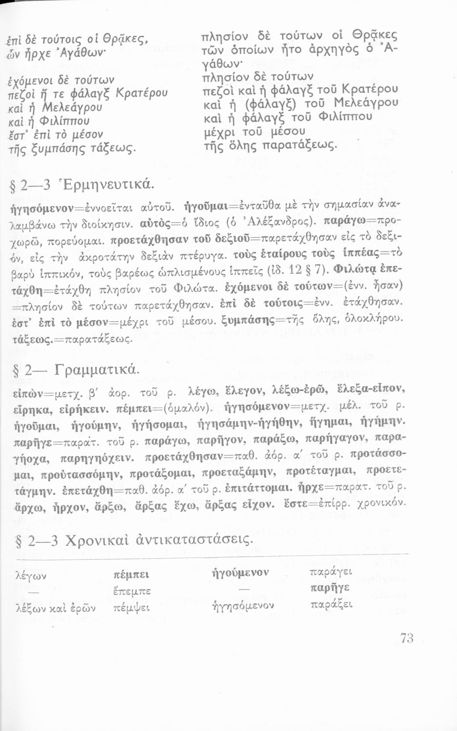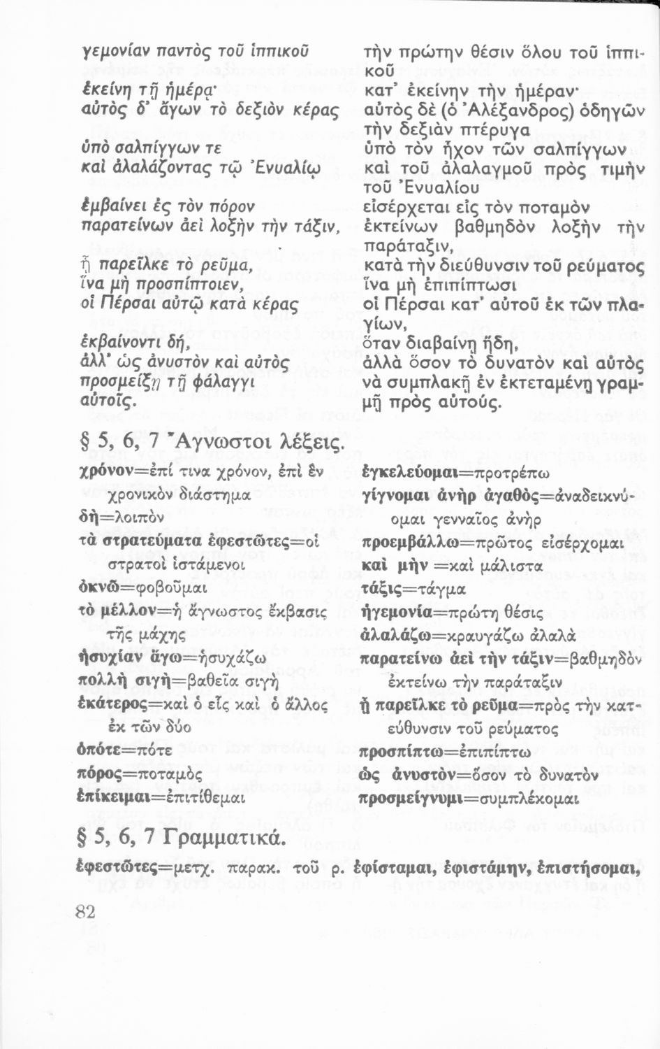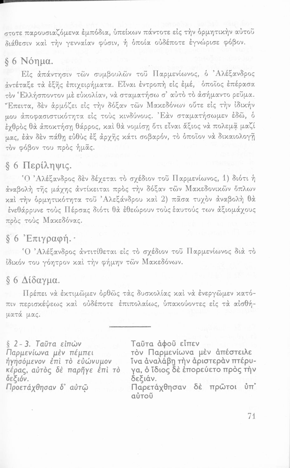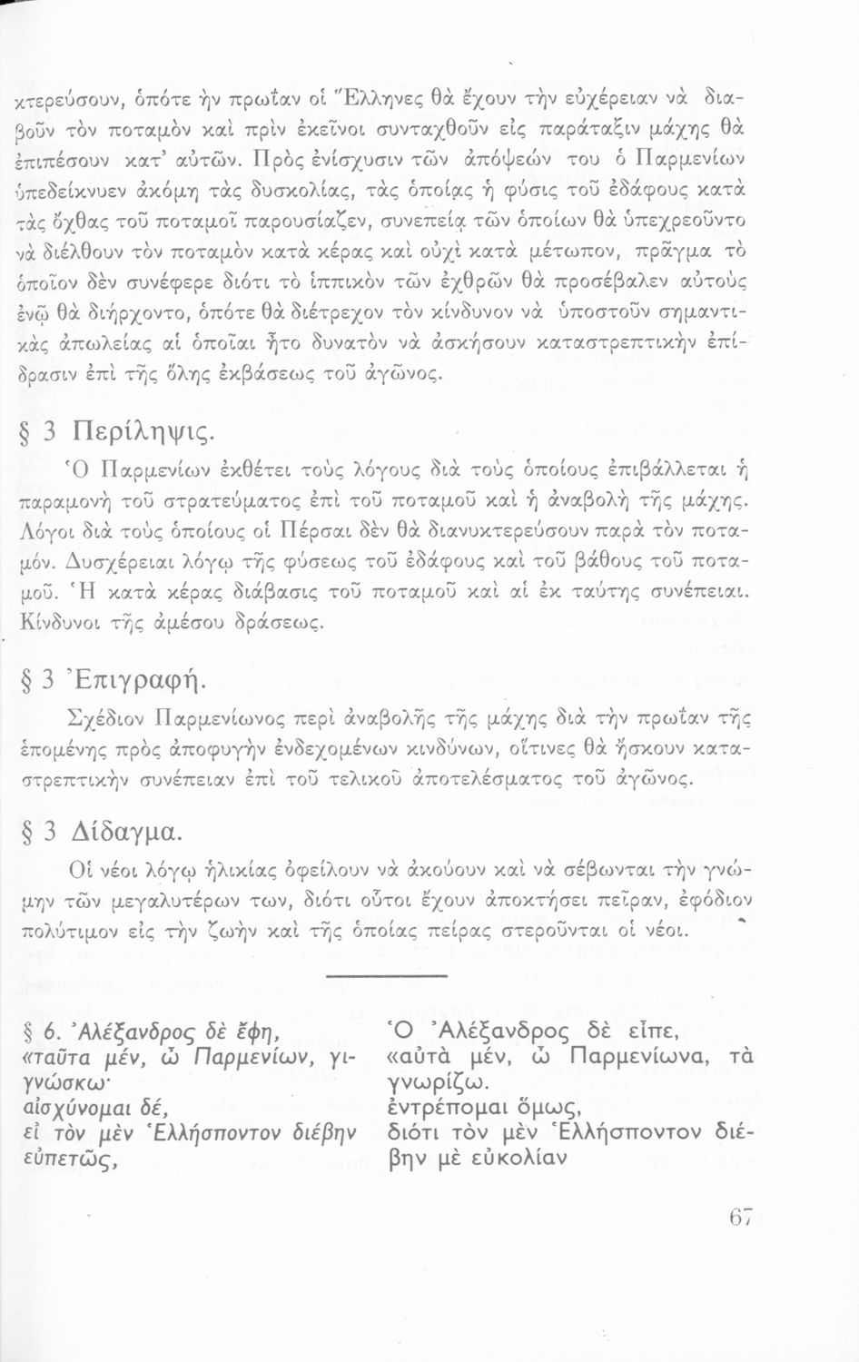 Μαθητικό βοήθημα Αρχαίων Ελληνικών Γ' Γυμνασίου που περιλαμβάνει αποσπάσματα από το έργο του Αρριανού Αλεξάνδρου Ανάβασις, ερμηνευτικά και γραμματικά σχόλια καθώς και χρονικές και εγκλιτικές αντικαταστάσεις. Ο συγγραφέας ήταν Γυμνασιάρχης.