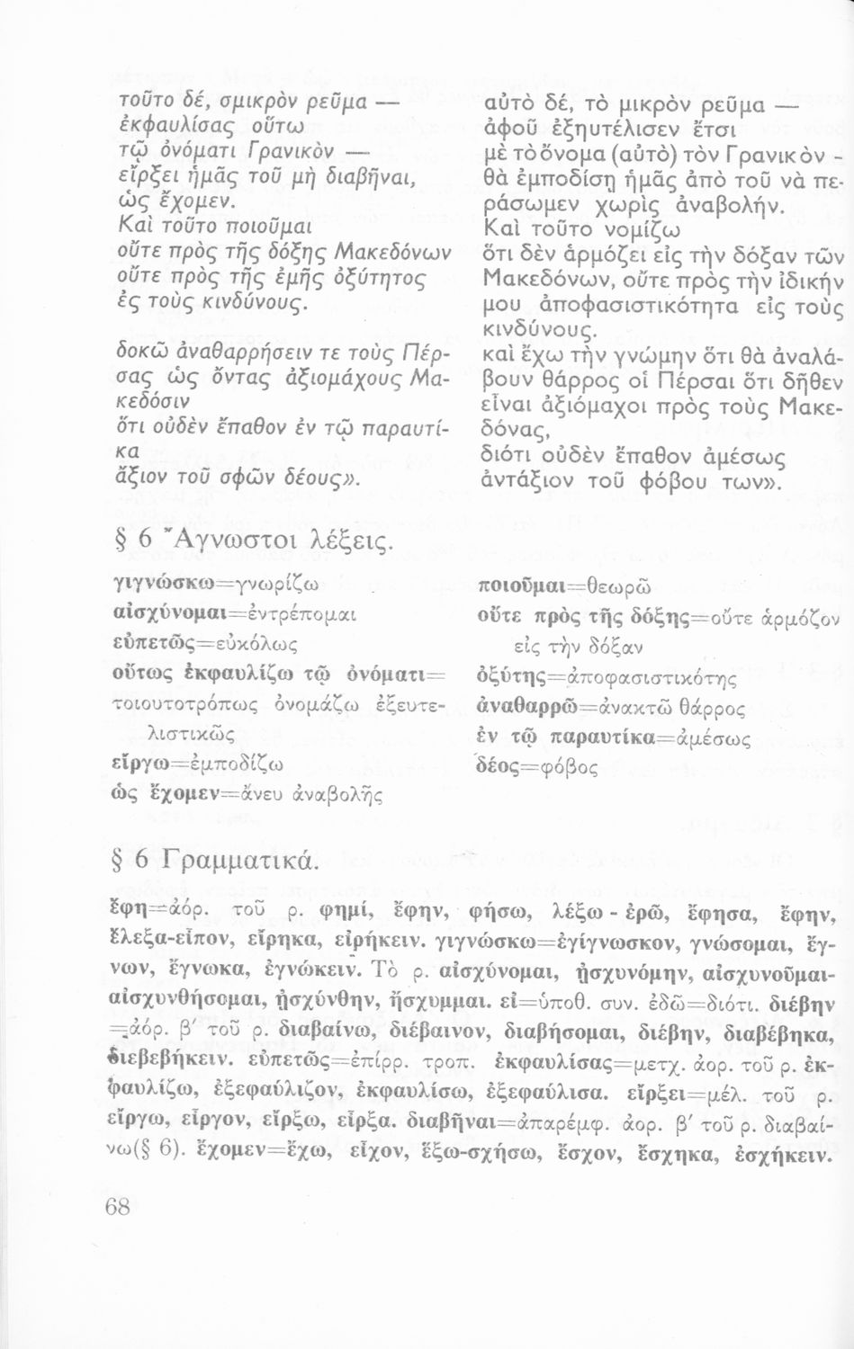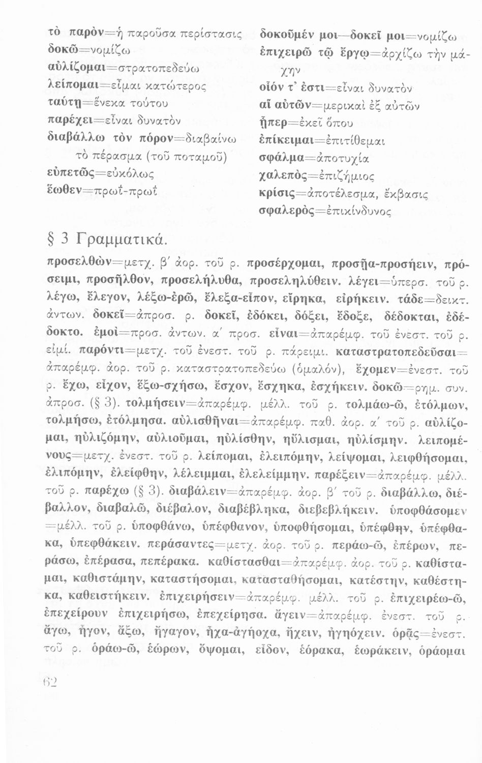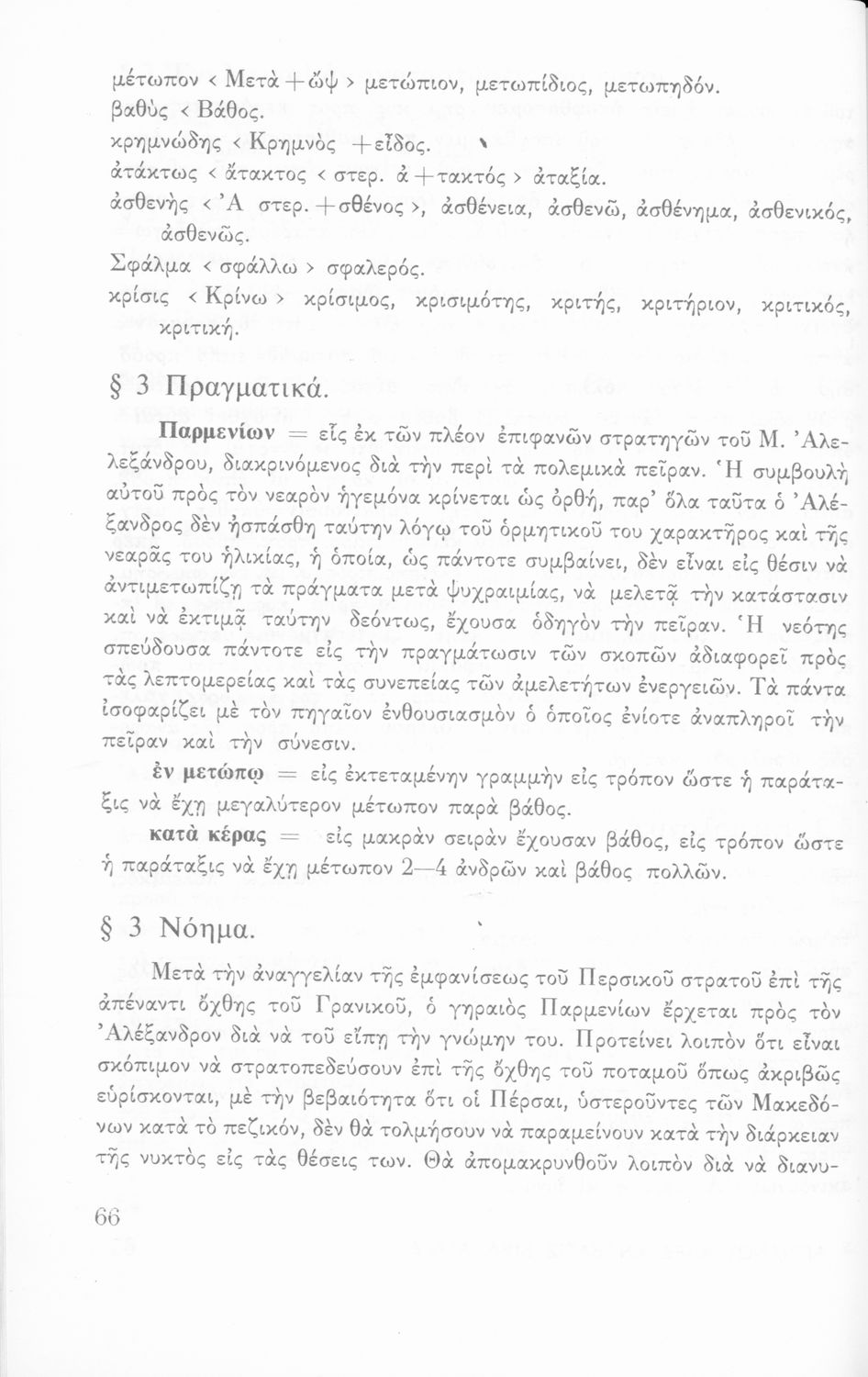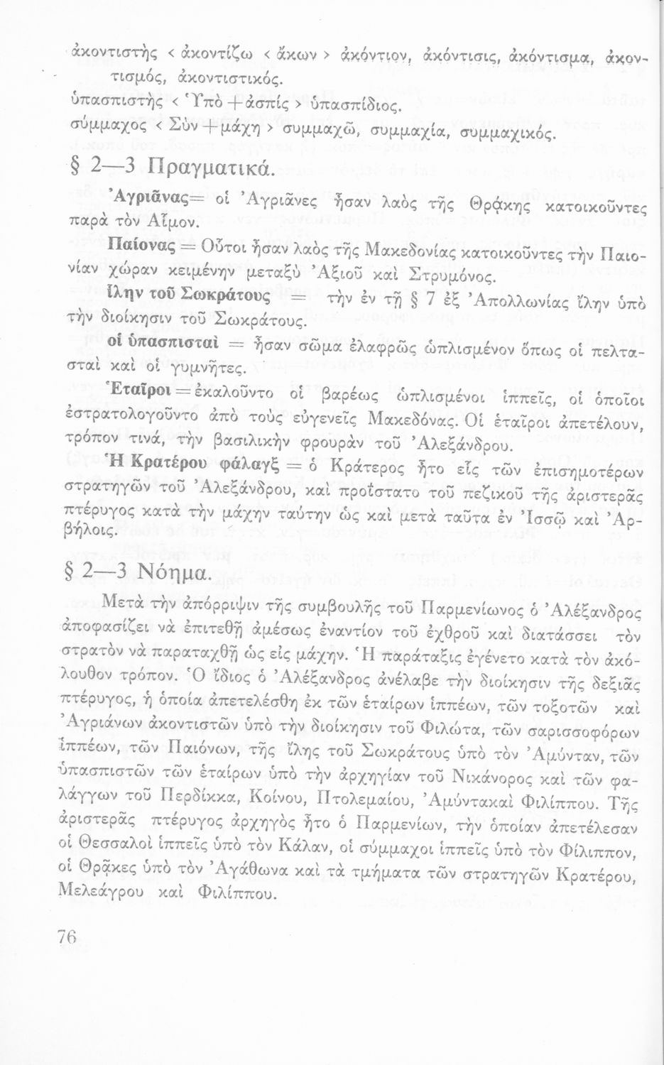 Μαθητικό βοήθημα Αρχαίων Ελληνικών Γ' Γυμνασίου που περιλαμβάνει αποσπάσματα από το έργο του Αρριανού Αλεξάνδρου Ανάβασις, ερμηνευτικά και γραμματικά σχόλια καθώς και χρονικές και εγκλιτικές αντικαταστάσεις. Ο συγγραφέας ήταν Γυμνασιάρχης.