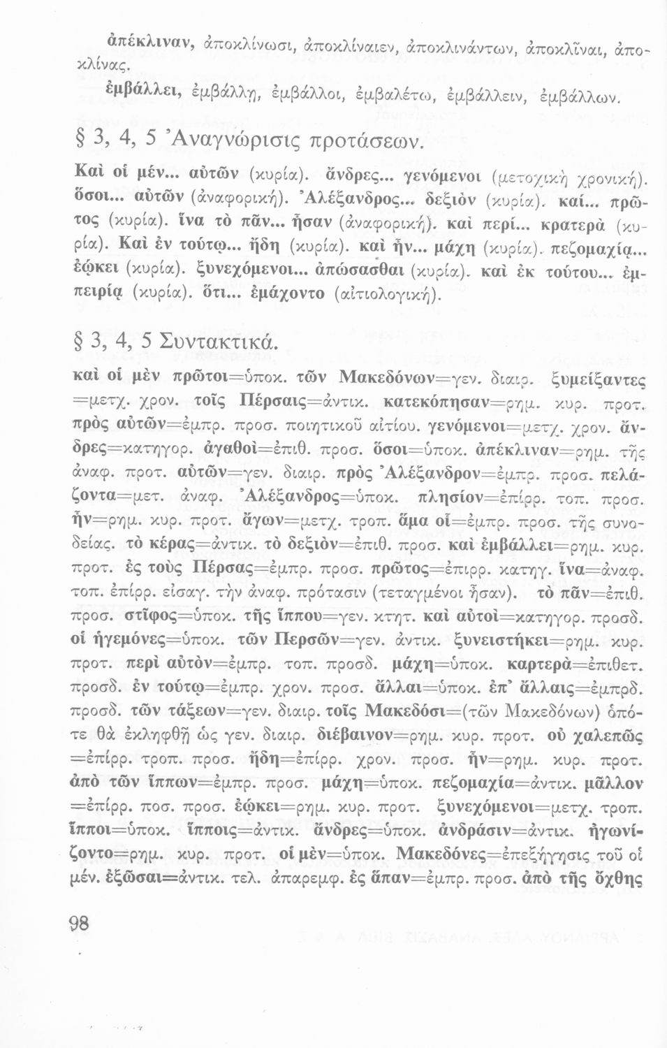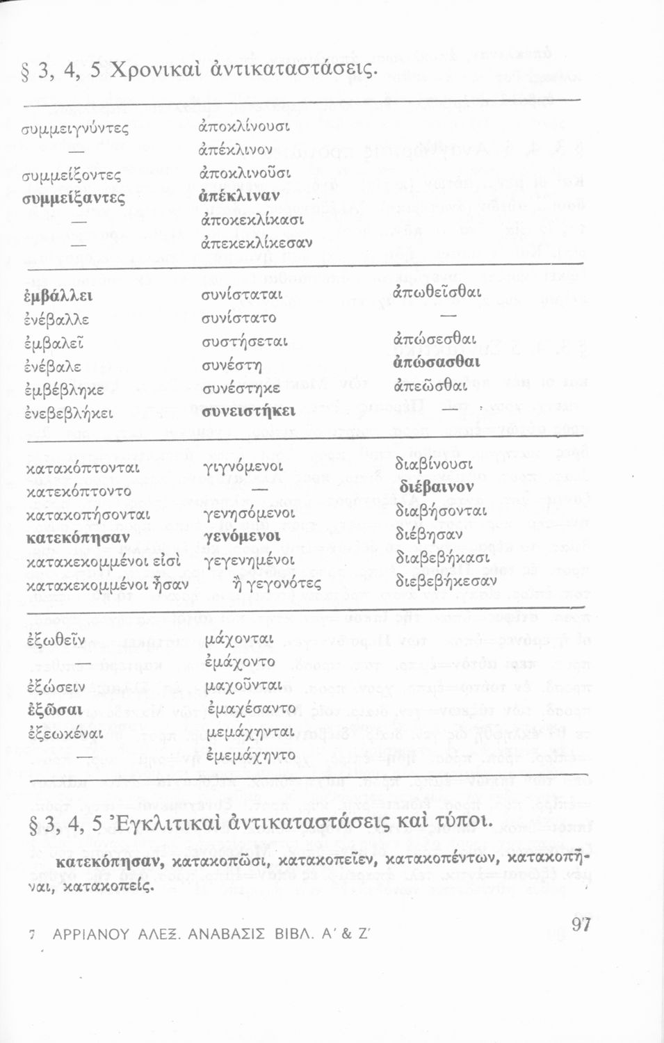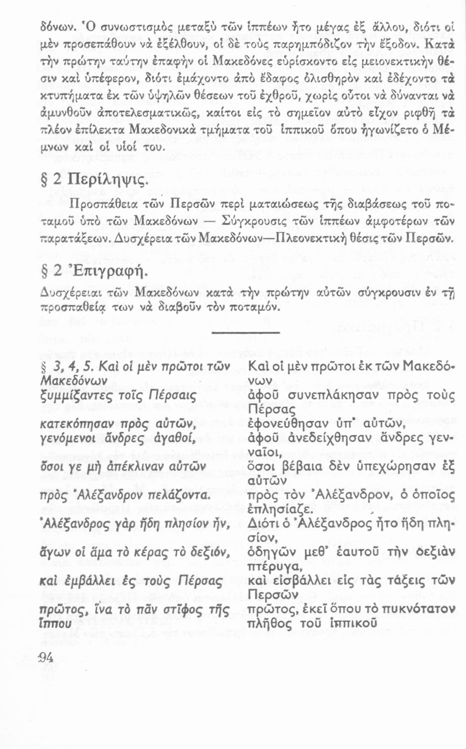 Μαθητικό βοήθημα Αρχαίων Ελληνικών Γ' Γυμνασίου που περιλαμβάνει αποσπάσματα από το έργο του Αρριανού Αλεξάνδρου Ανάβασις, ερμηνευτικά και γραμματικά σχόλια καθώς και χρονικές και εγκλιτικές αντικαταστάσεις. Ο συγγραφέας ήταν Γυμνασιάρχης.