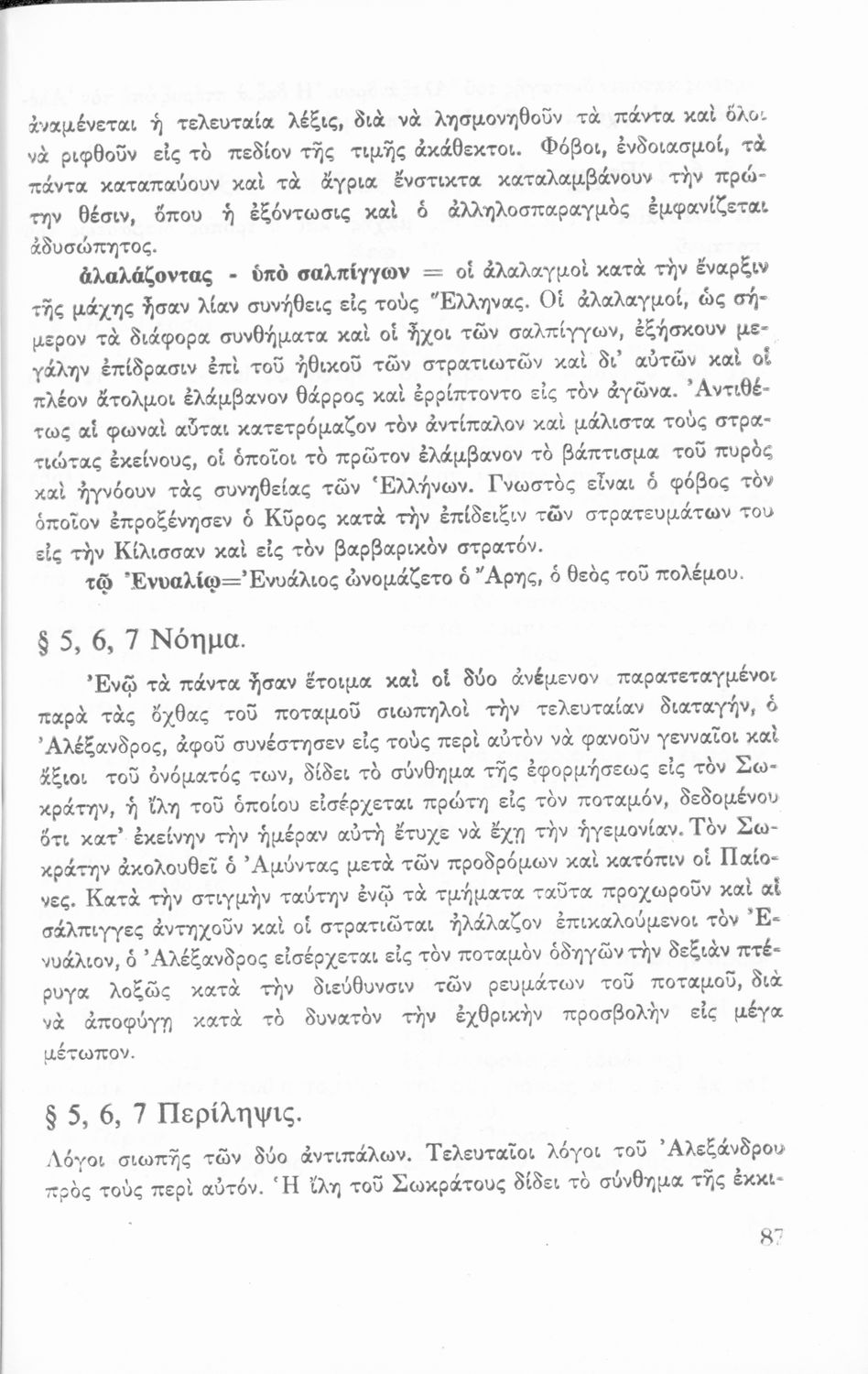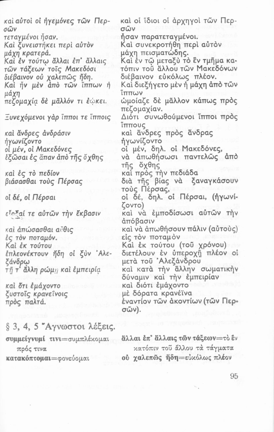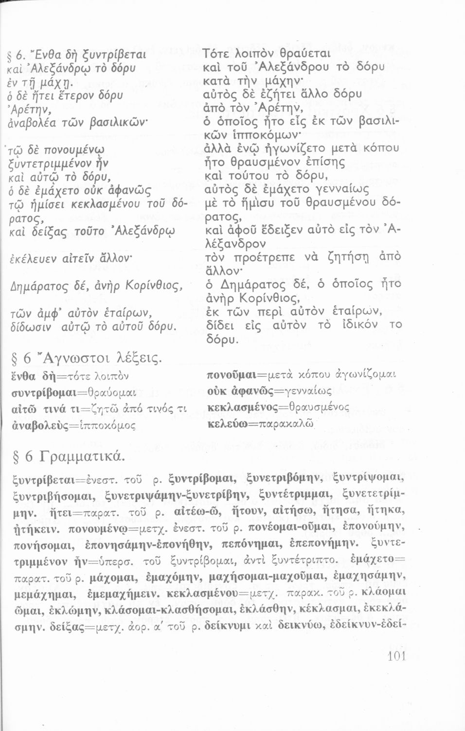 Μαθητικό βοήθημα Αρχαίων Ελληνικών Γ' Γυμνασίου που περιλαμβάνει αποσπάσματα από το έργο του Αρριανού Αλεξάνδρου Ανάβασις, ερμηνευτικά και γραμματικά σχόλια καθώς και χρονικές και εγκλιτικές αντικαταστάσεις. Ο συγγραφέας ήταν Γυμνασιάρχης.