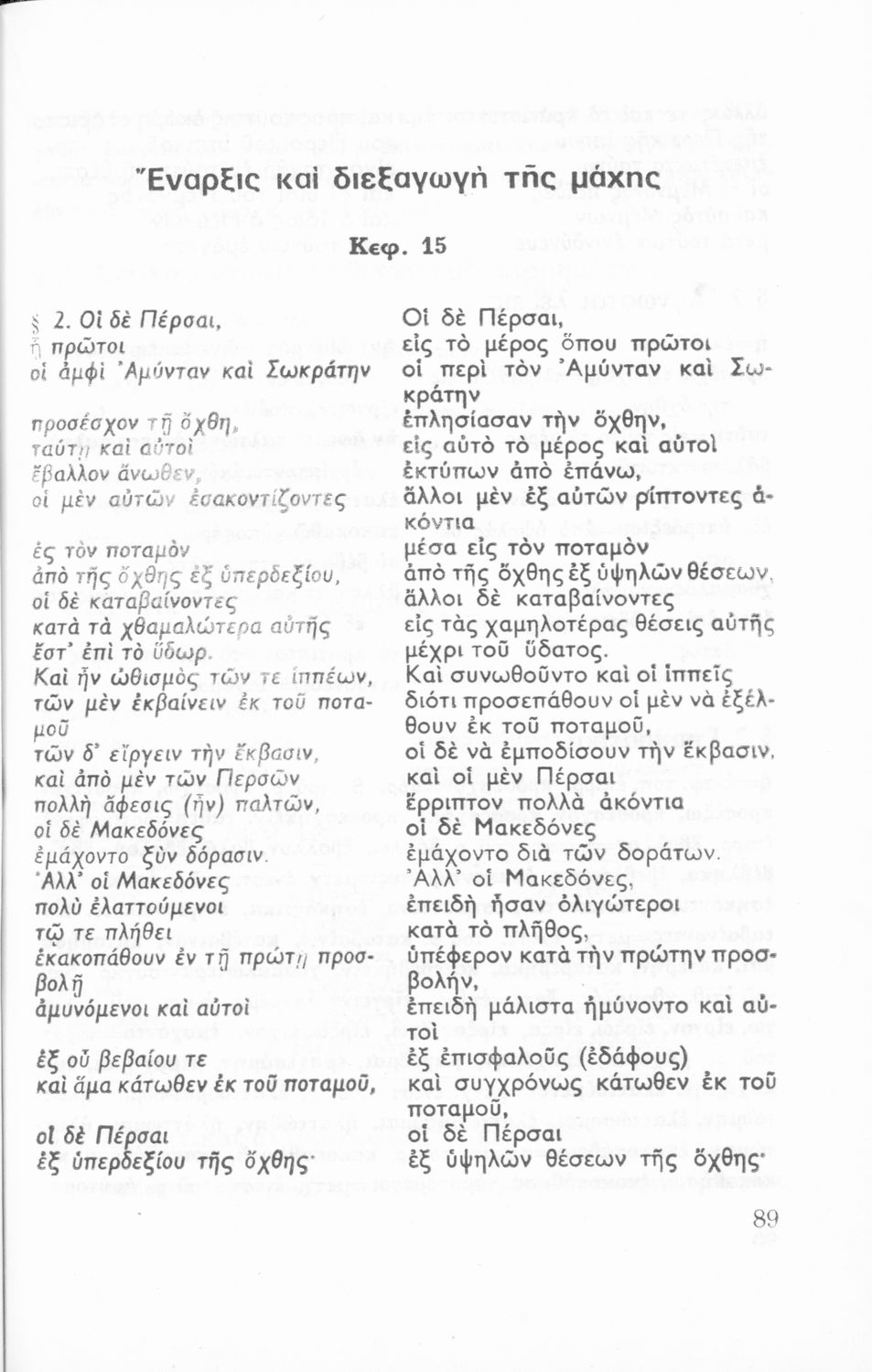Σχολικό εγχειρίδιο Αρχαίων Ελληνικών Ε΄ Γυμνασίου που περιέχει αποσπάσματα από την Αλεξάνδρου Ανάβασις του Αρριανού, ερμηνευτικά και πραγματολογικά σχόλια και λεξιλογικές παρατηρήσεις.