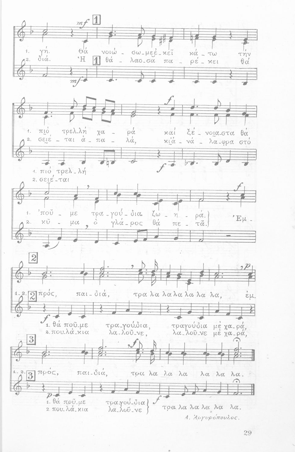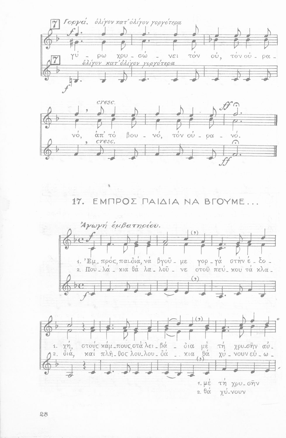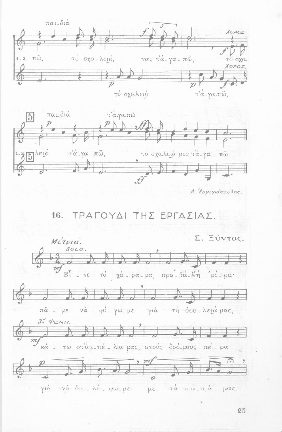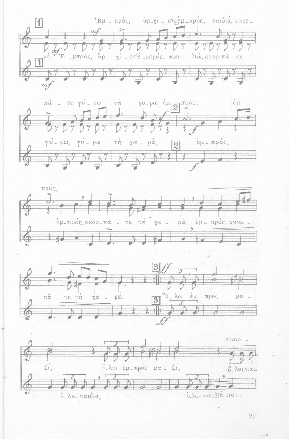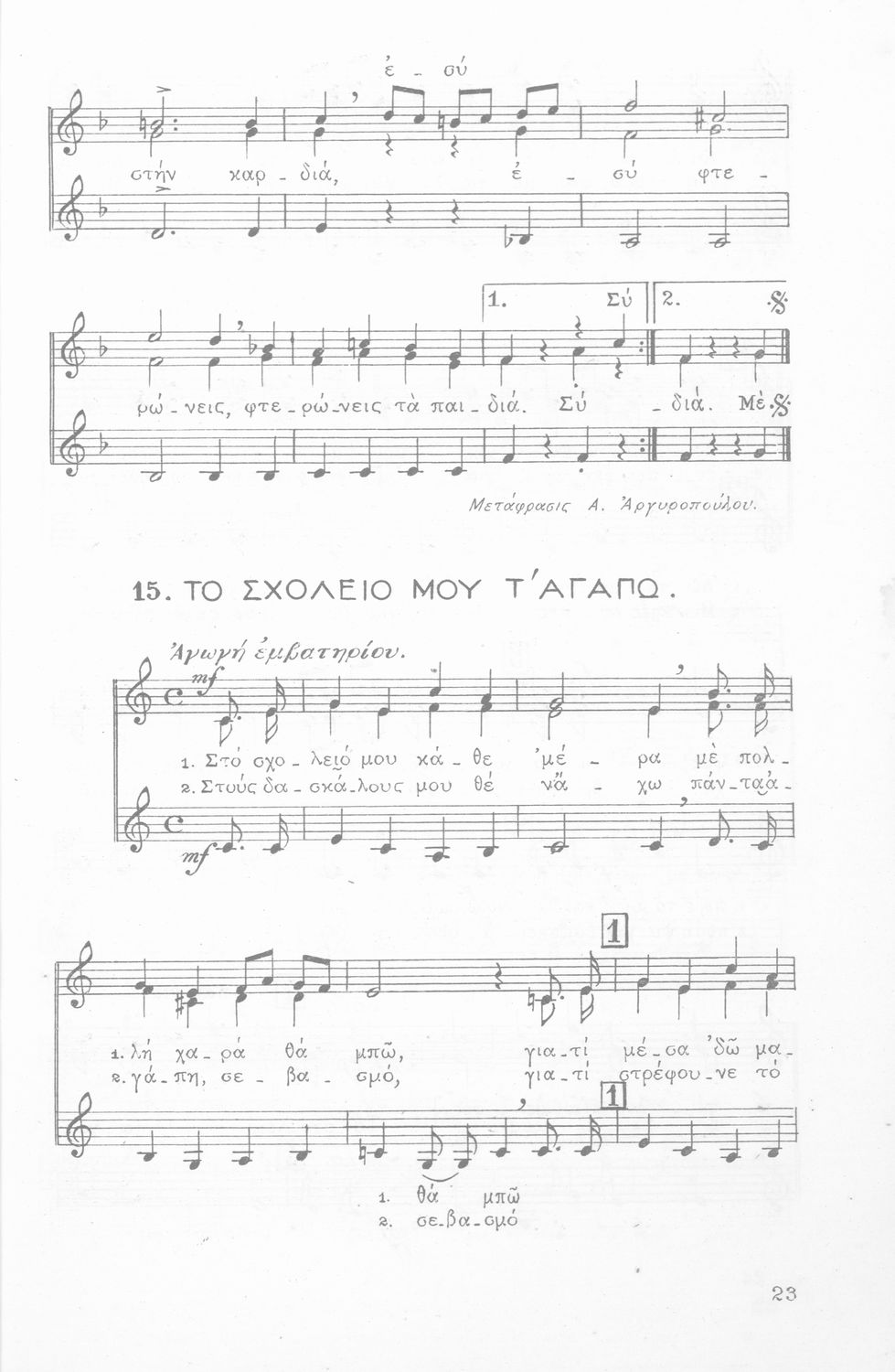 Σχολική Μουσική, Άσματα Τρίφωνα, Τεύχος Α΄