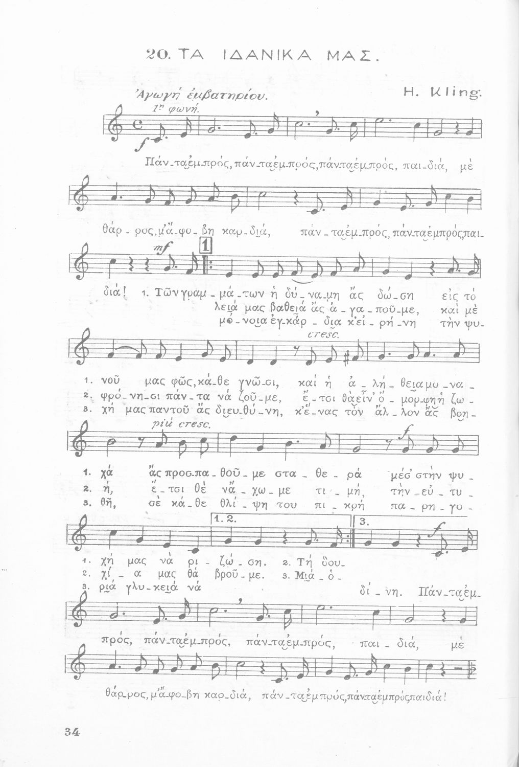 Σχολικό εγχειρίδιο Μουσικής του 1937. Περιέχει σχολικά τραγούδια με θέματα από τη θρησκεία, την πατρίδα και τη ζωή.
