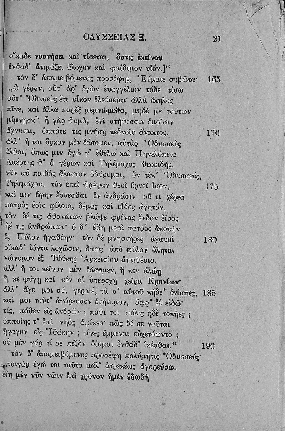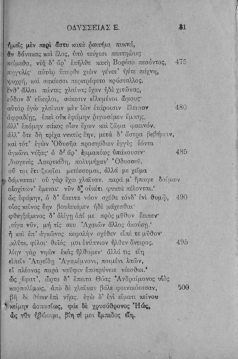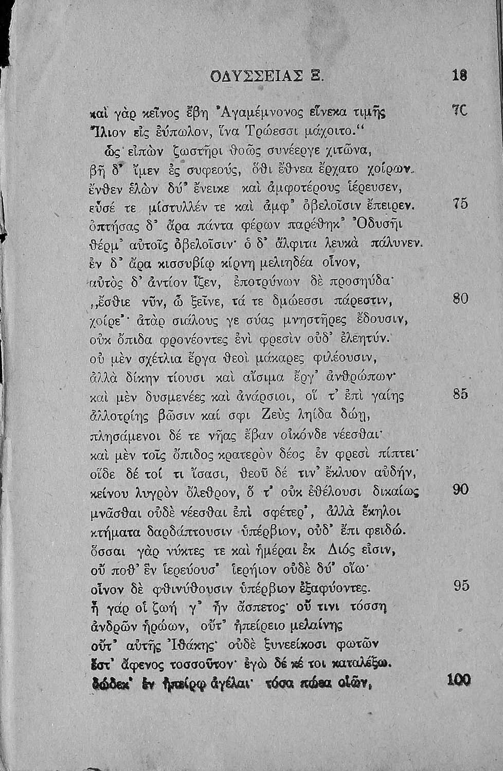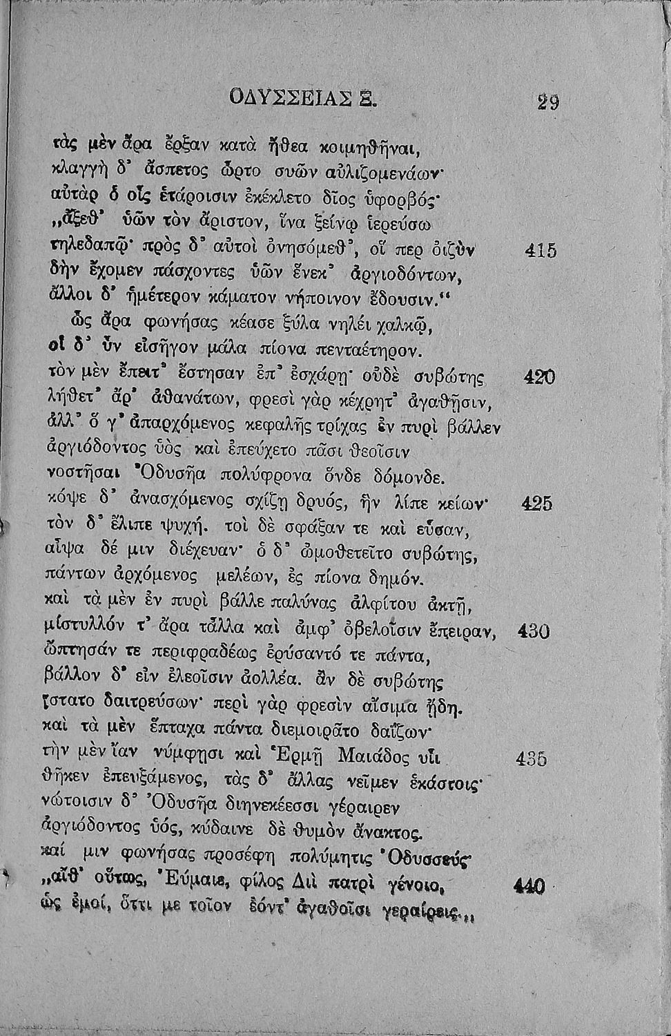 Έκδοση που περιλαμβάνει τις ραψωδίες Ν-Ω με ερμηνευτικές παρατηρήσεις κατά την έκδοση Guilielmi Dindorfil.