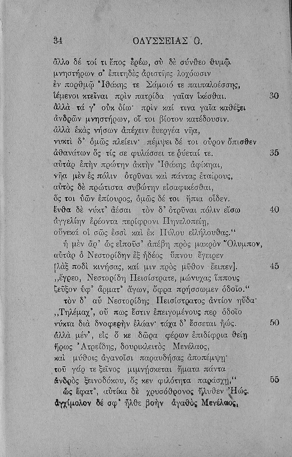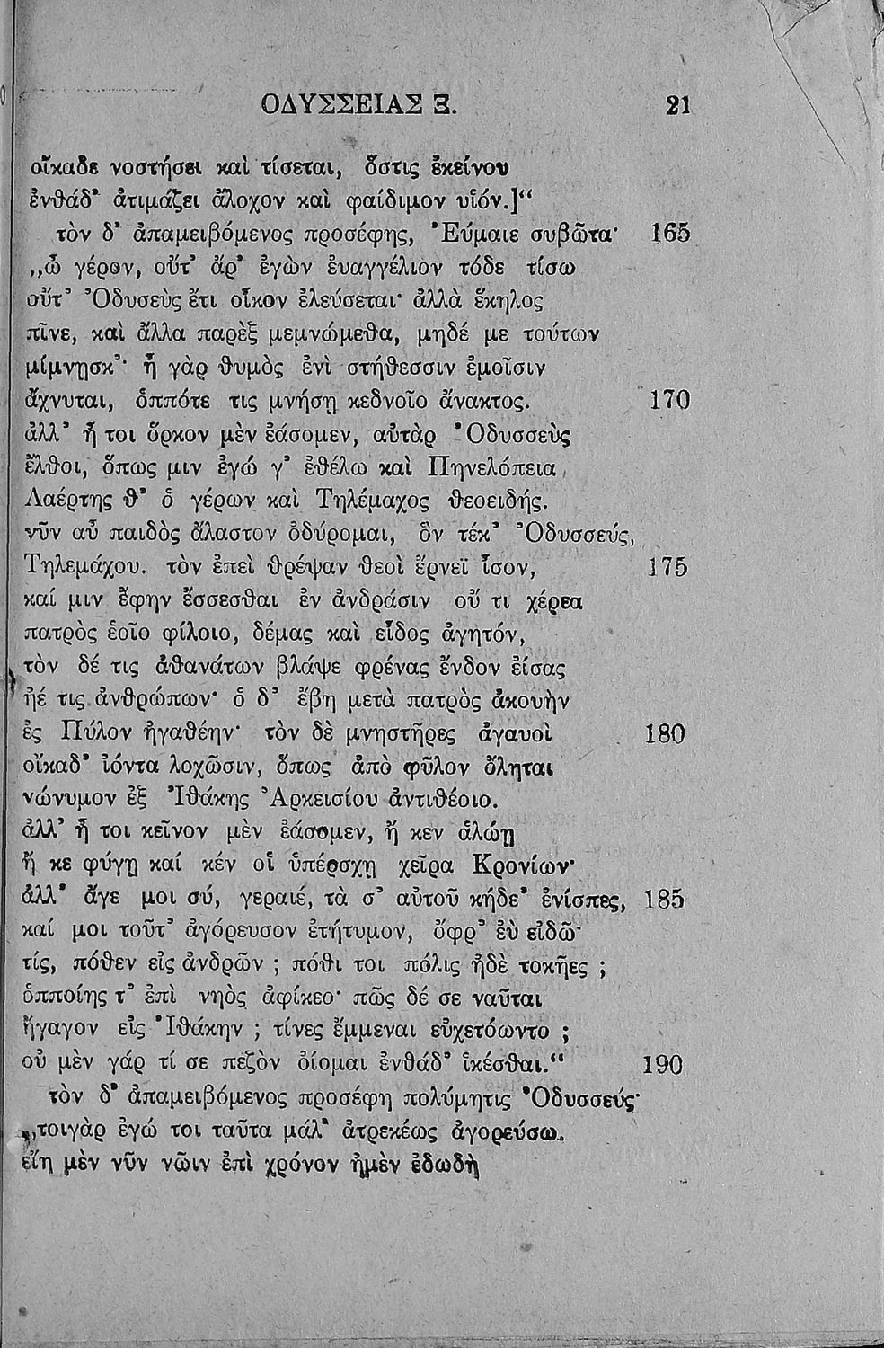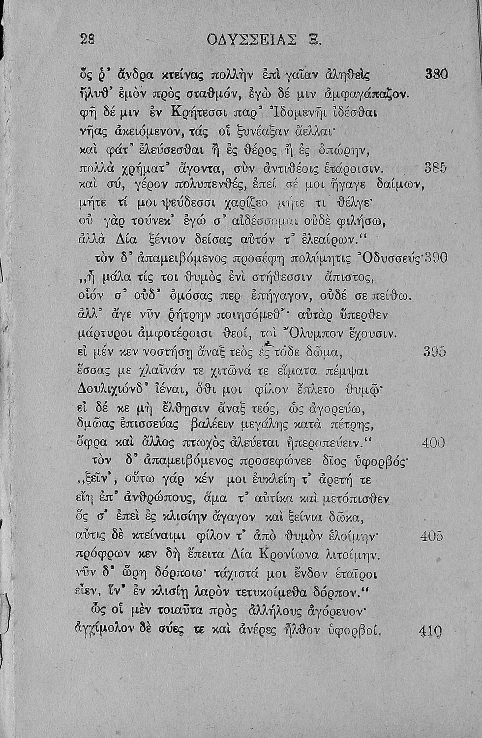 Έκδοση που περιλαμβάνει τις ραψωδίες Ν-Ω με ερμηνευτικές παρατηρήσεις κατά την έκδοση Guilielmi Dindorfil.