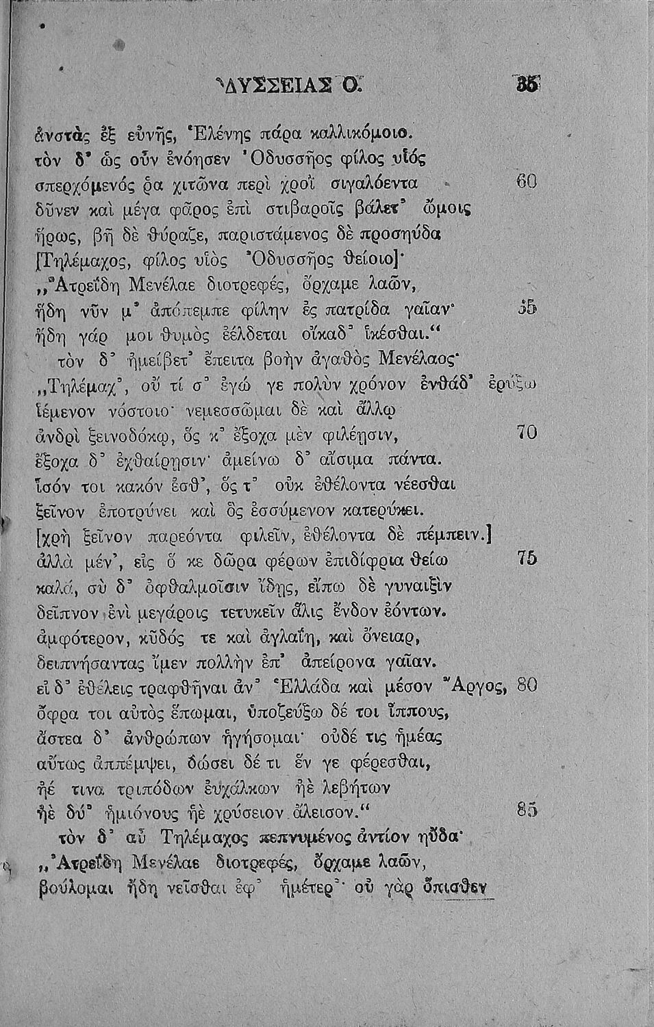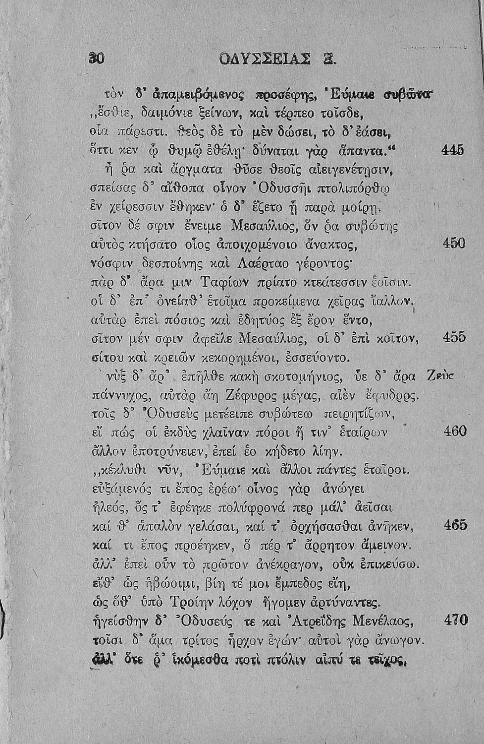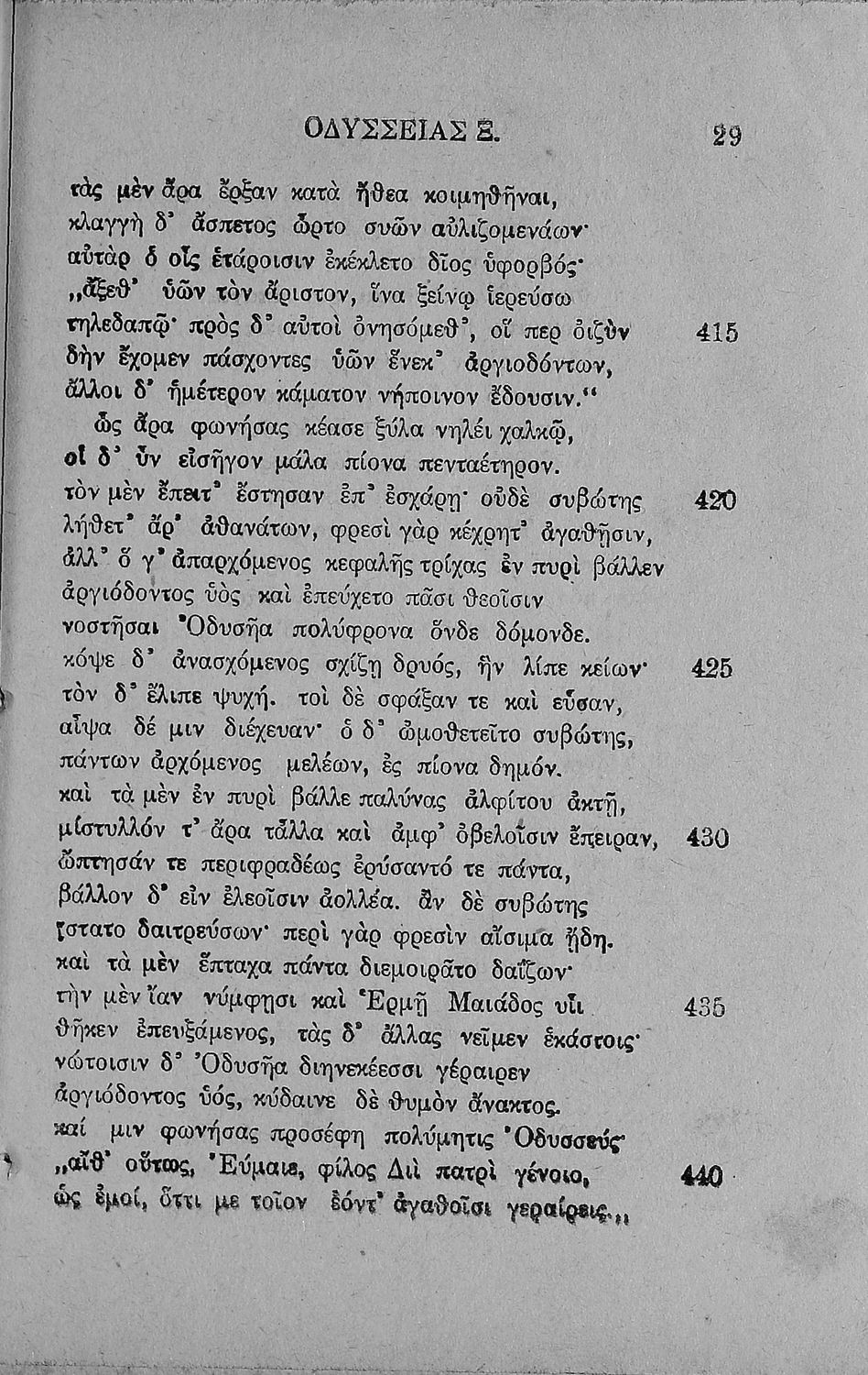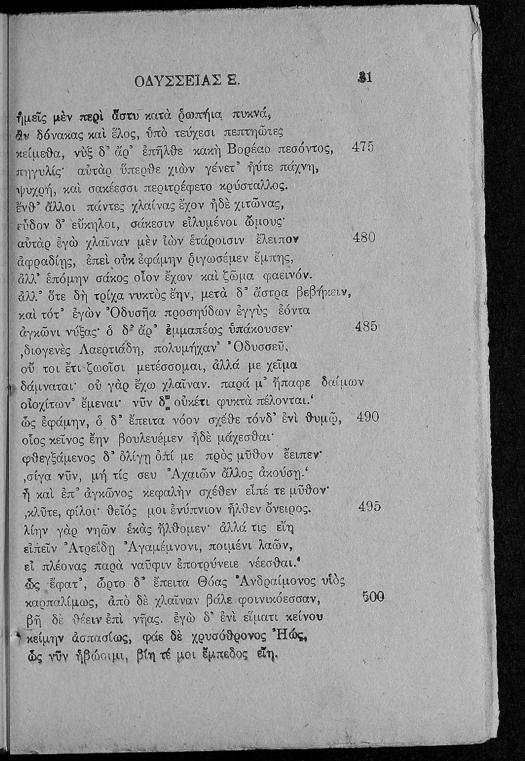 Έκδοση που περιλαμβάνει τις ραψωδίες Ν-Ω με ερμηνευτικές παρατηρήσεις κατά την έκδοση Guilielmi Dindorfil.