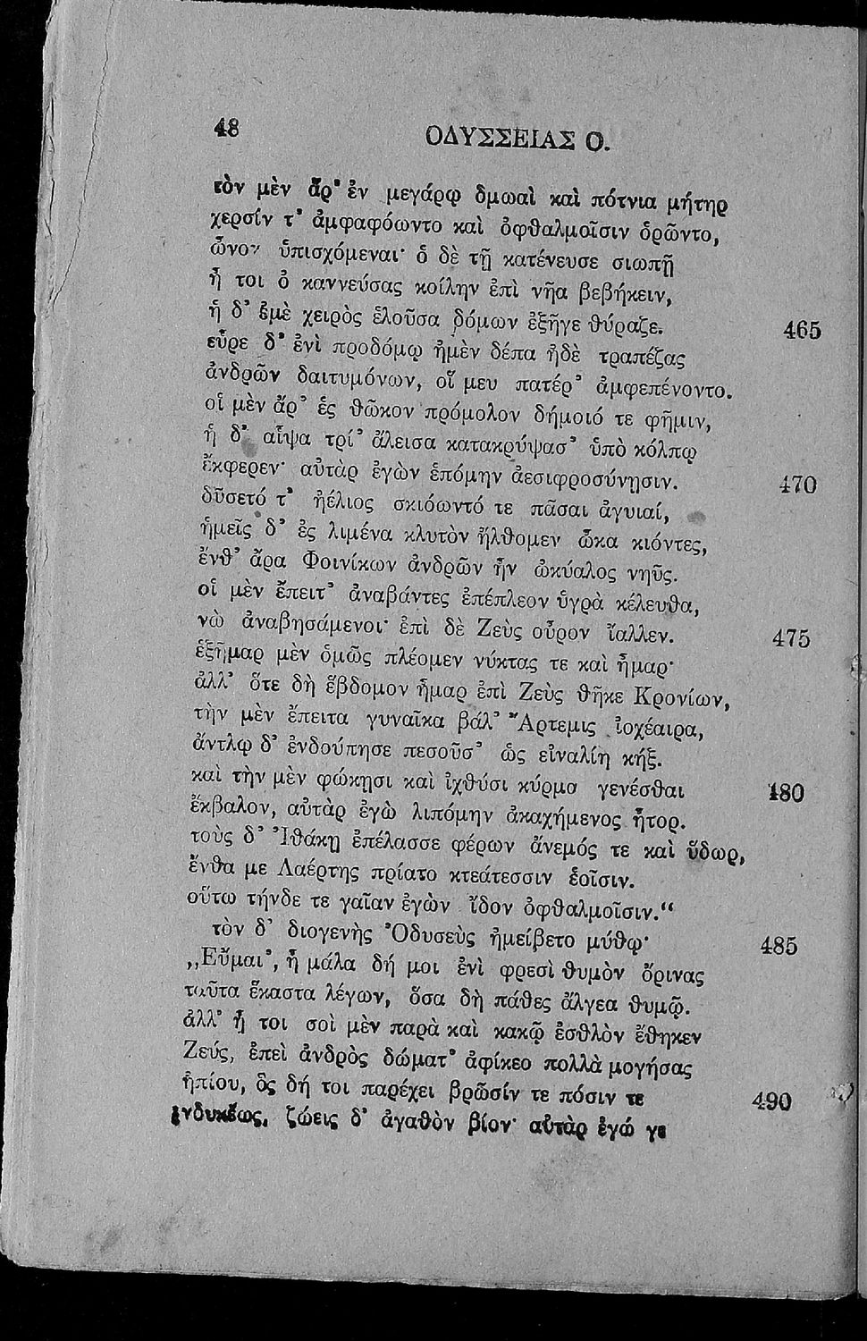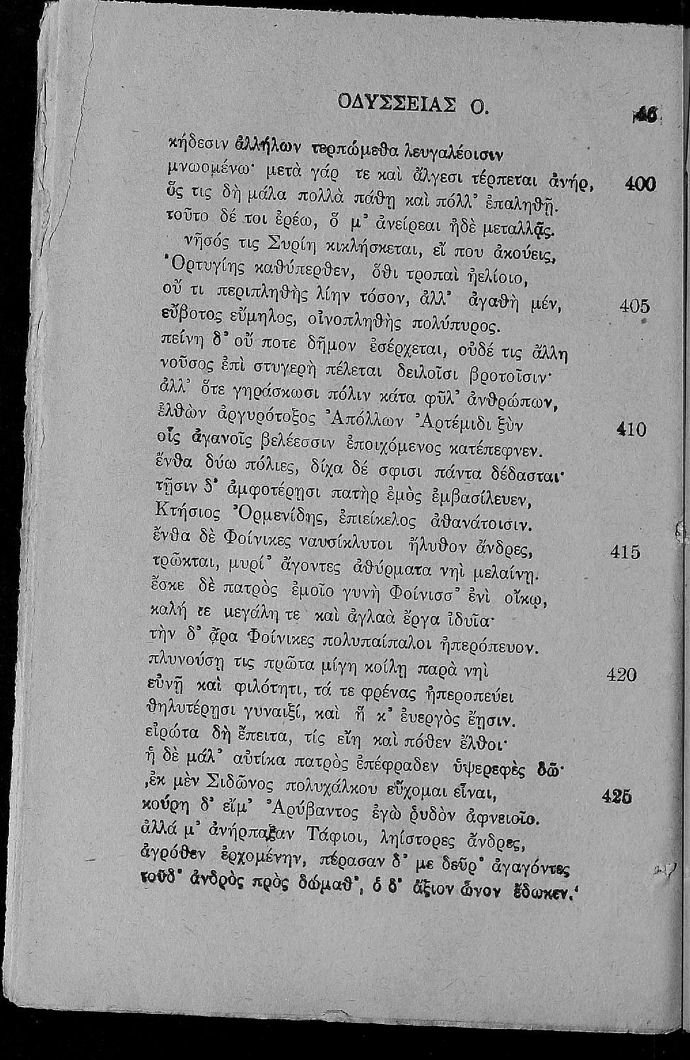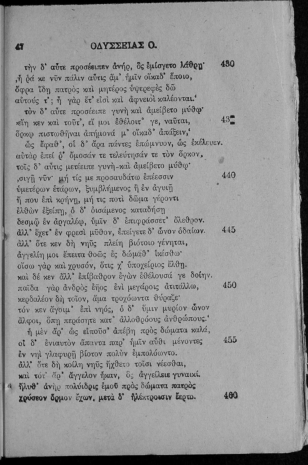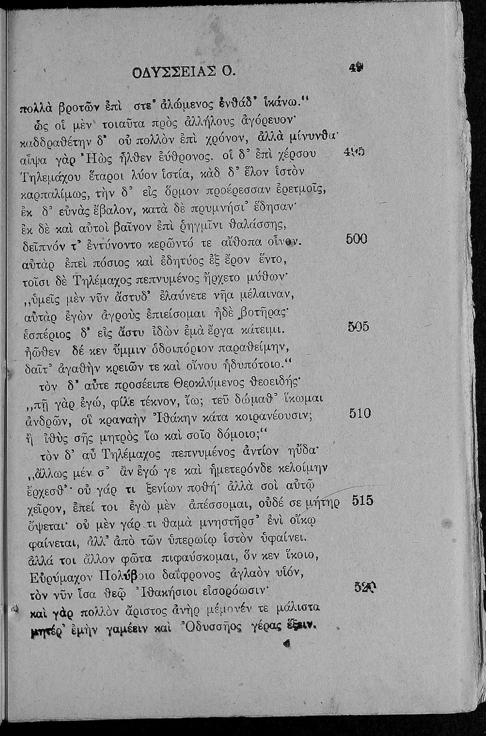 Έκδοση που περιλαμβάνει τις ραψωδίες Ν-Ω με ερμηνευτικές παρατηρήσεις κατά την έκδοση Guilielmi Dindorfil.