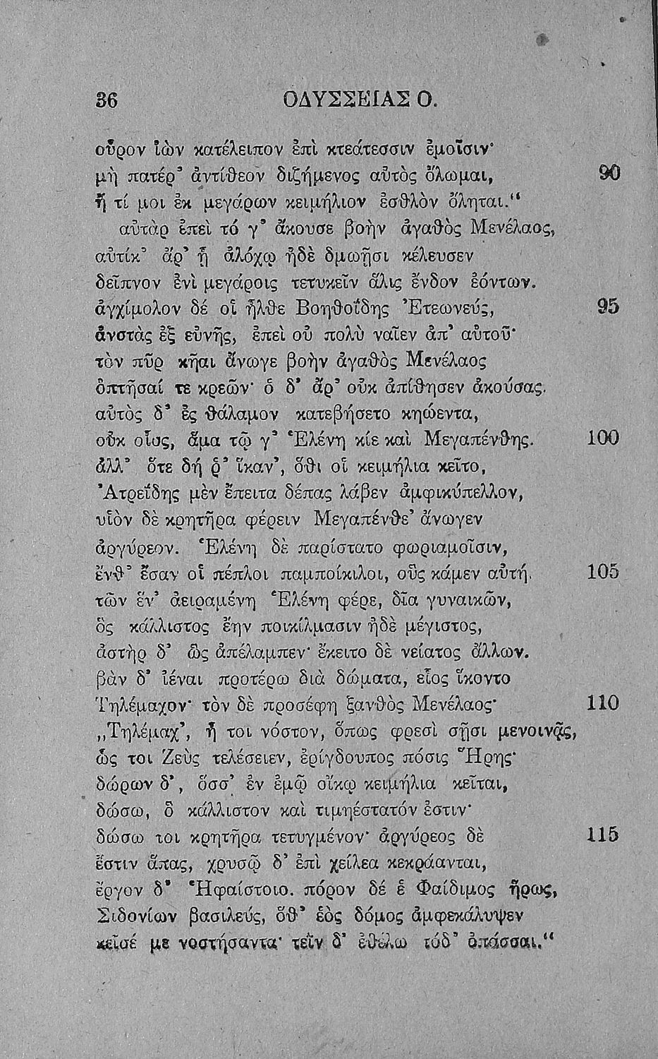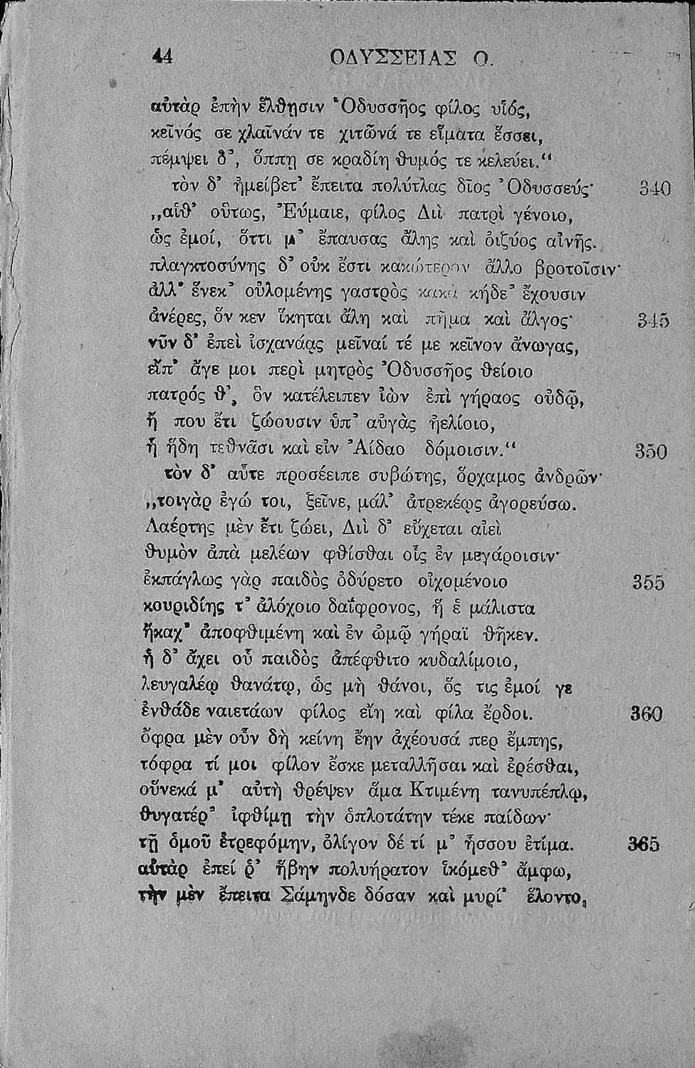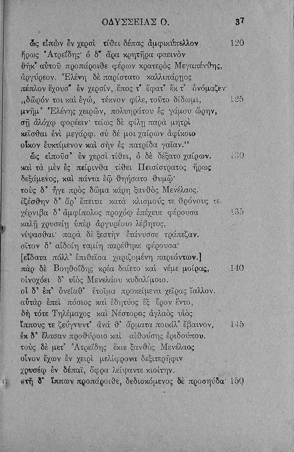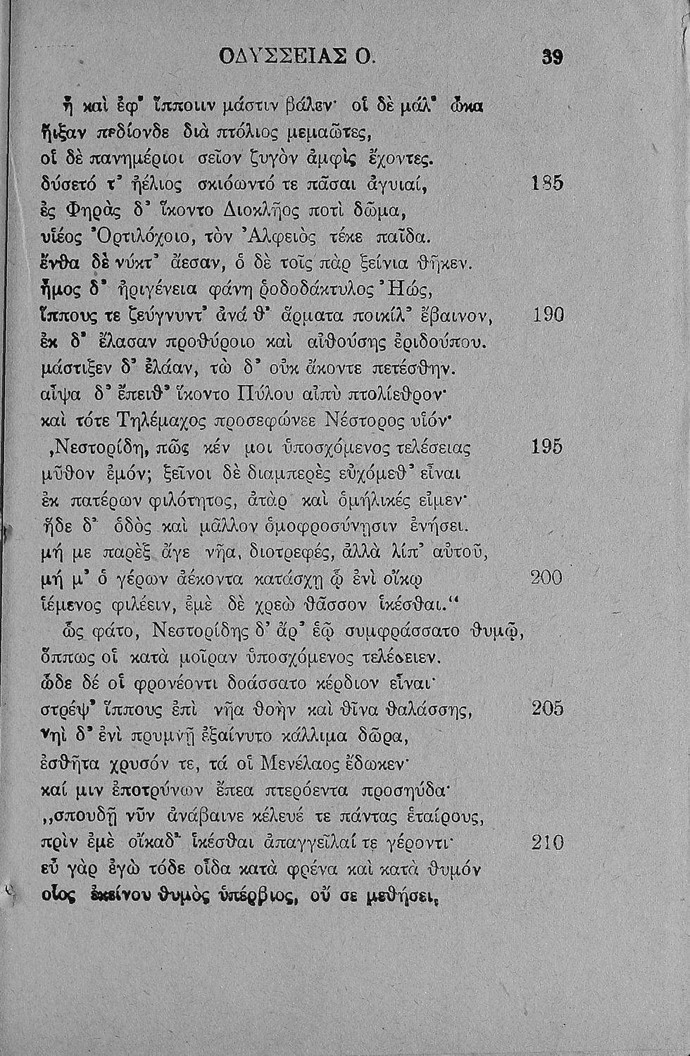 Έκδοση που περιλαμβάνει τις ραψωδίες Ν-Ω με ερμηνευτικές παρατηρήσεις κατά την έκδοση Guilielmi Dindorfil.