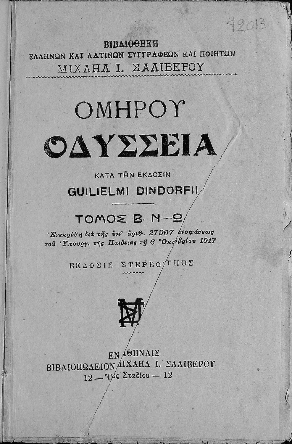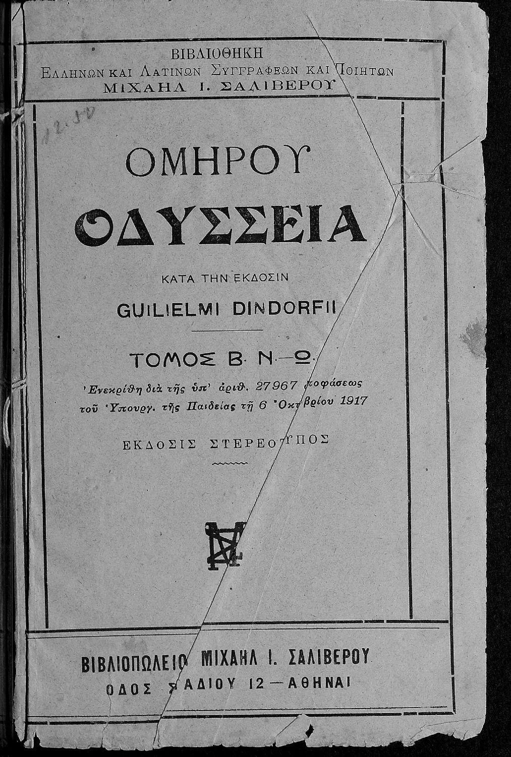 Έκδοση που περιλαμβάνει τις ραψωδίες Ν-Ω της Οδύσσειας.