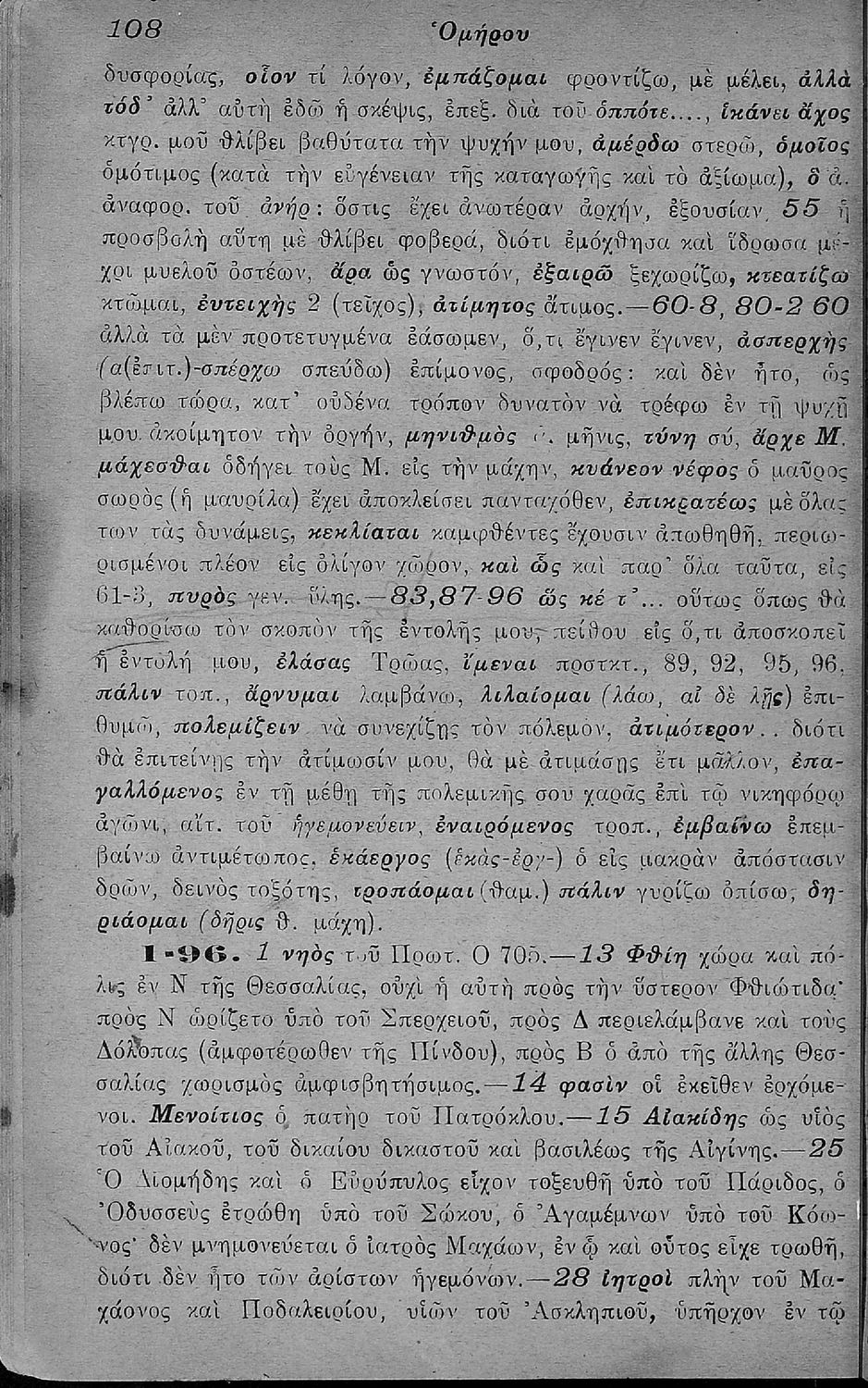 Μαθητικό βοήθημα Αρχαίων Ελληνικών Γυμνασίου που περιλαμβάνει μετάφραση των ραψωδιών Ο΄, Π΄, Ρ΄, Σ΄, Τ΄, Χ΄, Ψ΄, Ω΄, και ερμηνευτικές, πραγματολογικές και γλωσσικές παρατηρήσεις.