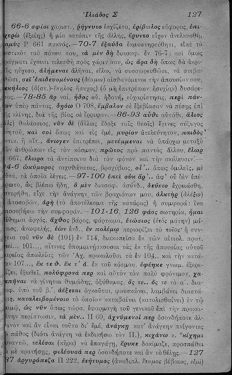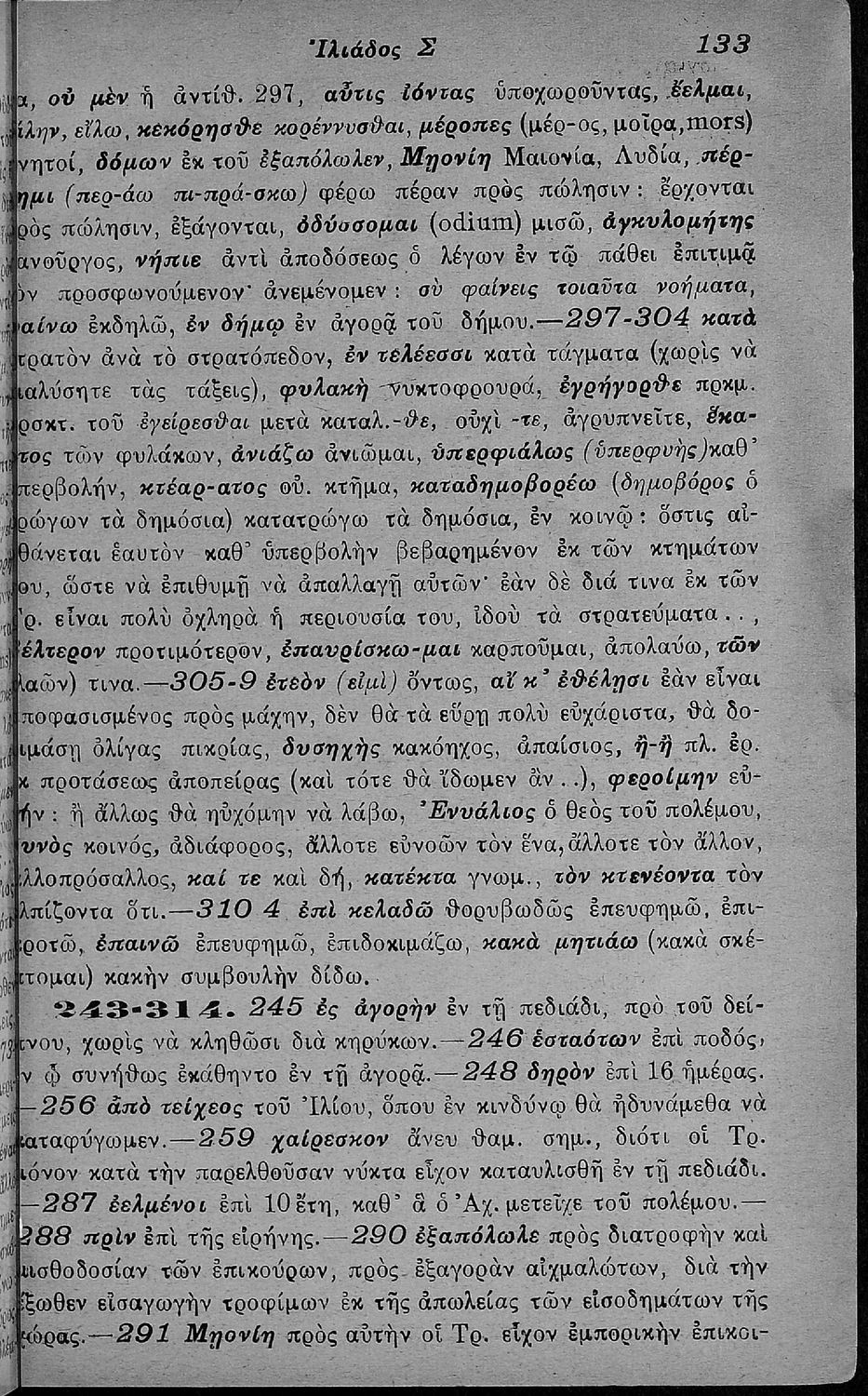 Μαθητικό βοήθημα Αρχαίων Ελληνικών Γυμνασίου που περιλαμβάνει μετάφραση των ραψωδιών Ο΄, Π΄, Ρ΄, Σ΄, Τ΄, Χ΄, Ψ΄, Ω΄, και ερμηνευτικές, πραγματολογικές και γλωσσικές παρατηρήσεις.