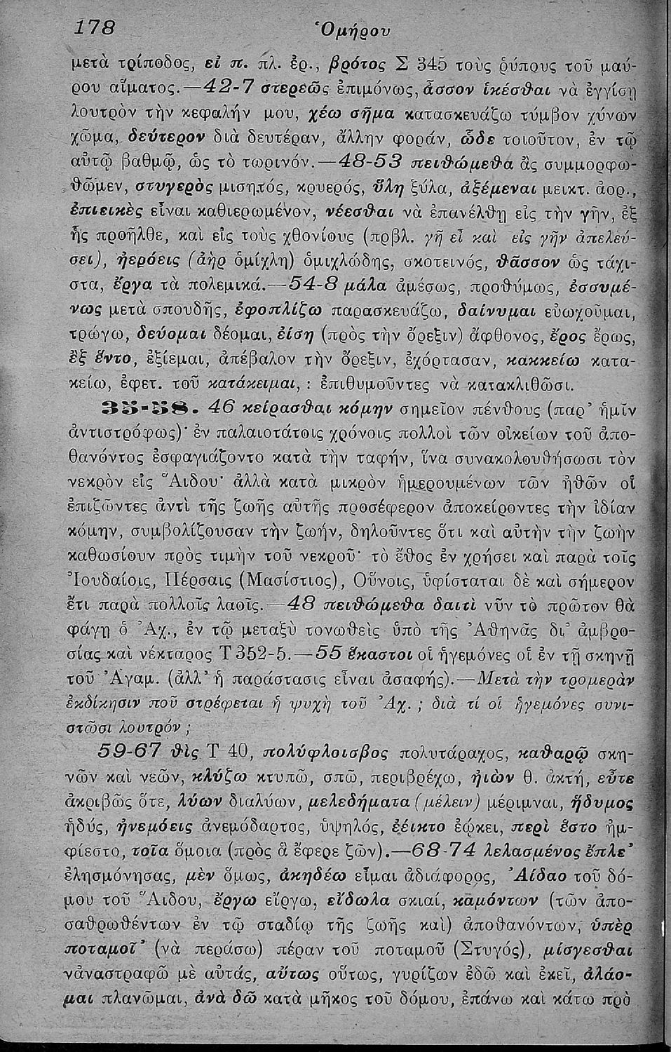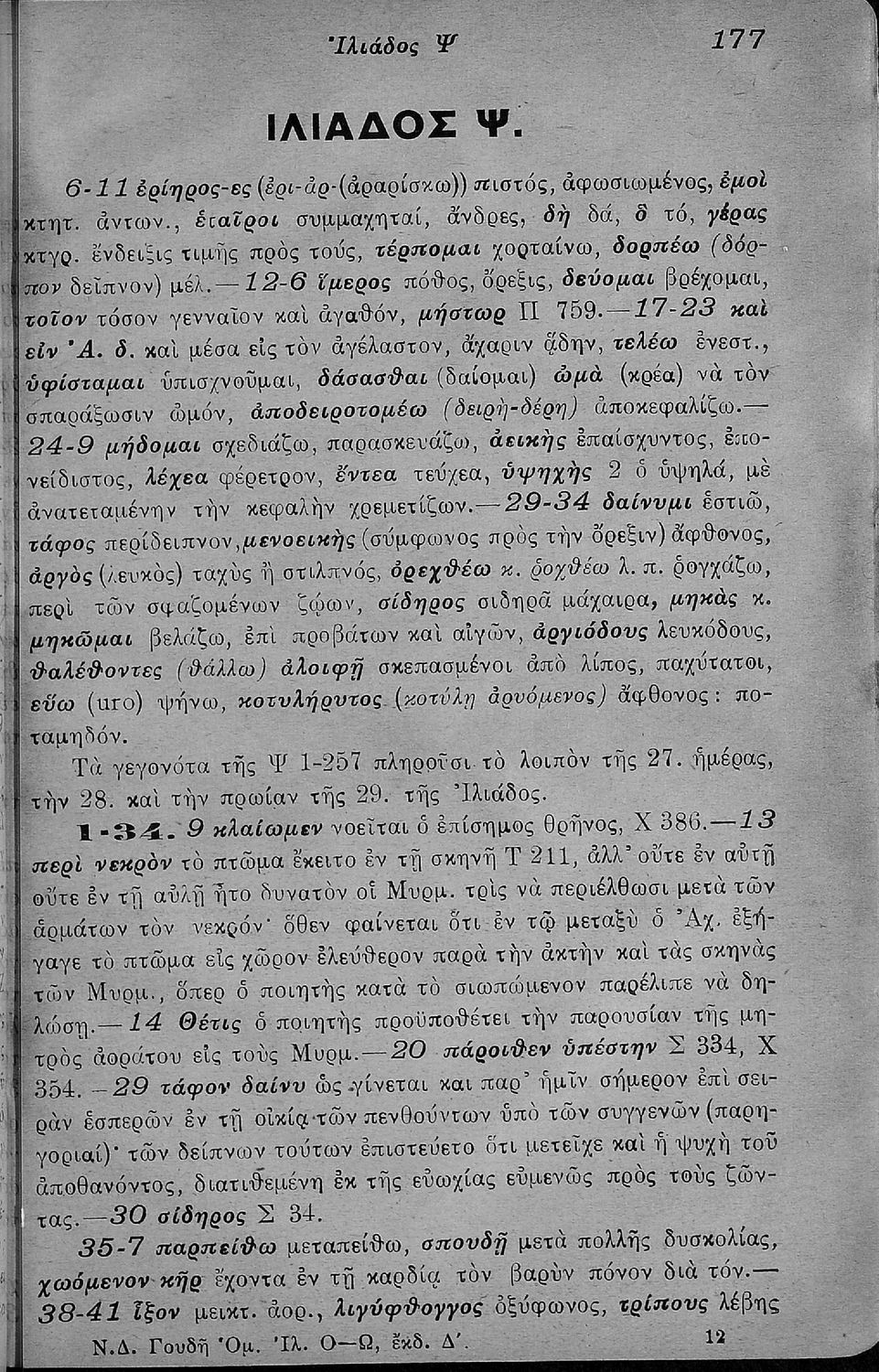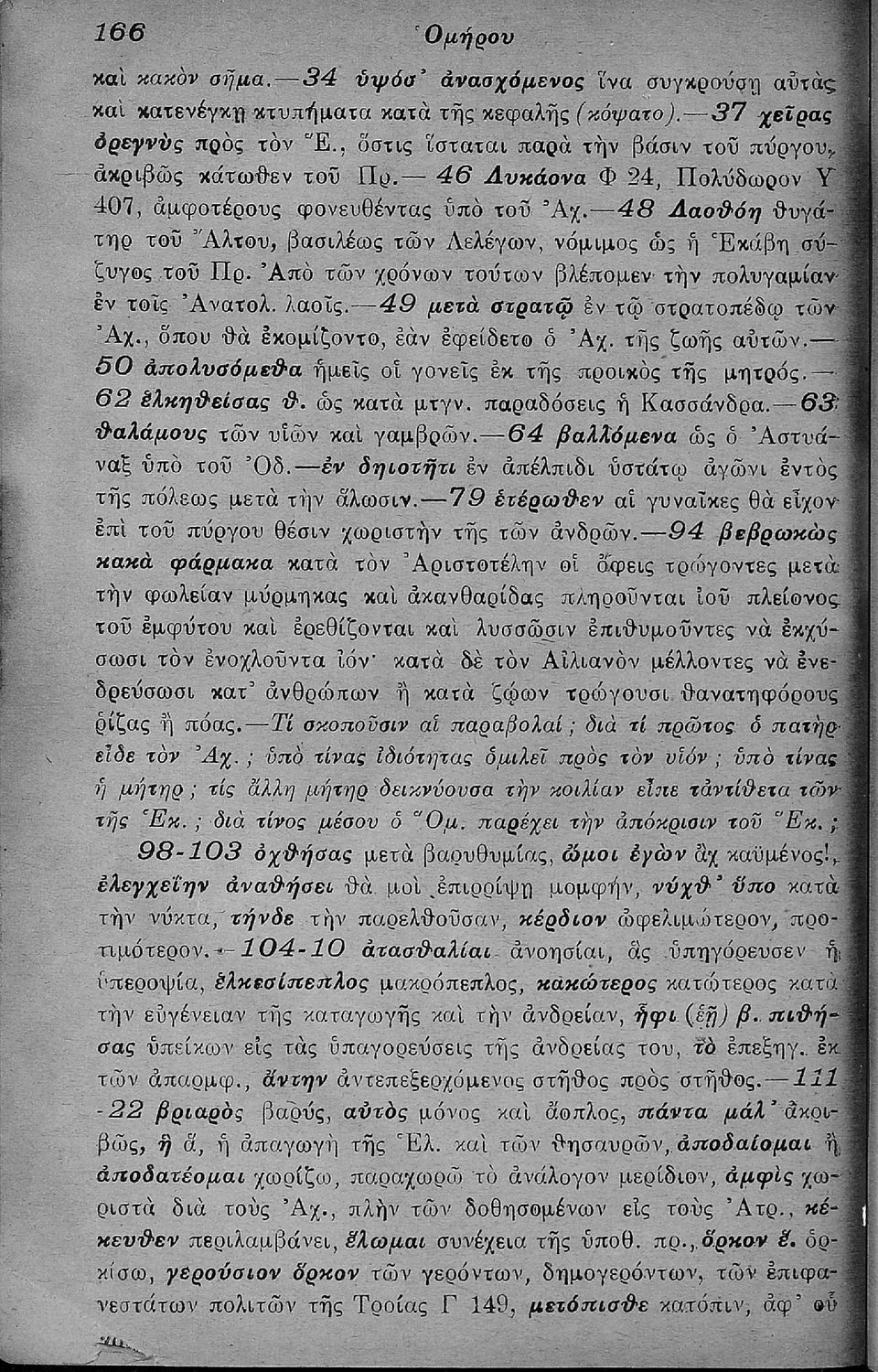 Μαθητικό βοήθημα Αρχαίων Ελληνικών Γυμνασίου που περιλαμβάνει μετάφραση των ραψωδιών Ο΄, Π΄, Ρ΄, Σ΄, Τ΄, Χ΄, Ψ΄, Ω΄, και ερμηνευτικές, πραγματολογικές και γλωσσικές παρατηρήσεις.