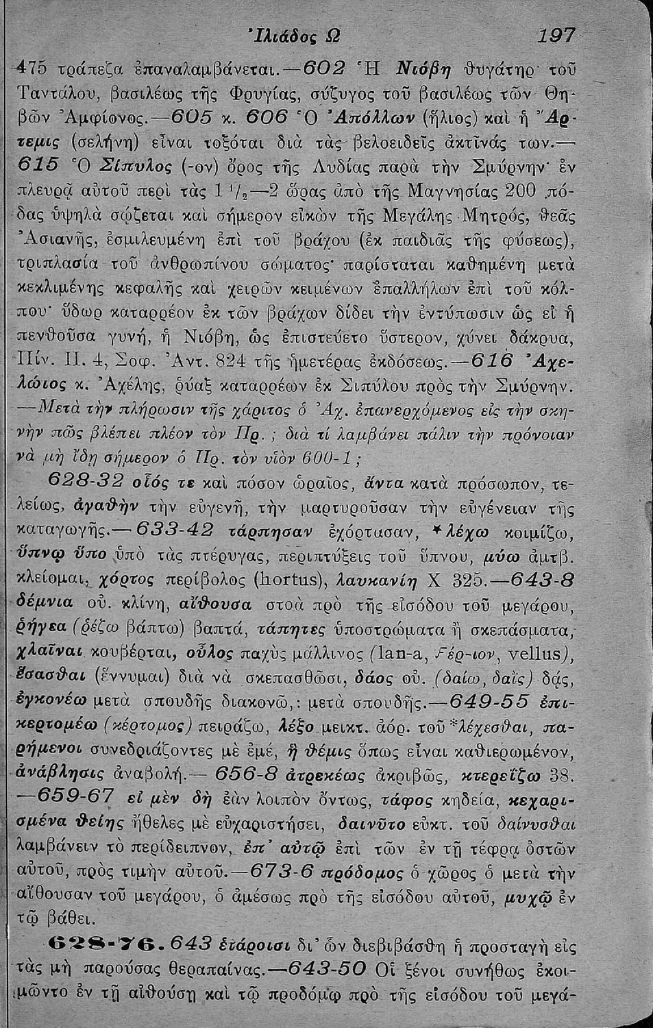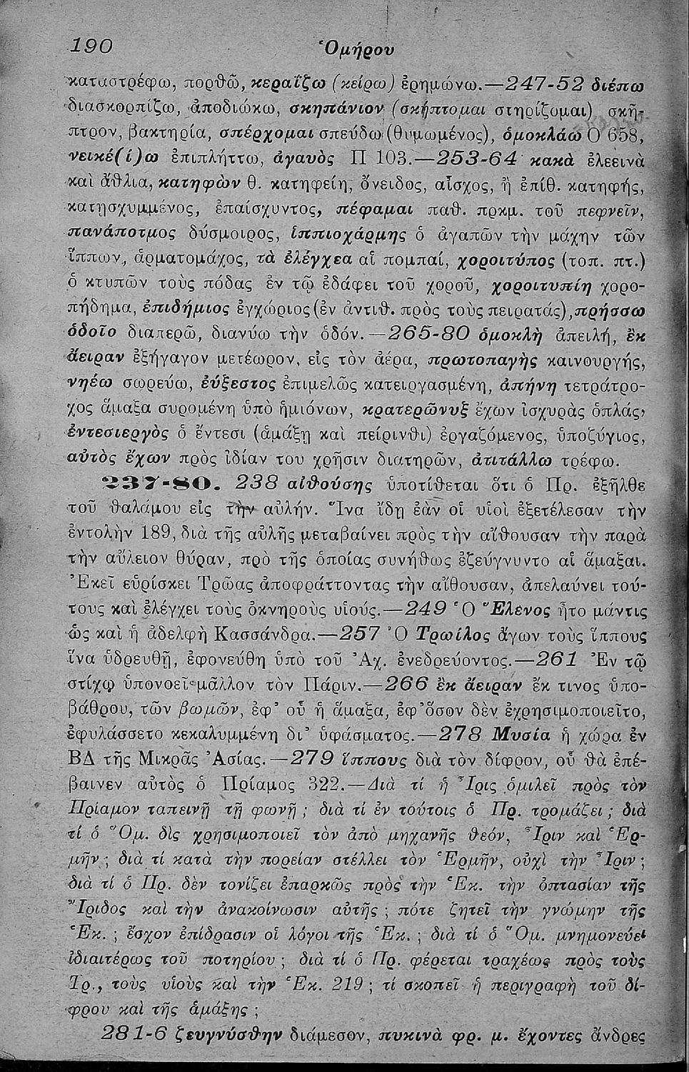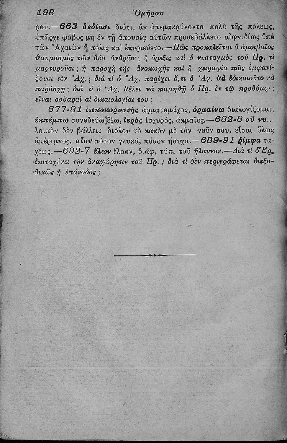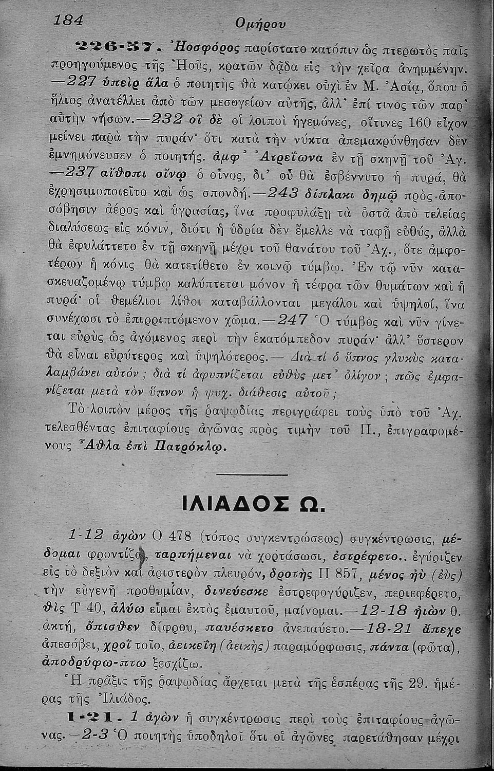 Μαθητικό βοήθημα Αρχαίων Ελληνικών Γυμνασίου που περιλαμβάνει μετάφραση των ραψωδιών Ο΄, Π΄, Ρ΄, Σ΄, Τ΄, Χ΄, Ψ΄, Ω΄, και ερμηνευτικές, πραγματολογικές και γλωσσικές παρατηρήσεις.