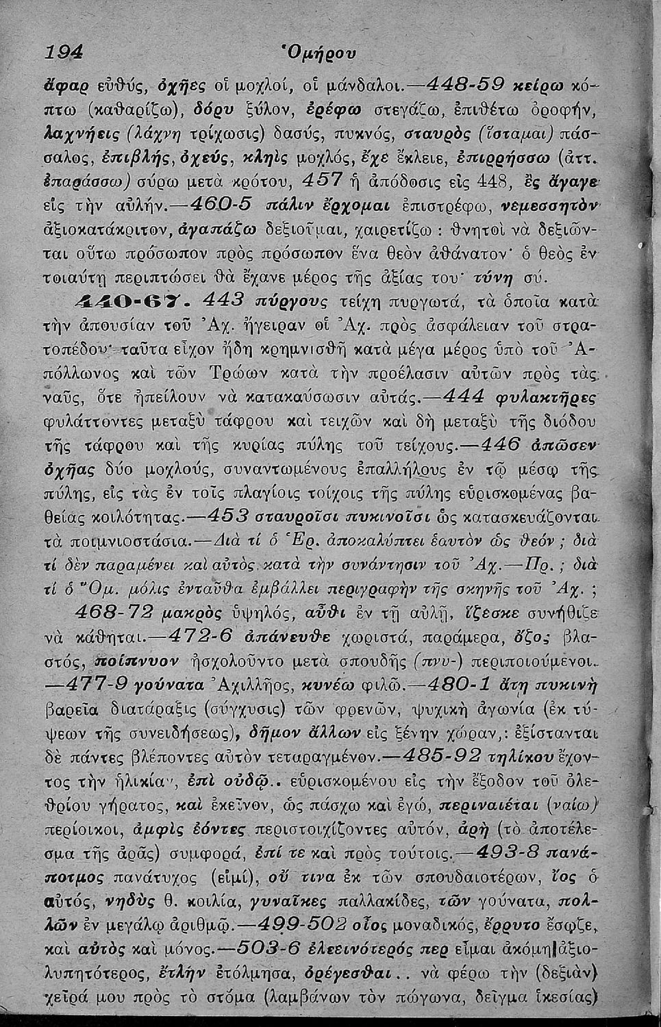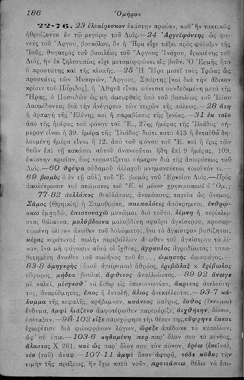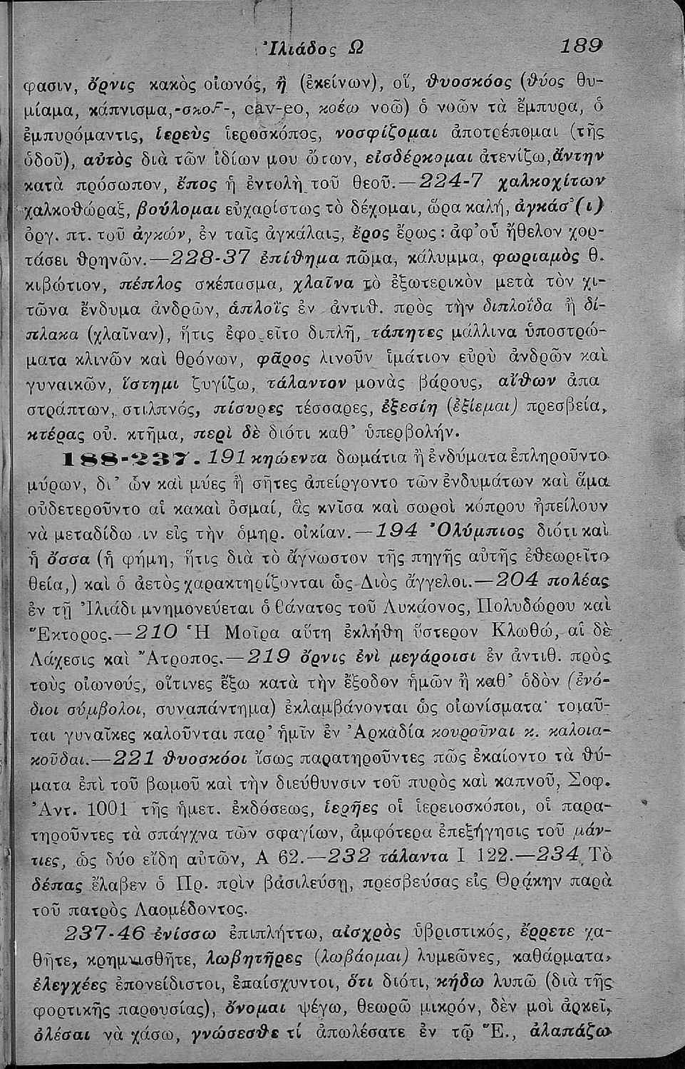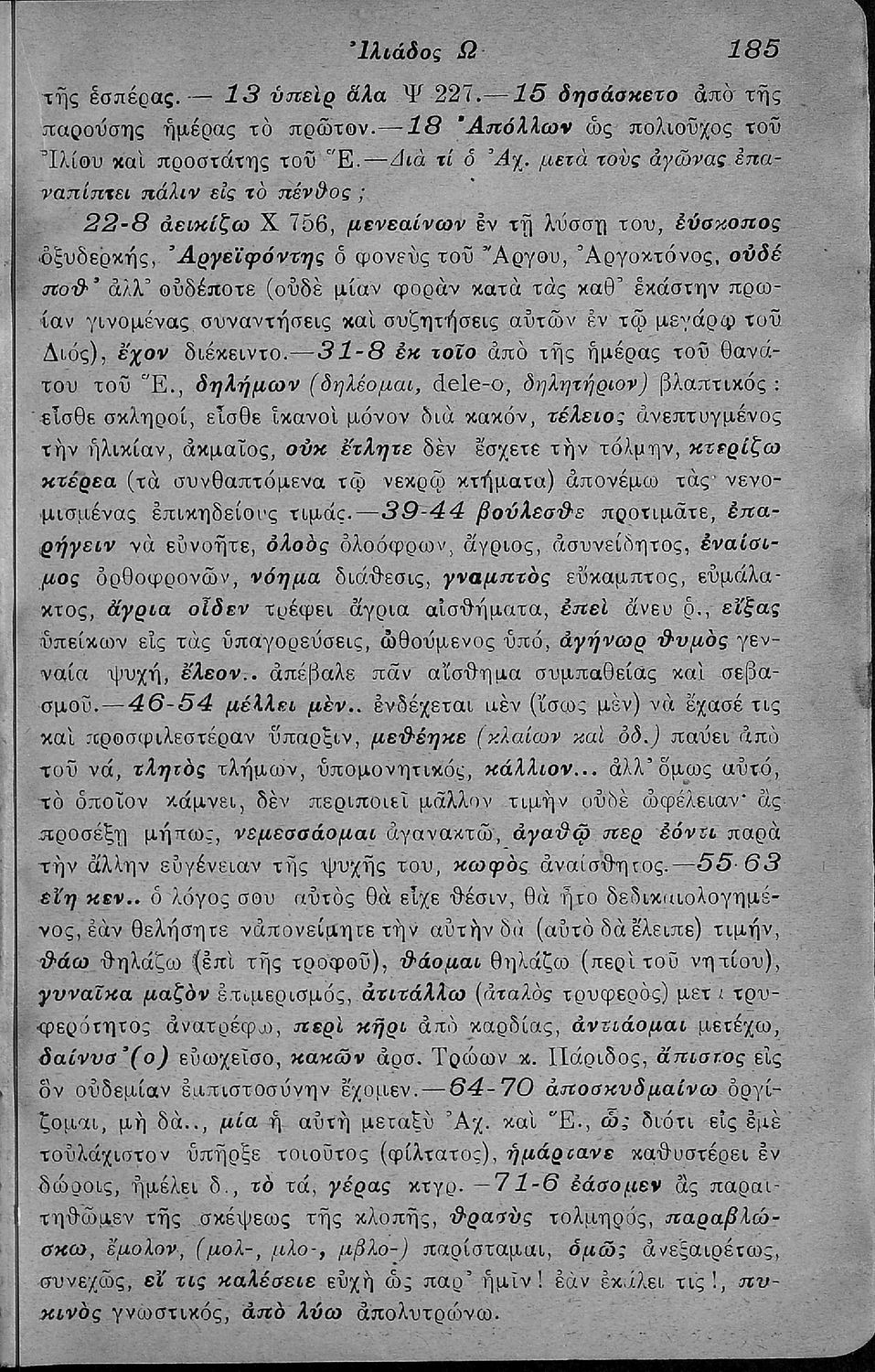 Μαθητικό βοήθημα Αρχαίων Ελληνικών Γυμνασίου που περιλαμβάνει μετάφραση των ραψωδιών Ο΄, Π΄, Ρ΄, Σ΄, Τ΄, Χ΄, Ψ΄, Ω΄, και ερμηνευτικές, πραγματολογικές και γλωσσικές παρατηρήσεις.