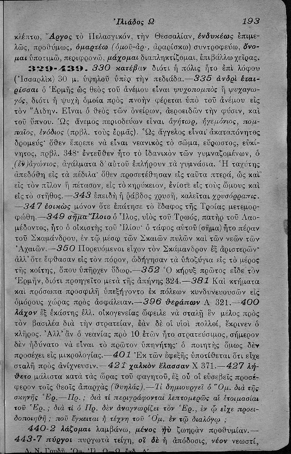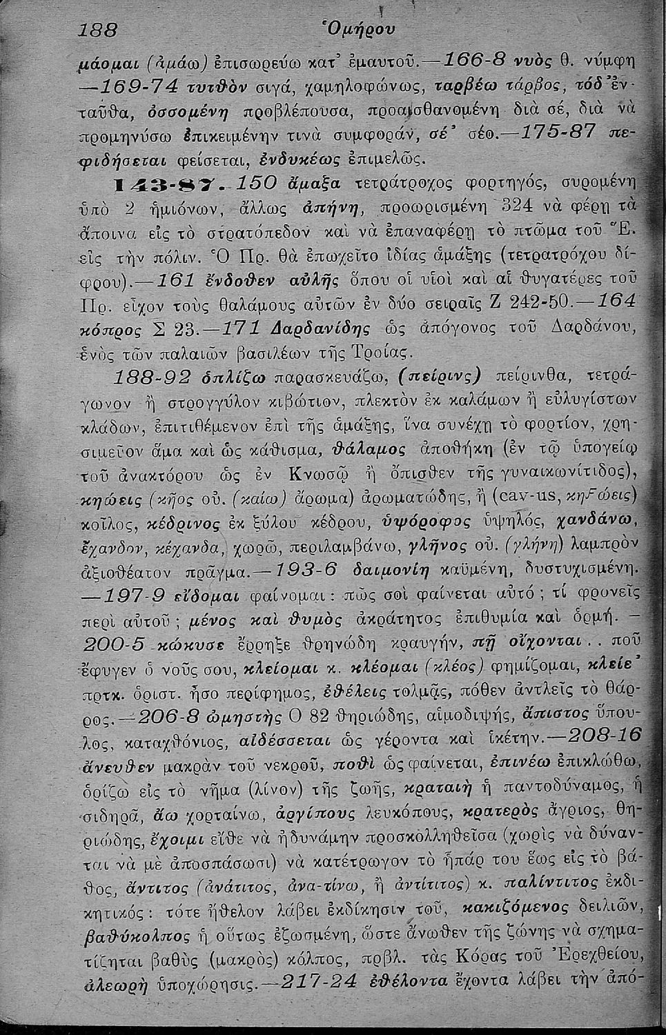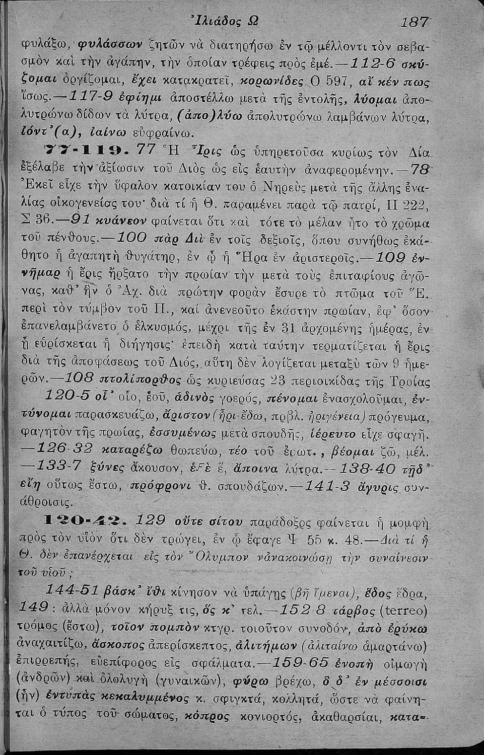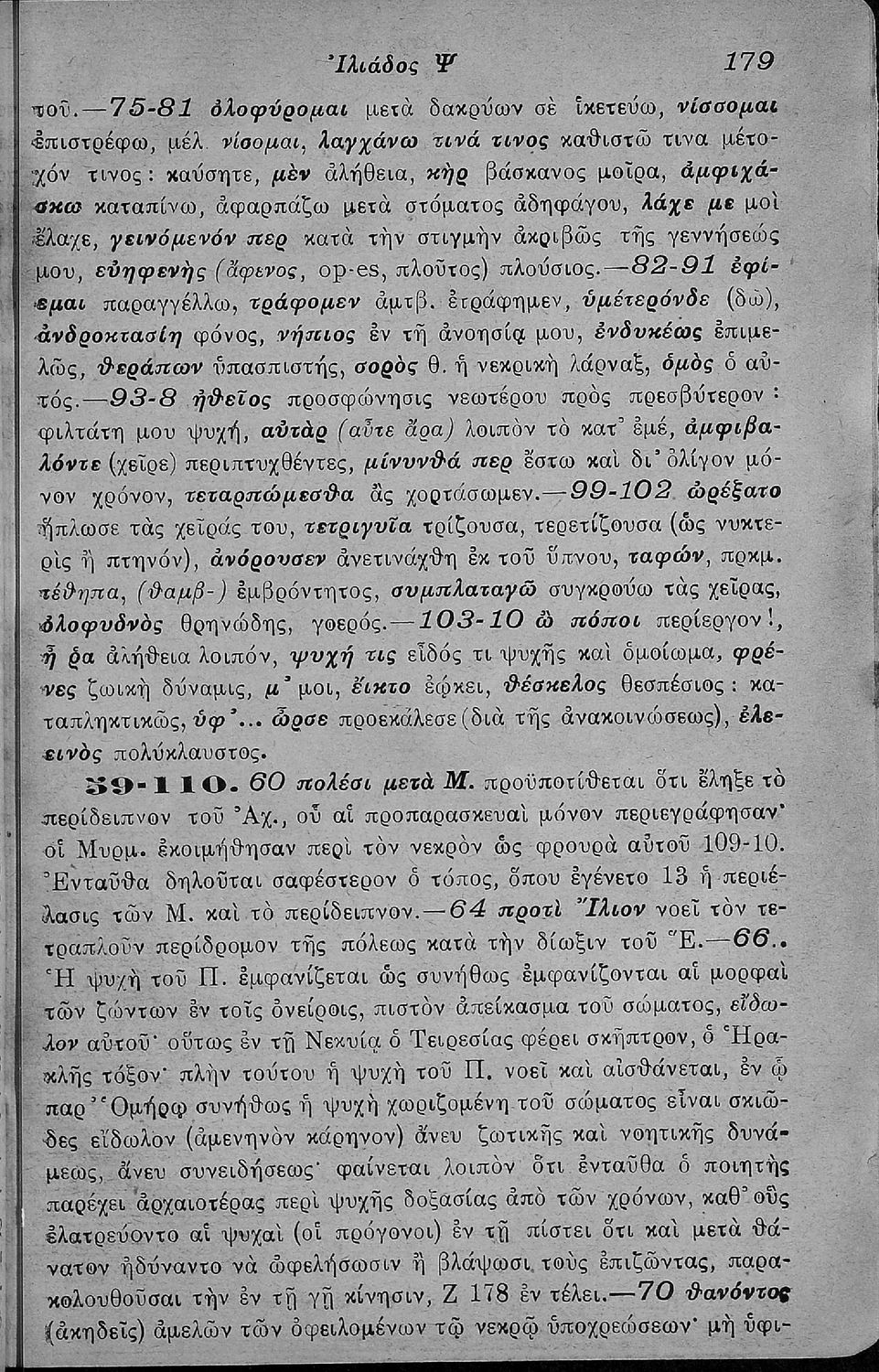 Μαθητικό βοήθημα Αρχαίων Ελληνικών Γυμνασίου που περιλαμβάνει μετάφραση των ραψωδιών Ο΄, Π΄, Ρ΄, Σ΄, Τ΄, Χ΄, Ψ΄, Ω΄, και ερμηνευτικές, πραγματολογικές και γλωσσικές παρατηρήσεις.