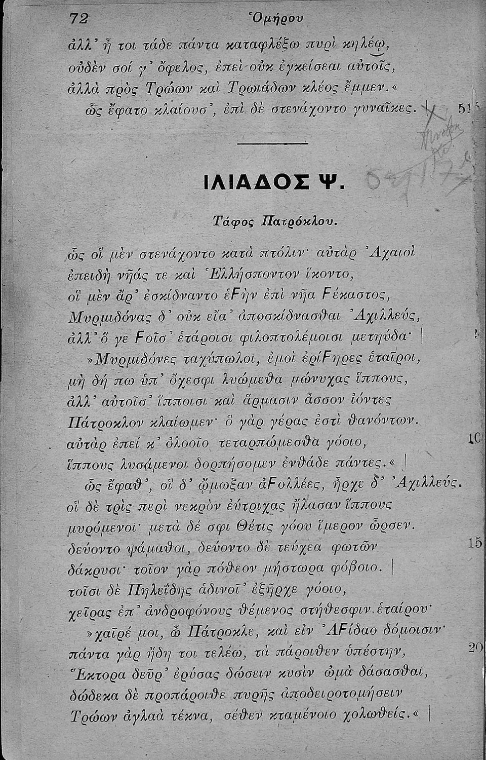Ομήρου Ιλιάς Ο, Π, Ρ, Σ, Τ, Χ, Ψ, Ω