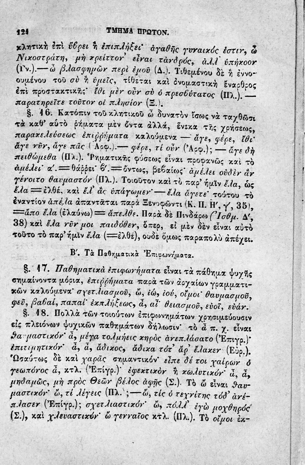 Σχολικό εγχειρίδιο Αρχαίων Ελληνικών για τα Ελληνικά Σχολεία, Παρθεναγωγεία και Γυμνάσια που περιέχει τους κανόνες γραμματικής και είναι χωρισμένο σε φθογγολογικό, τυπολογικό και ετυμολογικό μέρος.