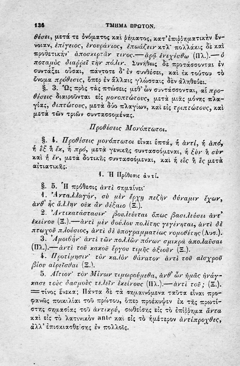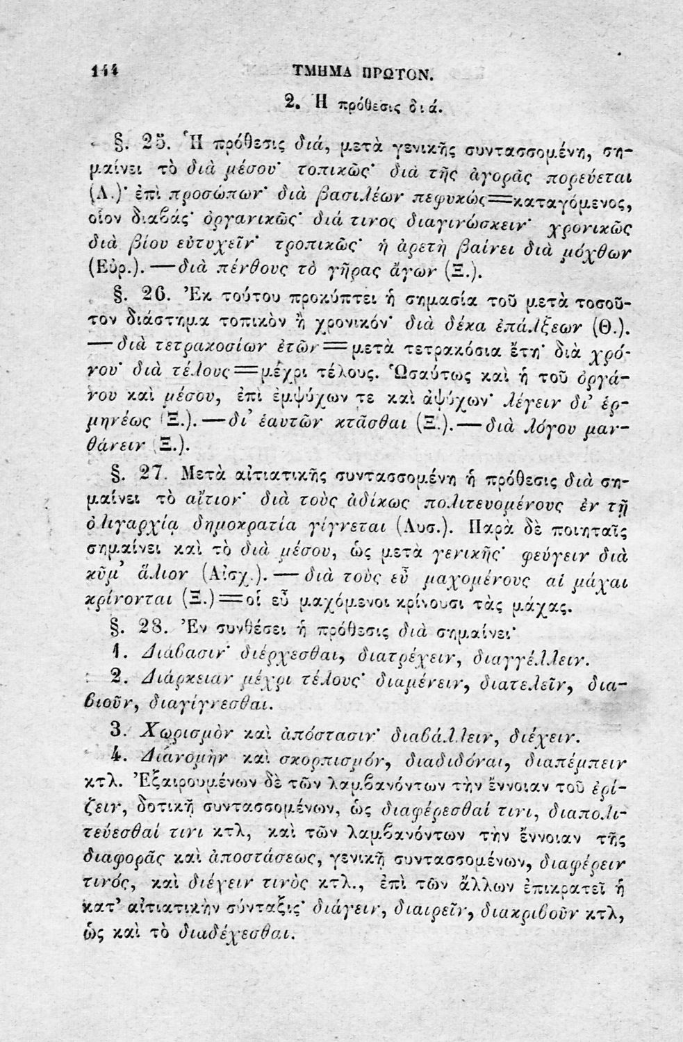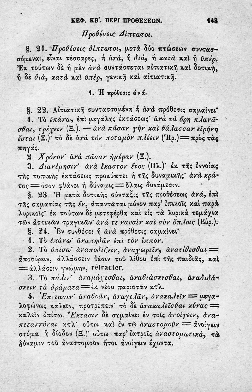 Σχολικό εγχειρίδιο Αρχαίων Ελληνικών για τα Ελληνικά Σχολεία, Παρθεναγωγεία και Γυμνάσια που περιέχει τους κανόνες γραμματικής και είναι χωρισμένο σε φθογγολογικό, τυπολογικό και ετυμολογικό μέρος.