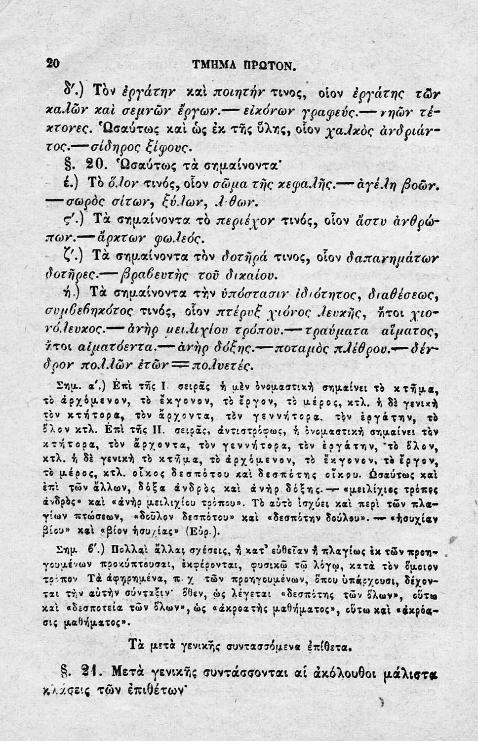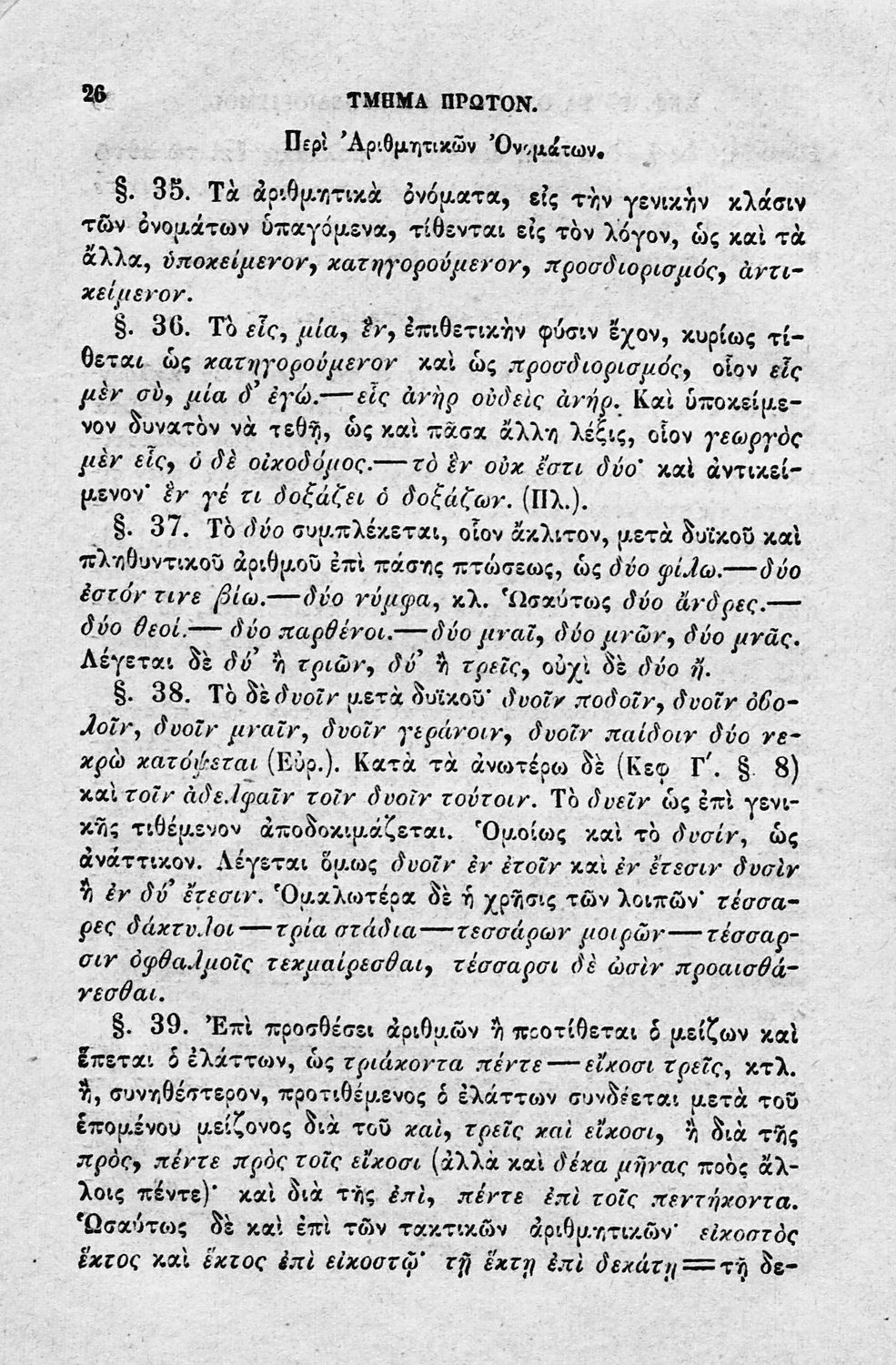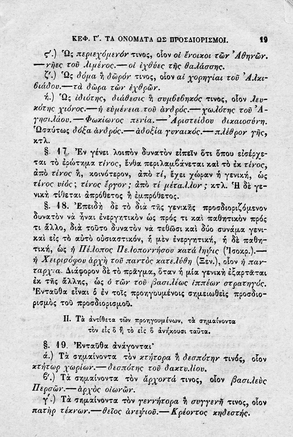 Σχολικό εγχειρίδιο Αρχαίων Ελληνικών για τα Ελληνικά Σχολεία, Παρθεναγωγεία και Γυμνάσια που περιέχει τους κανόνες γραμματικής και είναι χωρισμένο σε φθογγολογικό, τυπολογικό και ετυμολογικό μέρος.