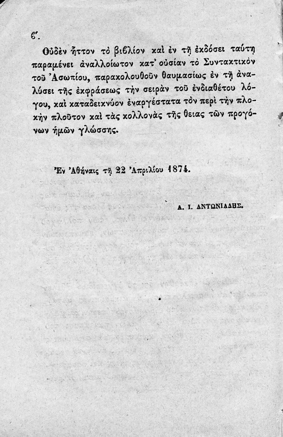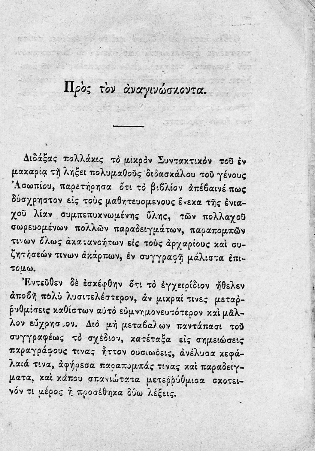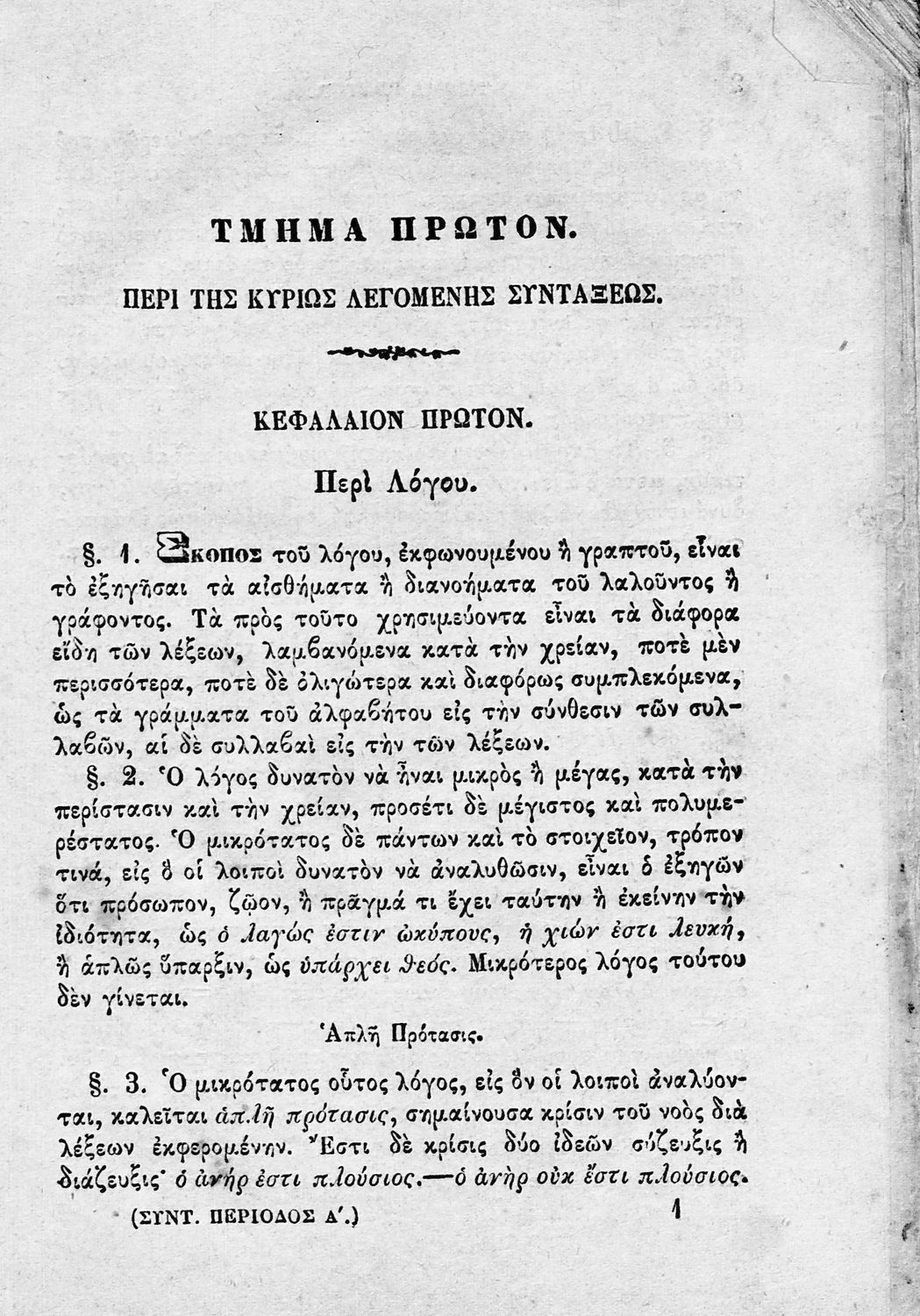Τίτλος: Περί Ελληνικής Συντάξεως προς χρήσιν των Ελληνικών Σχολείων και Γυμνασίων