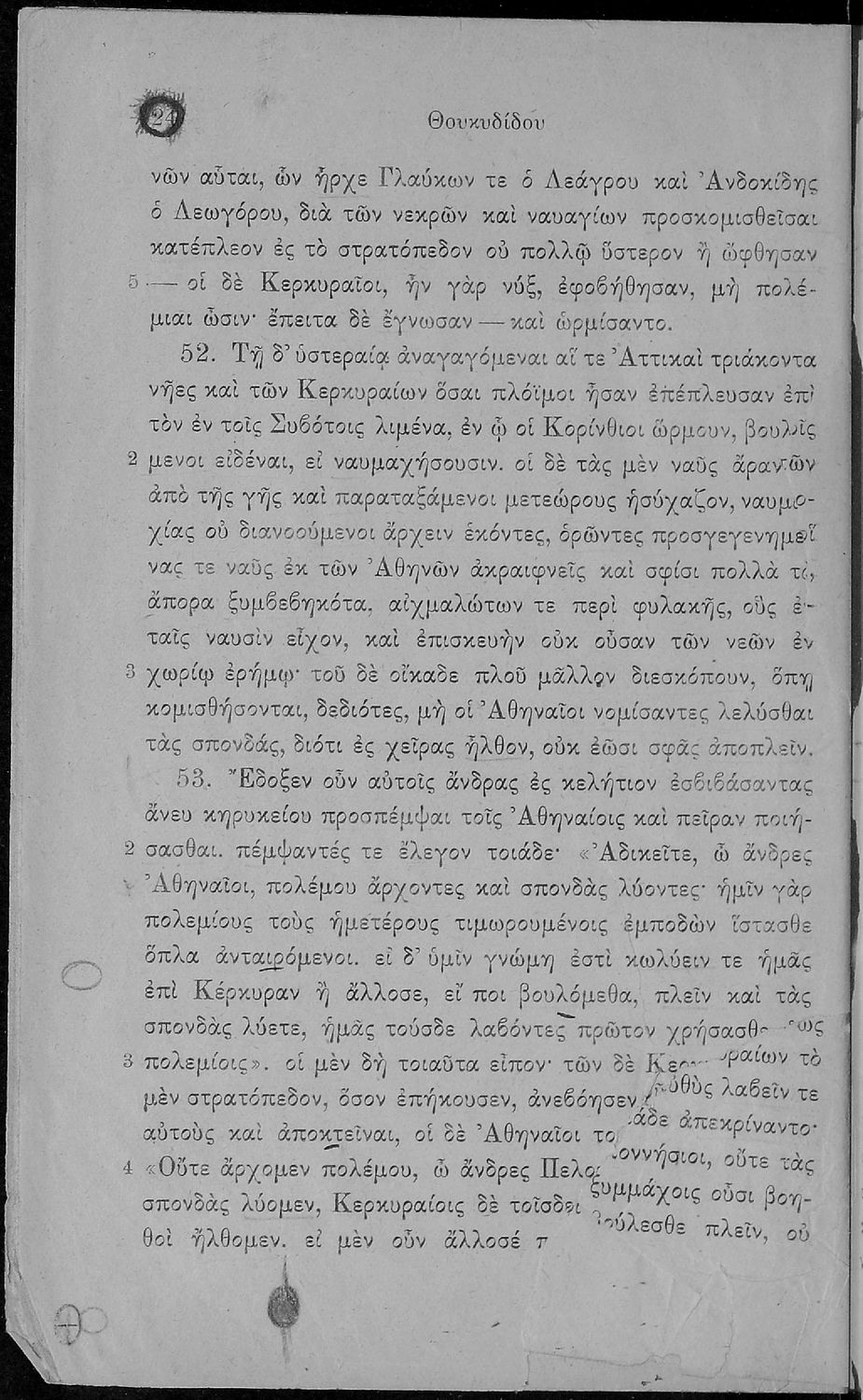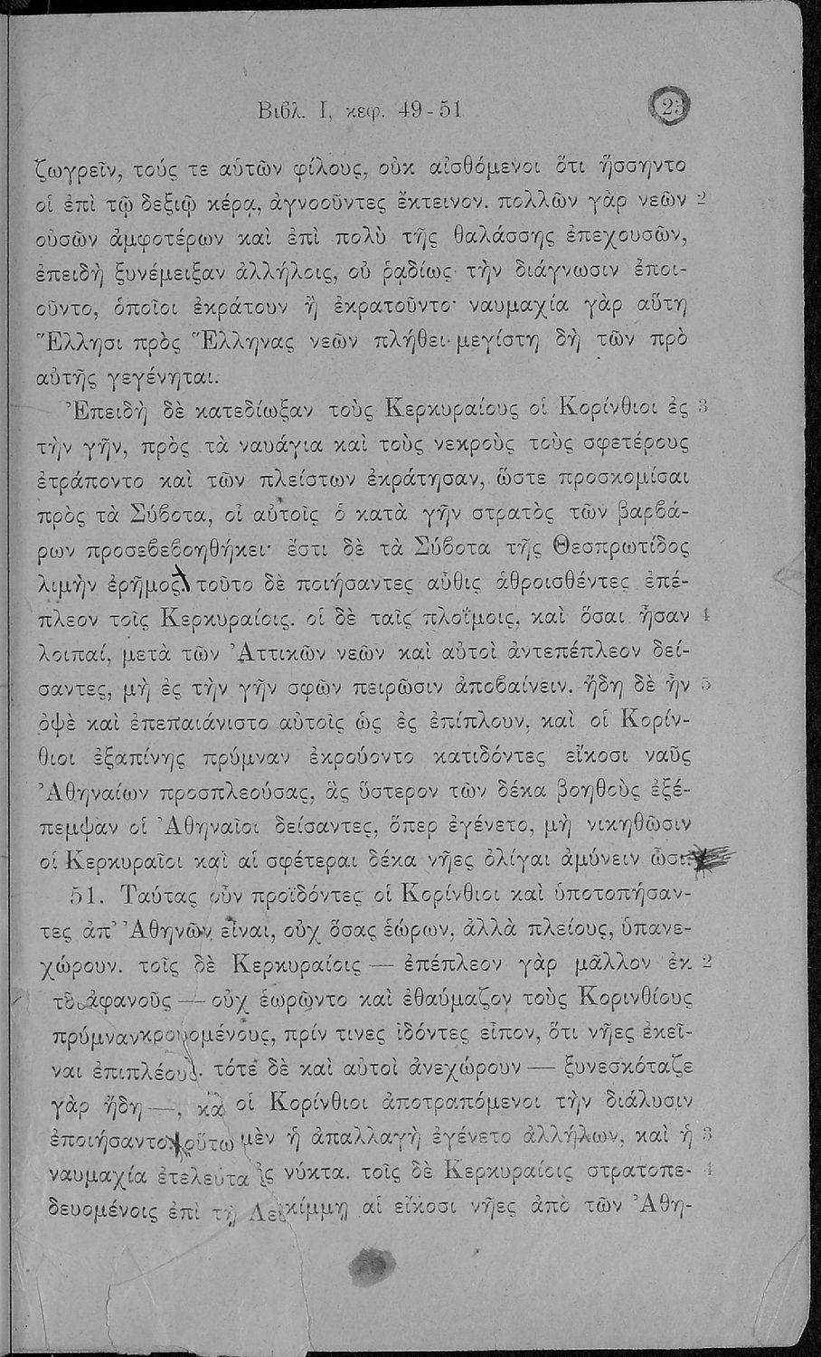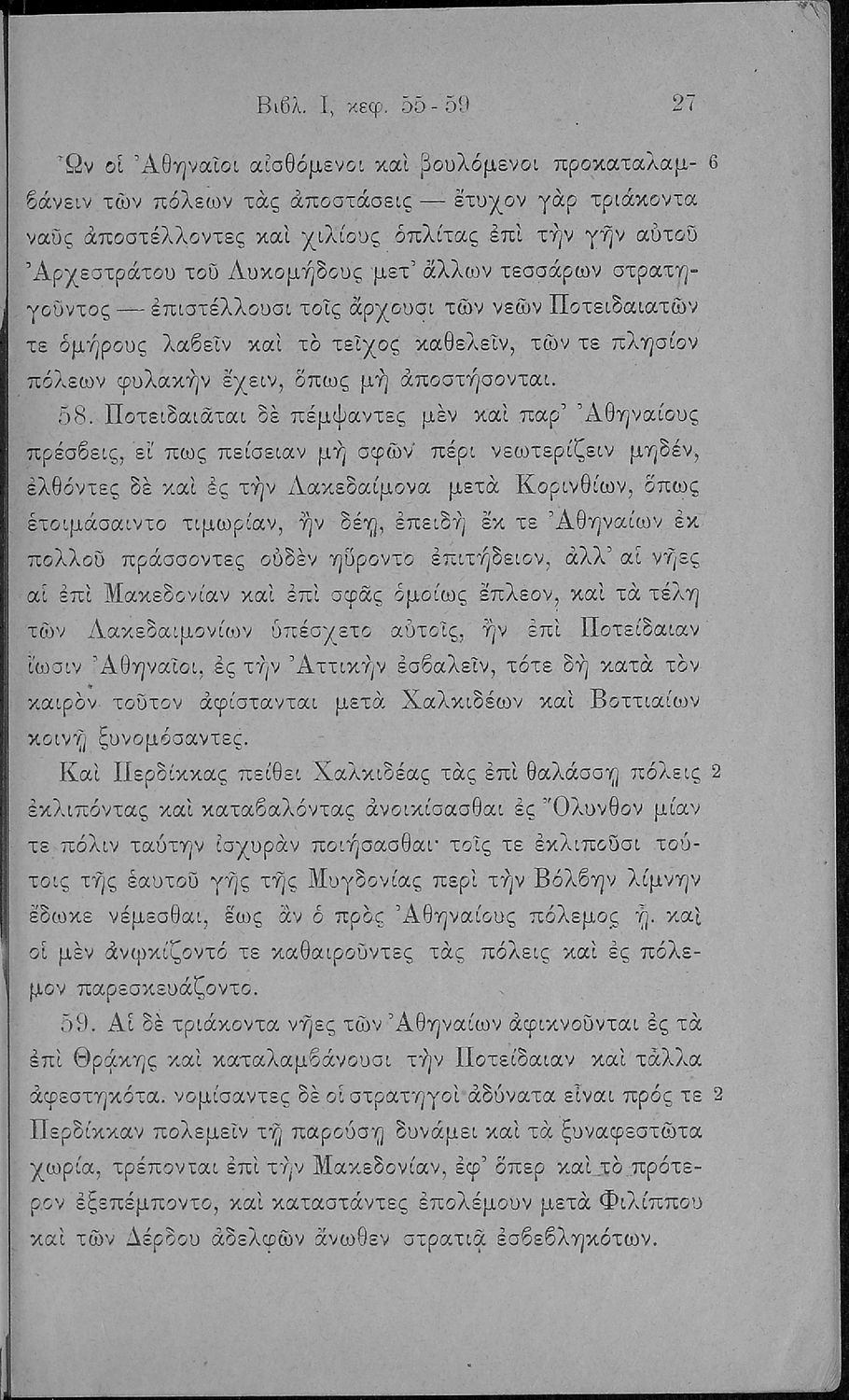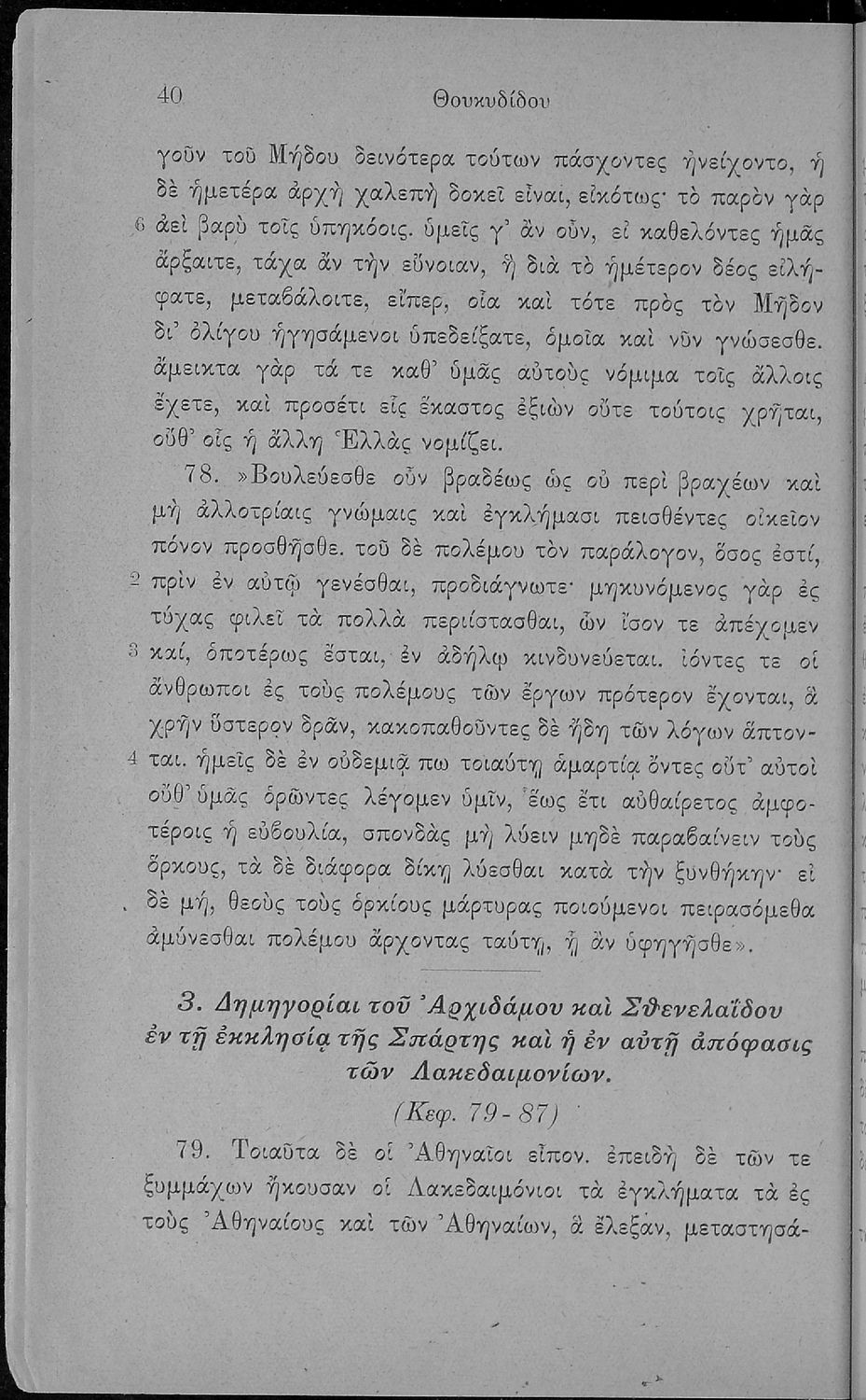 Σχολικό εγχειρίδιο Αρχαίων Ελληνικών Β΄ και Γ΄ Γυμνασίου που περιέχει αποσπάσματα από το έργο του Θουκυδίδη Ιστορία, και με ερμηνευτικές και πραγματολογικές παρατηρήσεις.
