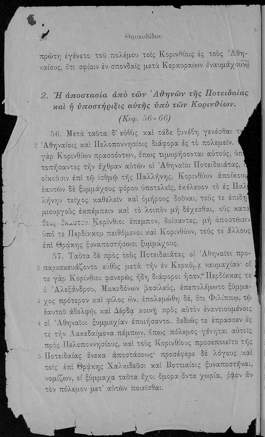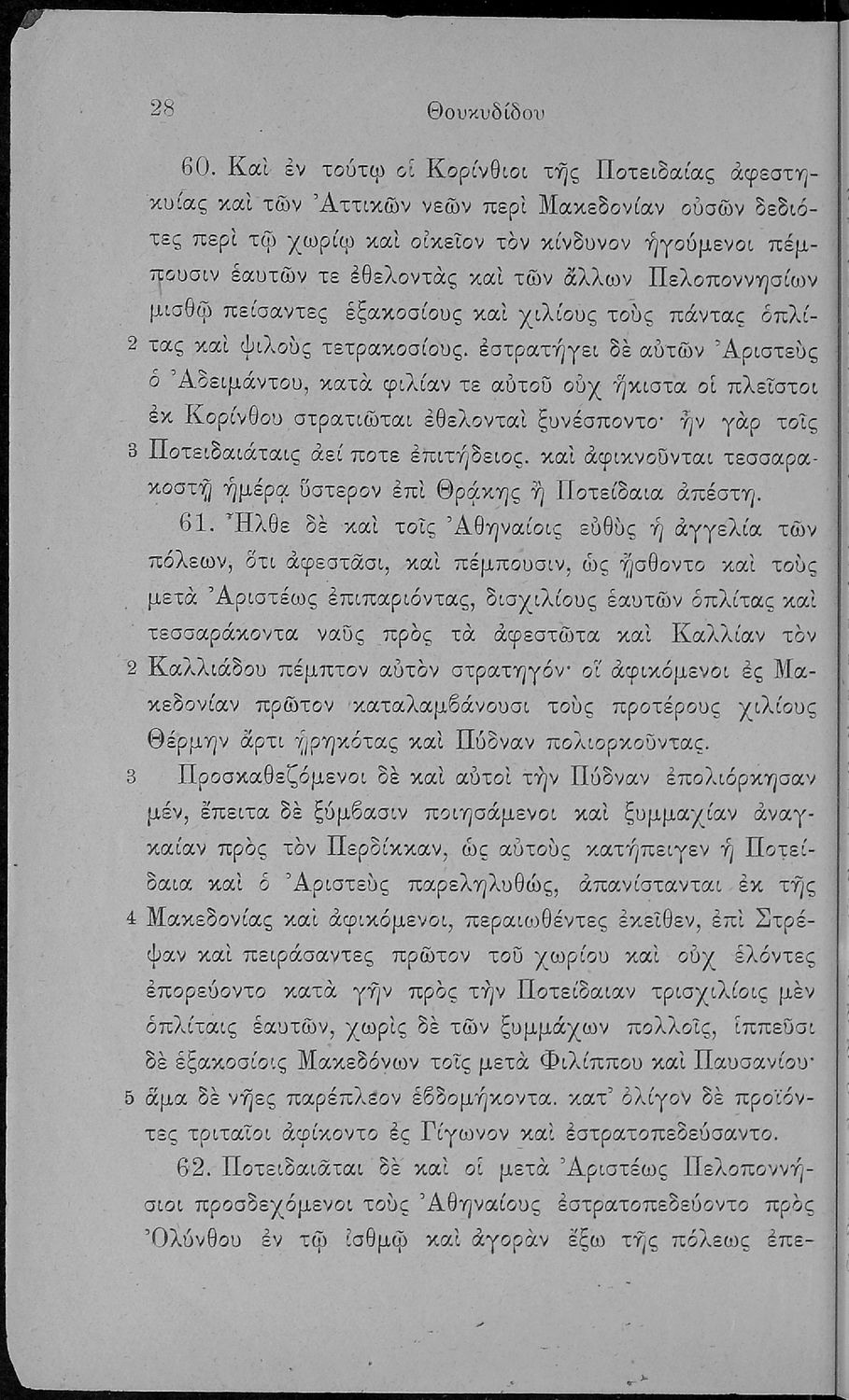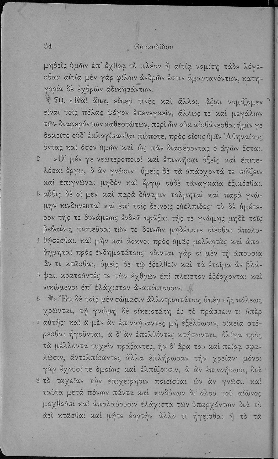 Σχολικό εγχειρίδιο Αρχαίων Ελληνικών για τις Β΄ και Γ΄ Γυμνασίου που περιλαμβάνει σύντομο βιογραφικό σημείωμα του Θουκυδίδη, εισαγωγικά σχόλια στο έργο, κείμενο και ετυμολογικό λεξιλόγιο.
