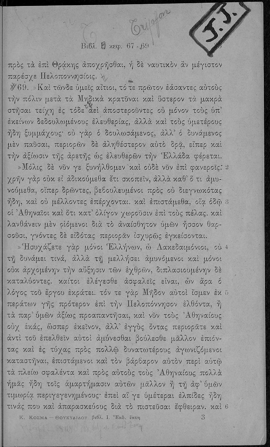 Συγγραφέας: Θουκυδίδης, Κυριάκος Κοσμάς (σχόλια)