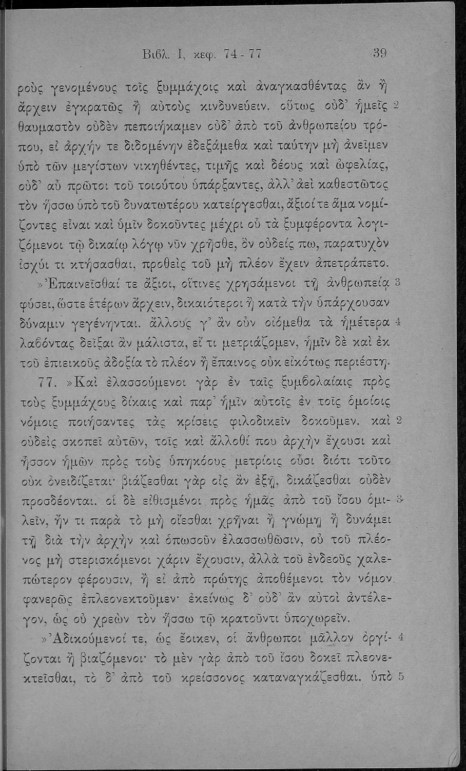 Σχολικό εγχειρίδιο Αρχαίων Ελληνικών Δ΄, Ε΄ και ΣΤ΄ Γυμνασίου που περιέχει αποσπάσματα από το έργο του Θουκυδίδη Ιστορία, ερμηνευτικά και πραγματολογικά σχόλια, και γραμματικές παρατηρήσεις.