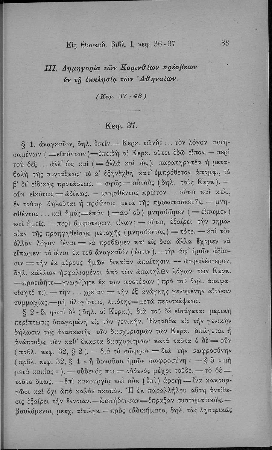 Σχολικό εγχειρίδιο Αρχαίων Ελληνικών Β΄ και Γ΄ Γυμνασίου που περιλαμβάνει εισαγωγή στη ζωή και το έργο του Θουκυδίδη, αποσπάσματα από το πρώτο βιβλίο της Ιστορίας, και ερμηνευτικά, πραγματολογικά και γλωσσικά ...