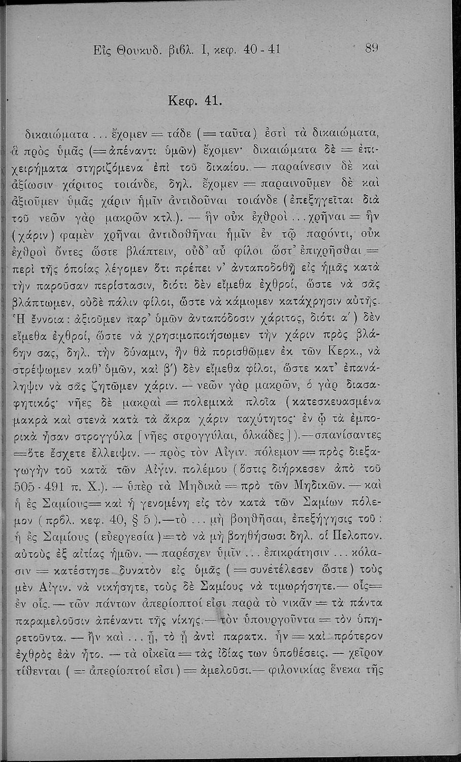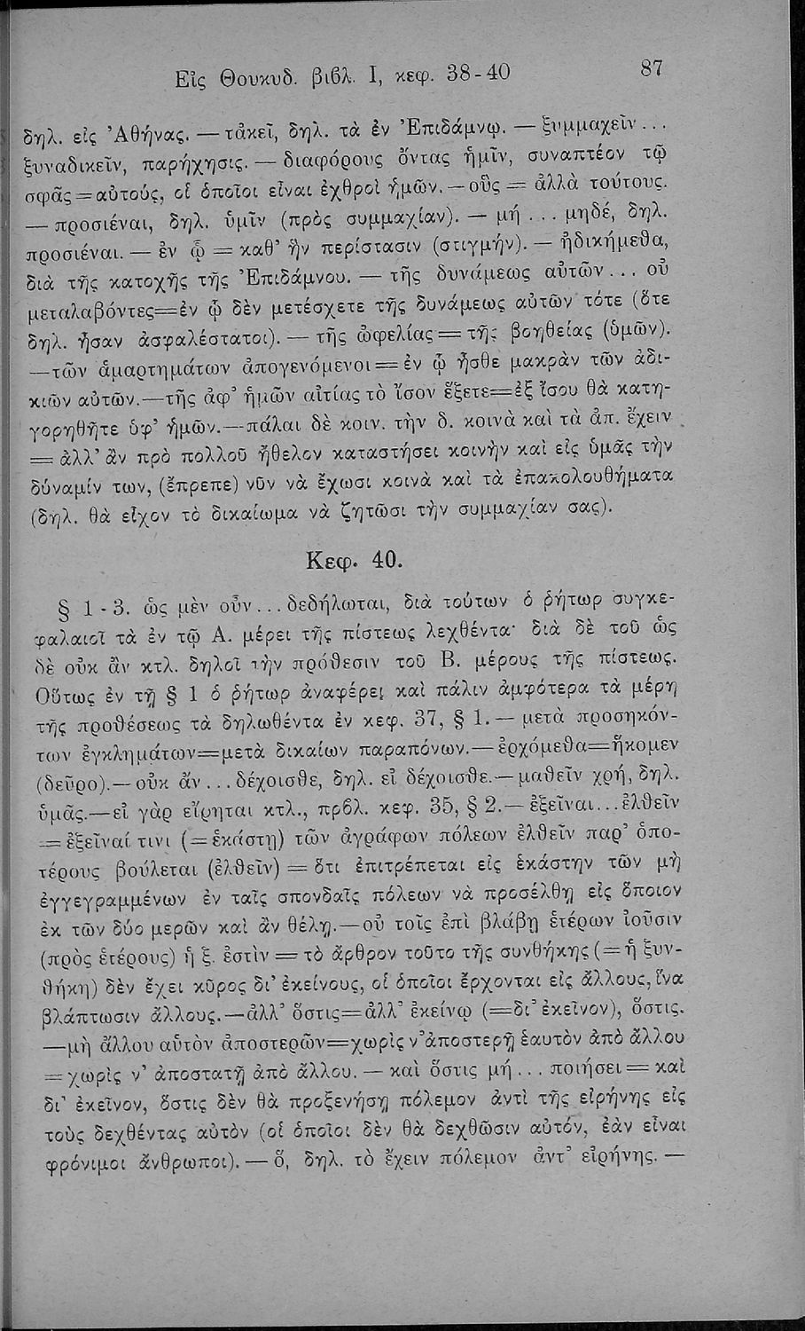 Σχολικό εγχειρίδιο Αρχαίων Ελληνικών Β΄ και Γ΄ Γυμνασίου που περιέχει αποσπάσματα από το έργο του Θουκυδίδη Ιστορία, και με ερμηνευτικές και πραγματολογικές παρατηρήσεις.