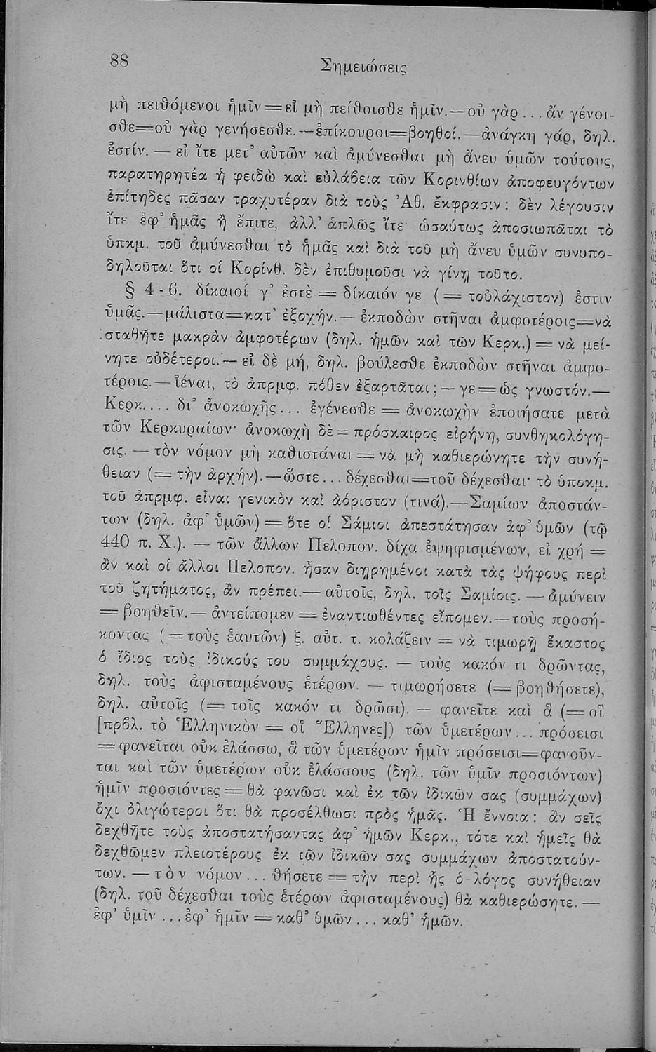 Σχολικό εγχειρίδιο Αρχαίων Ελληνικών Δ΄, Ε΄ και ΣΤ΄ Γυμνασίου που περιέχει αποσπάσματα από το έργο του Θουκυδίδη Ιστορία, ερμηνευτικά και πραγματολογικά σχόλια, και γραμματικές παρατηρήσεις.
