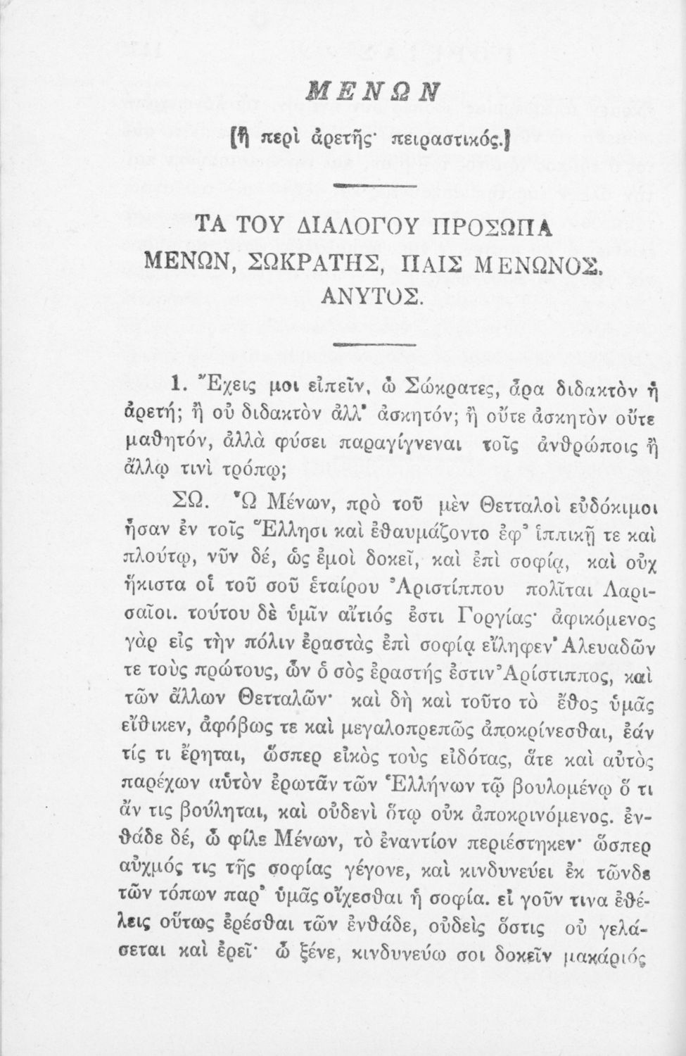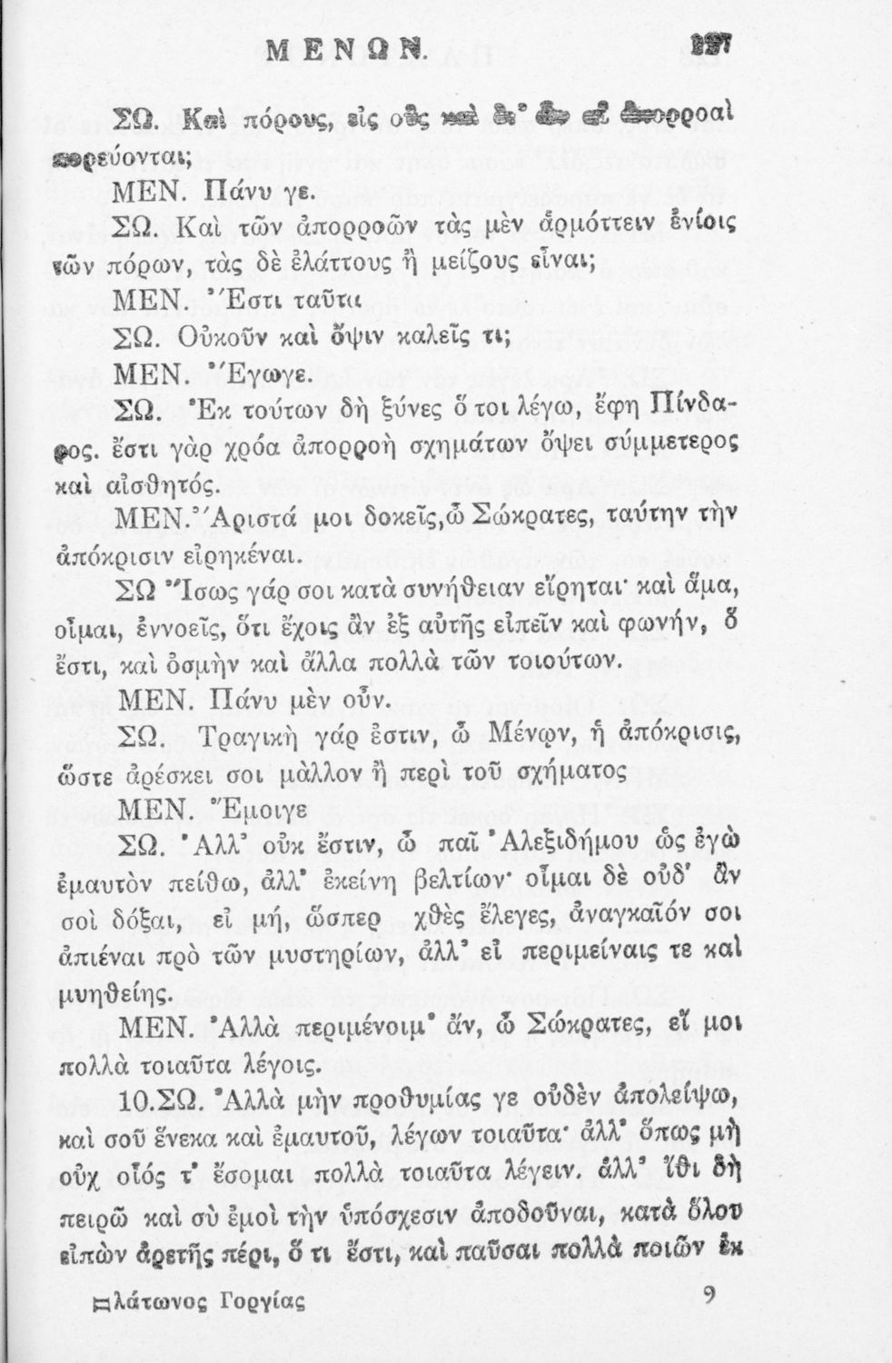 Έκδοση που περιλαμβάνει τα έργα του Πλάτωνα Γοργίας και Μένων κατά την έκδοση Coroli Friderici Hermanni.