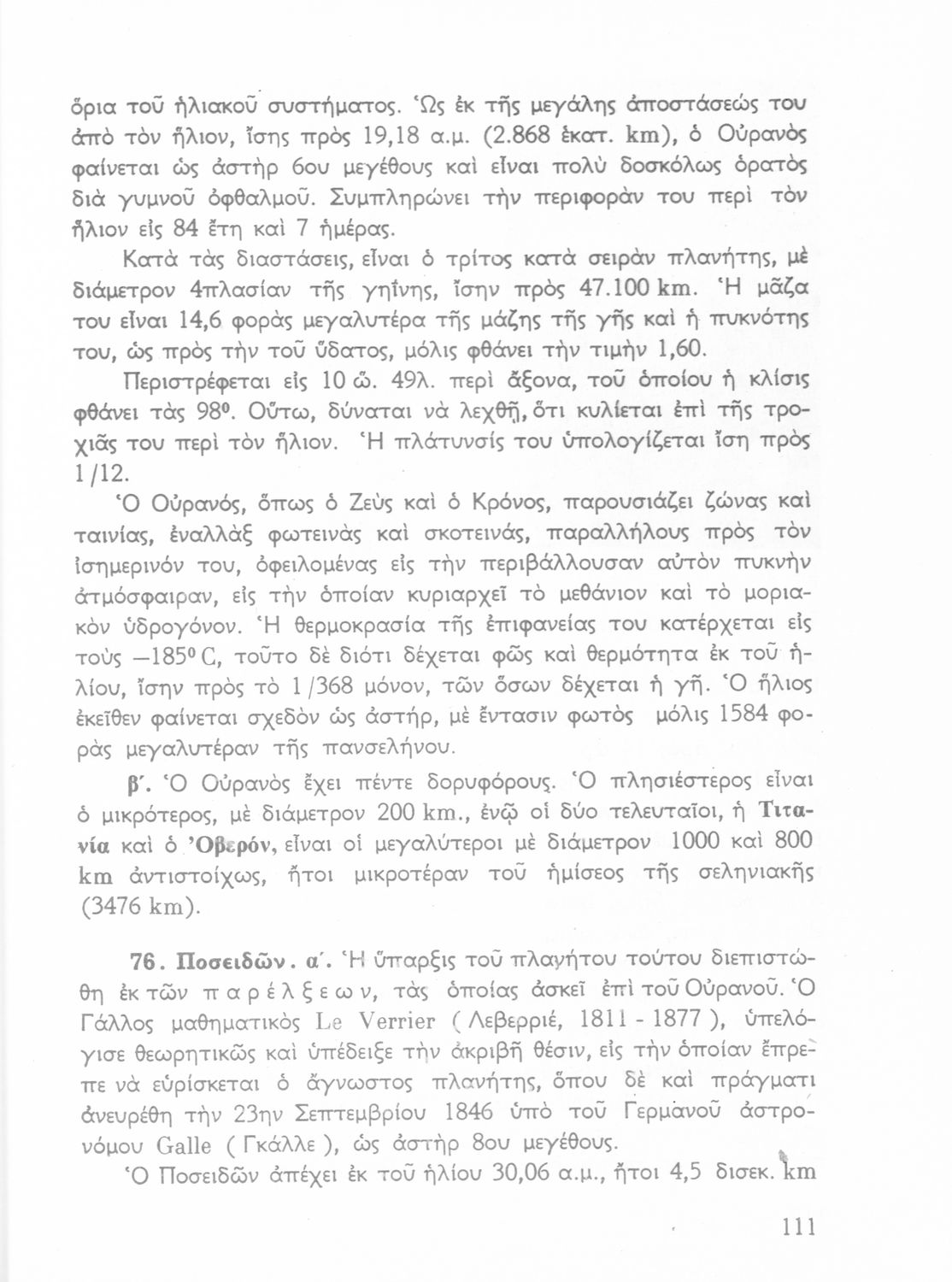 Σχολικό εγχειρίδιο Κοσμογραφίας ΣΤ΄ Γυμνασίου που εστιάζει στην κίνηση των πλανητών και στον τρόπο υπολογισμού της τροχιάς τους.
