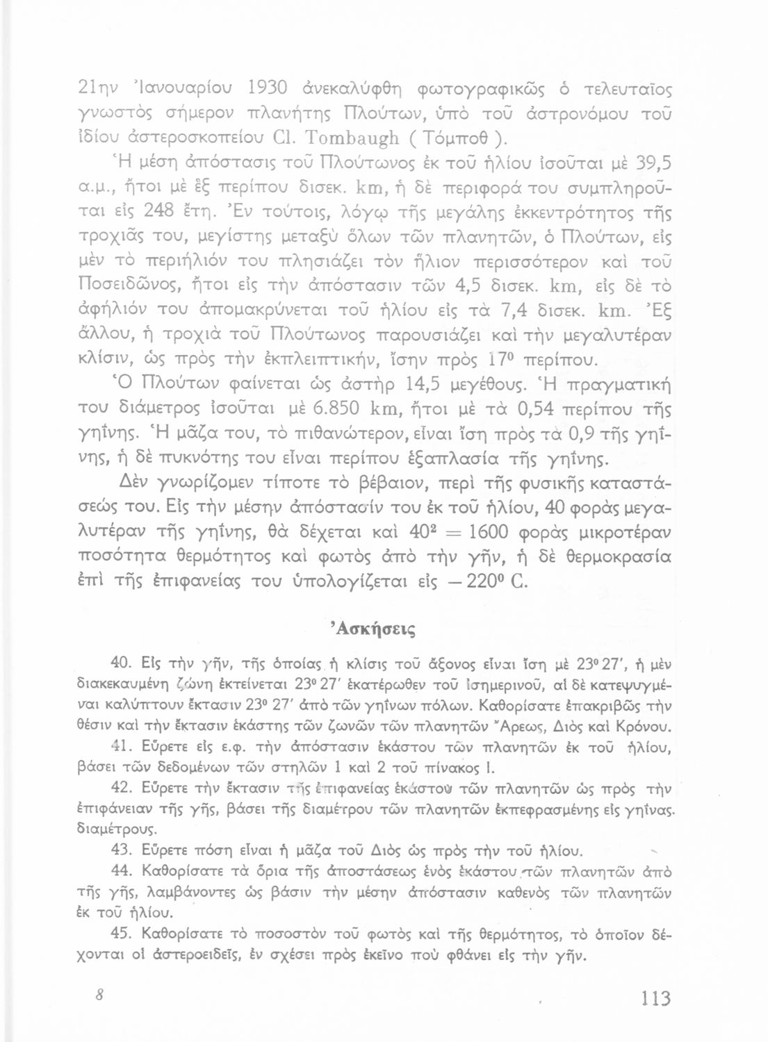 Σχολικό εγχειρίδιο Κοσμογραφίας ΣΤ΄ Γυμνασίου που πραγματεύεται τη μορφή, σύσταση, μέγεθος και κίνηση των γαλαξιών και των πλανητών. Περιέχει στοιχεία αστροναυτικής και πίνακα με 88 αστερισμούς, τα διεθνή ονόματα και τα σύμβολά τους.
