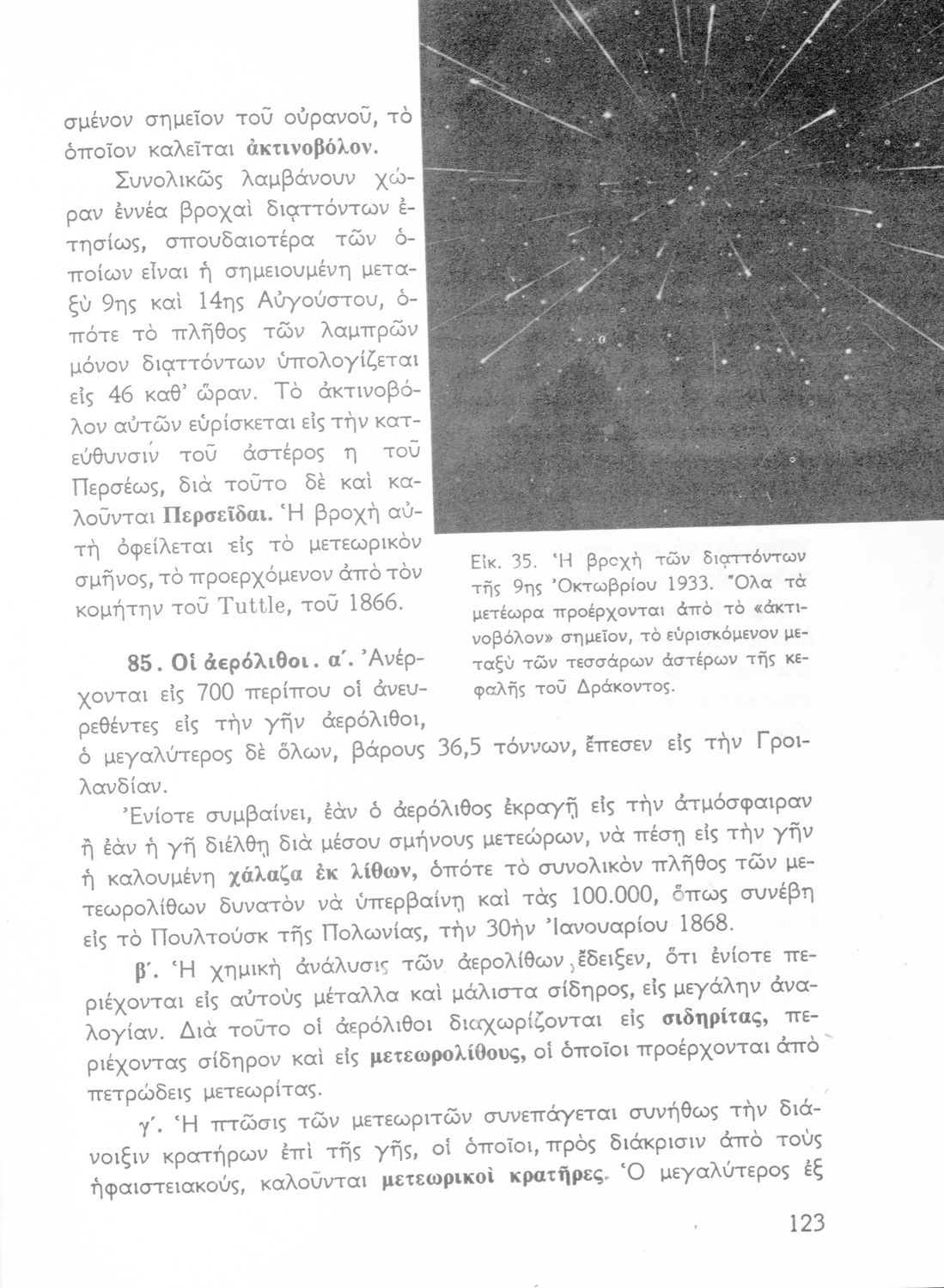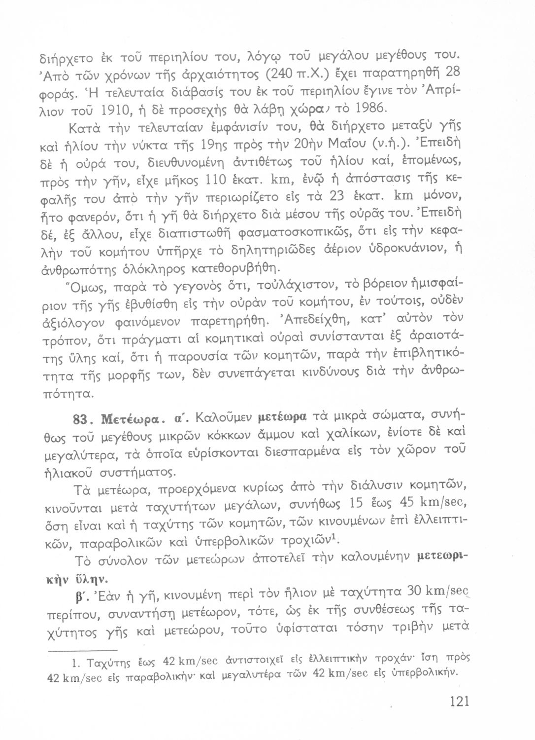 Σχολικό εγχειρίδιο Κοσμογραφίας ΣΤ΄ Γυμνασίου που πραγματεύεται τη μορφή, σύσταση, μέγεθος και κίνηση των γαλαξιών και των πλανητών. Περιέχει στοιχεία αστροναυτικής και πίνακα με 88 αστερισμούς, τα διεθνή ονόματα και τα σύμβολά τους.
