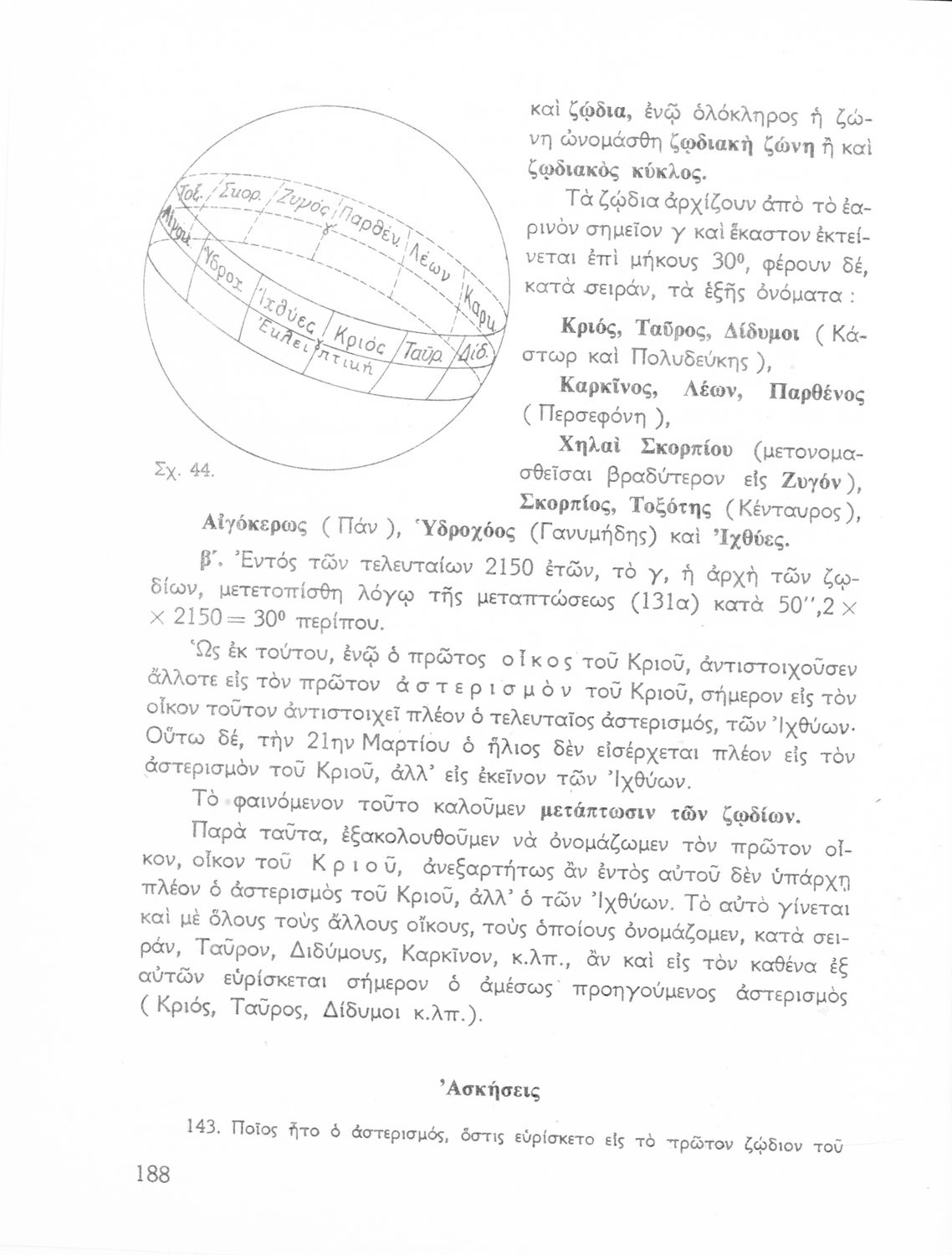 Σχολικό εγχειρίδιο Κοσμογραφίας ΣΤ΄ Γυμνασίου που πραγματεύεται τη μορφή, σύσταση, μέγεθος και κίνηση των γαλαξιών και των πλανητών. Περιέχει στοιχεία αστροναυτικής και πίνακα με 88 αστερισμούς, τα διεθνή ονόματα και τα σύμβολά τους.