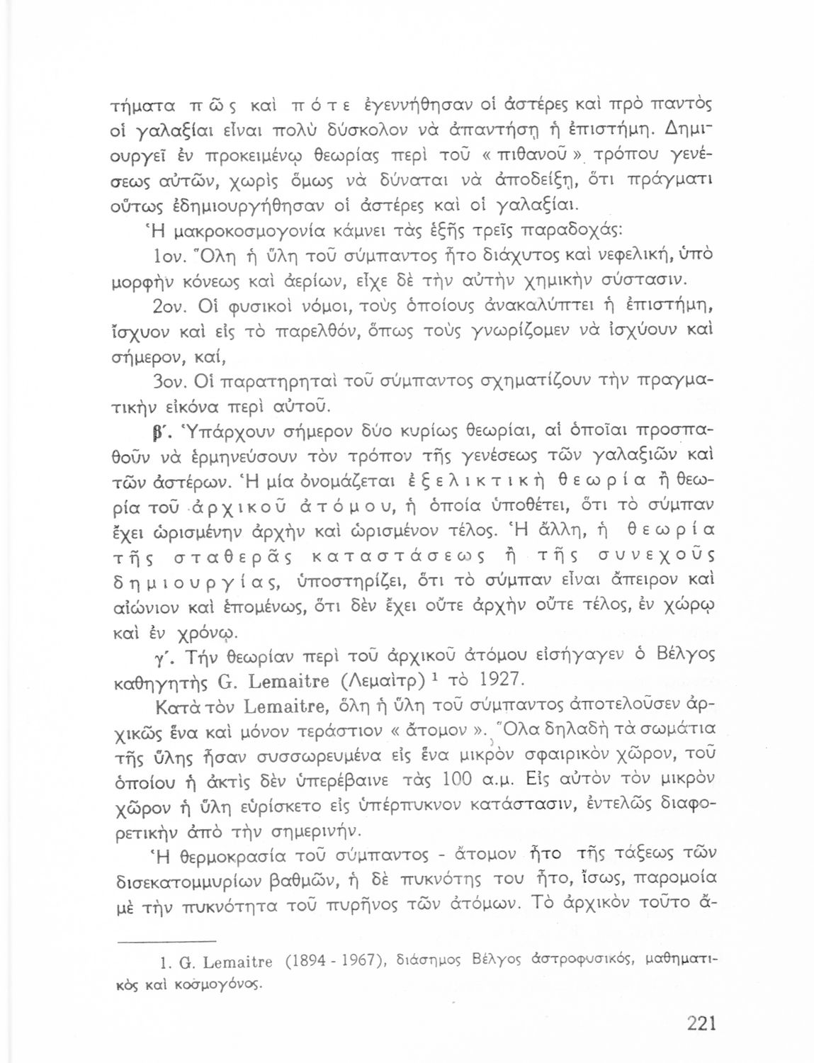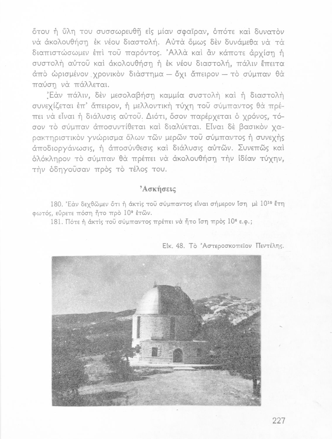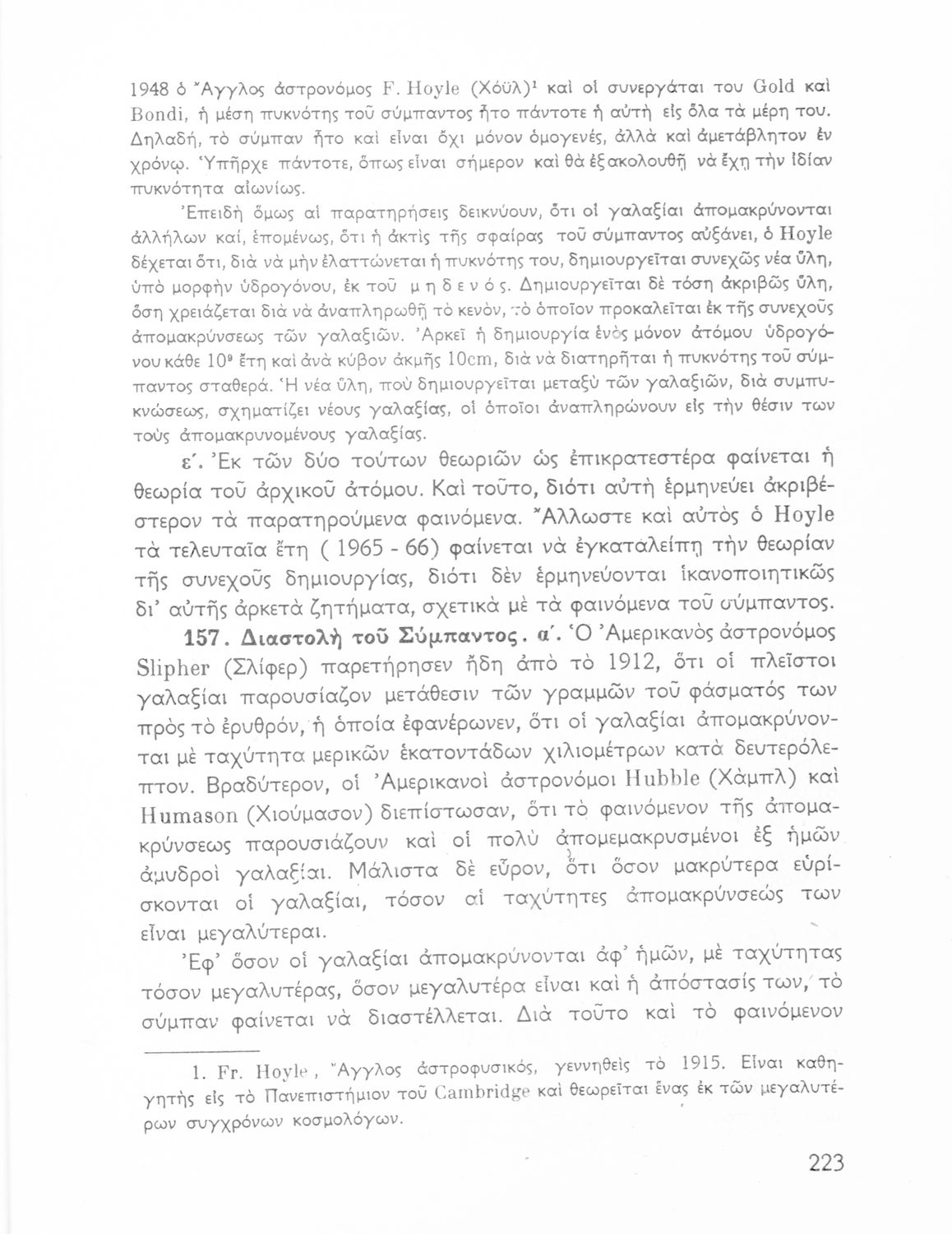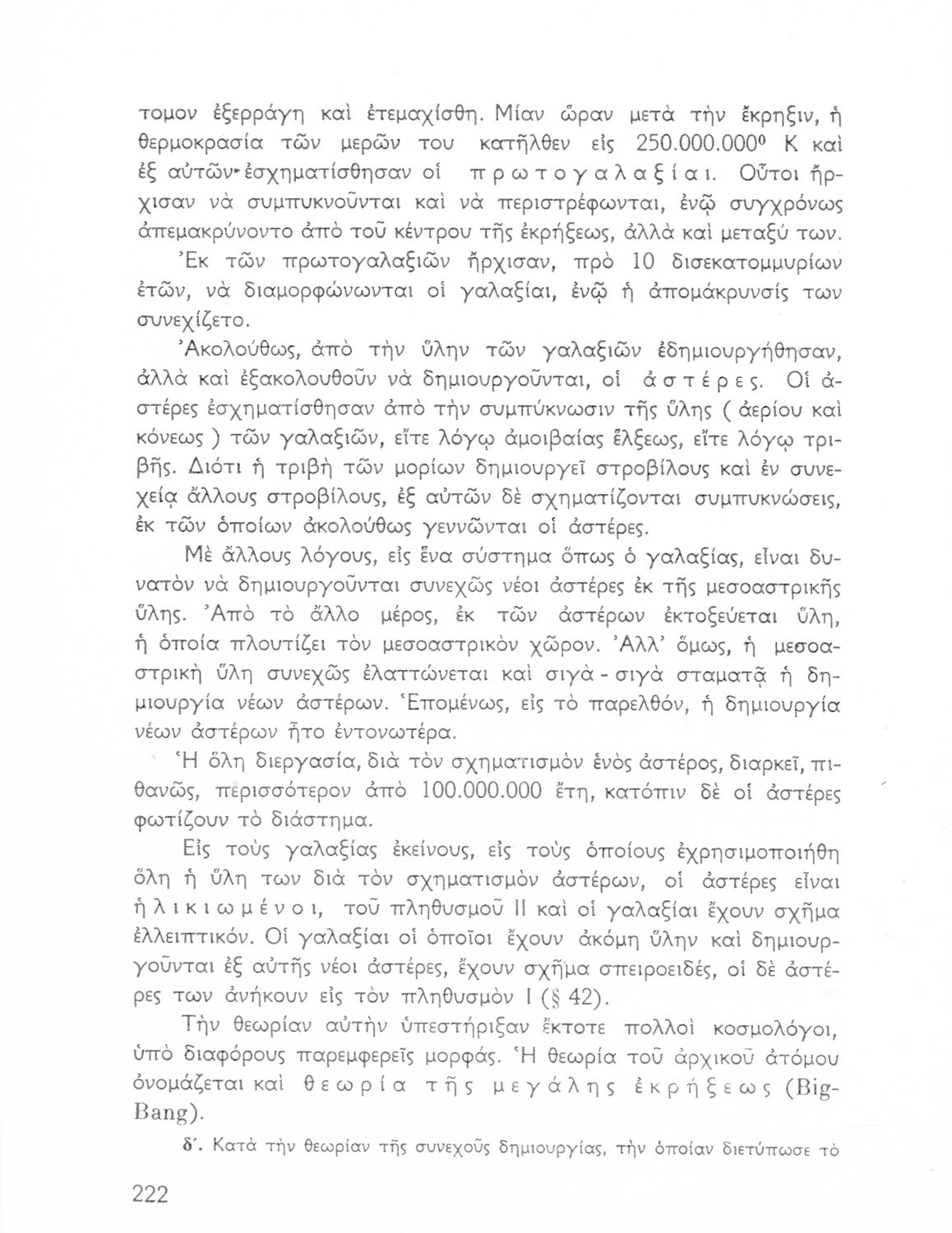Σχολικό εγχειρίδιο Κοσμογραφίας ΣΤ΄ Γυμνασίου που πραγματεύεται τη μορφή, σύσταση, μέγεθος και κίνηση των γαλαξιών και των πλανητών. Περιέχει στοιχεία αστροναυτικής και πίνακα με 88 αστερισμούς, τα διεθνή ονόματα και τα σύμβολά τους.