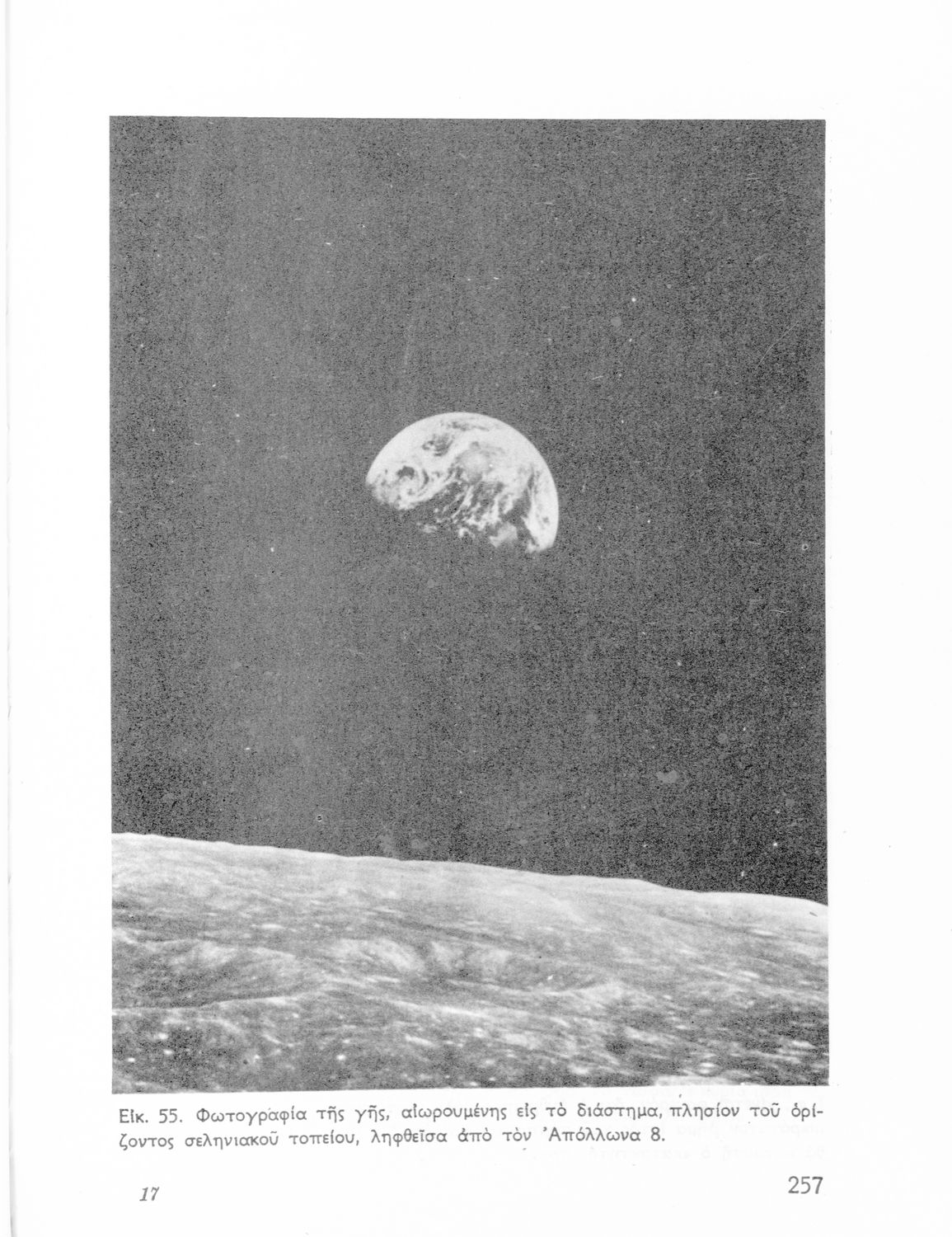 Σχολικό εγχειρίδιο Κοσμογραφίας ΣΤ΄ Γυμνασίου που πραγματεύεται τη μορφή, σύσταση, μέγεθος και κίνηση των γαλαξιών και των πλανητών. Περιέχει στοιχεία αστροναυτικής και πίνακα με 88 αστερισμούς, τα διεθνή ονόματα και τα σύμβολά τους.