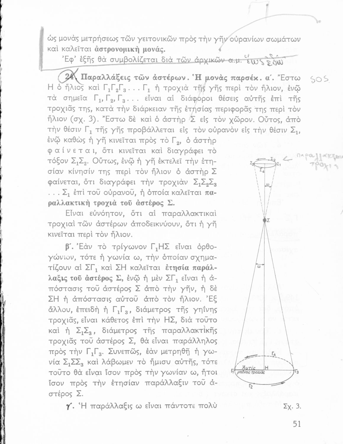 Σχολικό εγχειρίδιο Κοσμογραφίας ΣΤ΄ Γυμνασίου που εστιάζει στην κίνηση των πλανητών και στον τρόπο υπολογισμού της τροχιάς τους.