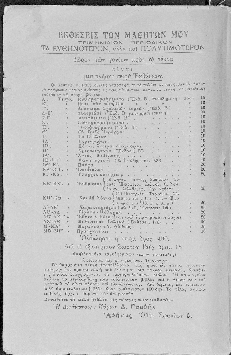 Εκδότης: Τυπογραφείον Π .Δ. Κυριακού Έτος έκδοσης: 1937 Τόπος έκδοσης: Αθήνα Έκδοση: 1η |