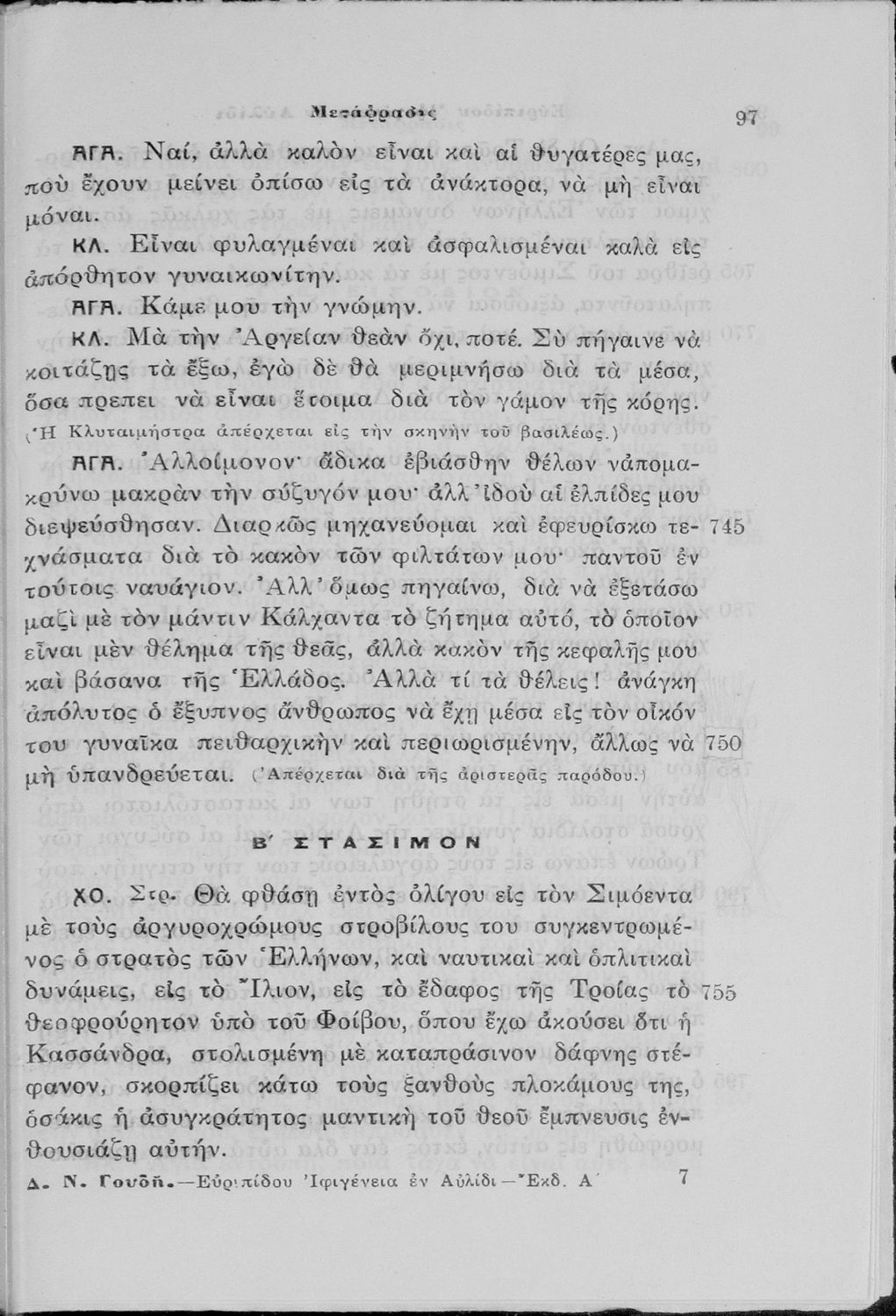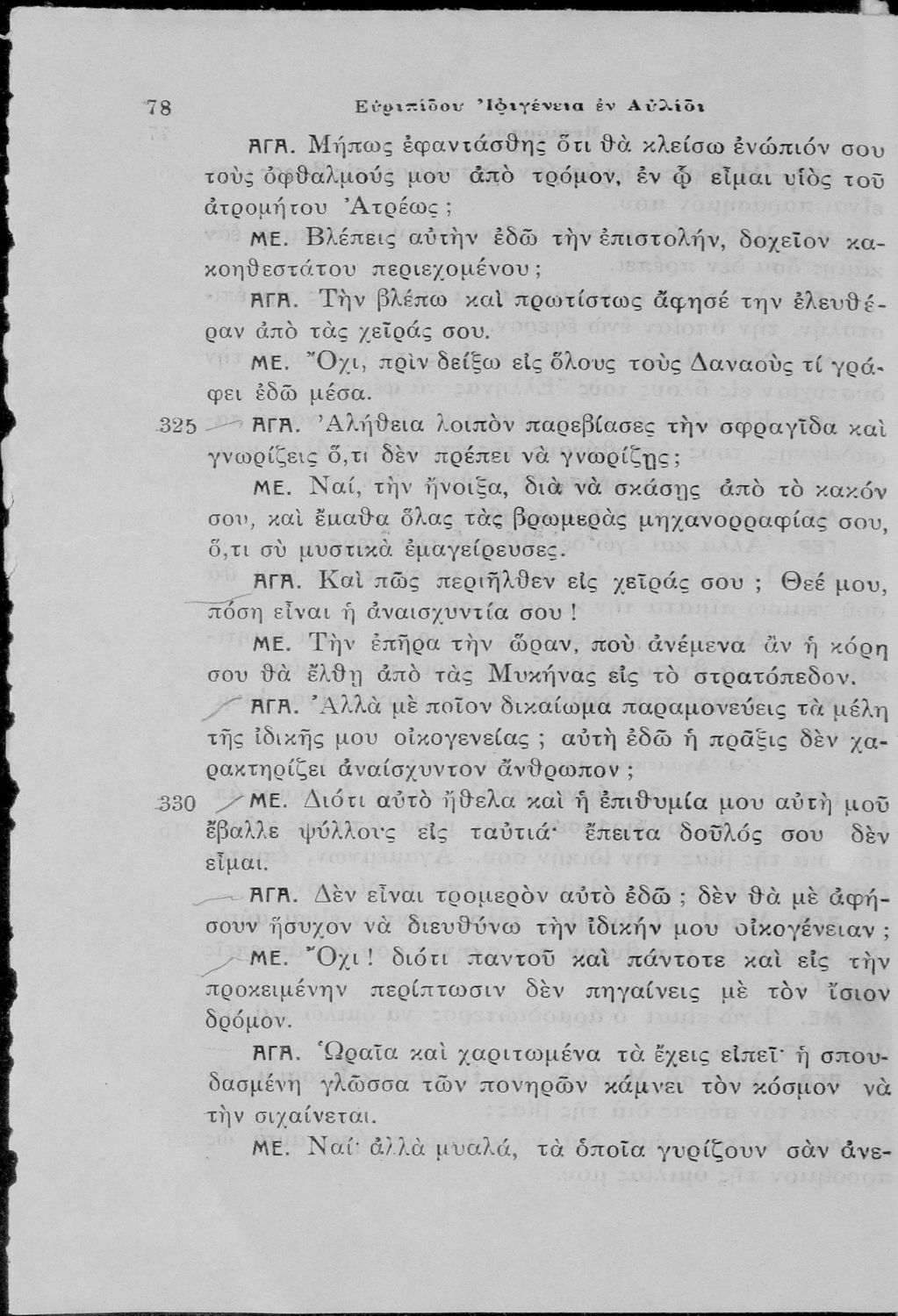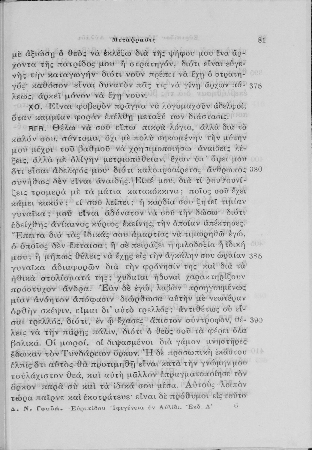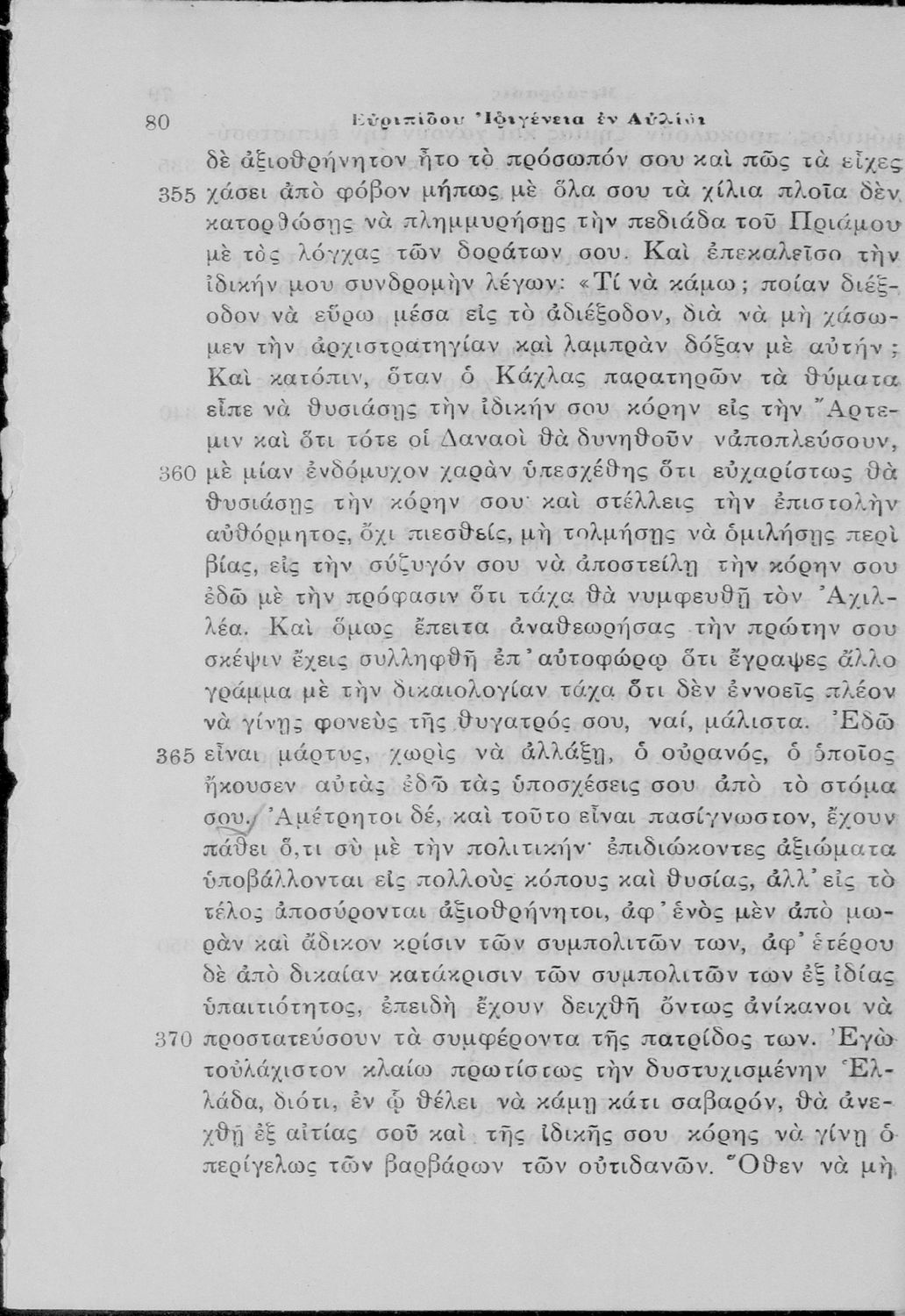 Τίτλος: Ευριπίδου Ιφιγένεια εν Αυλίδι, προς χρήσιν των μαθητών της Ε΄ τάξεως των Γυμνασίων και της αντιστοίχου των άλλων σχολείων
