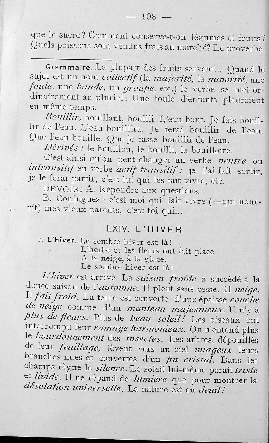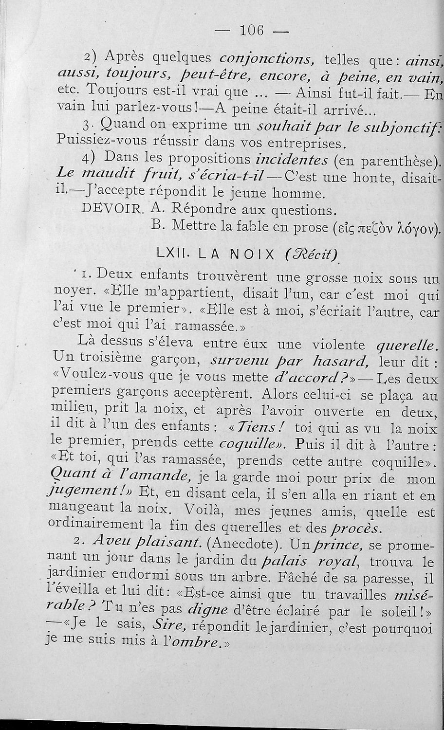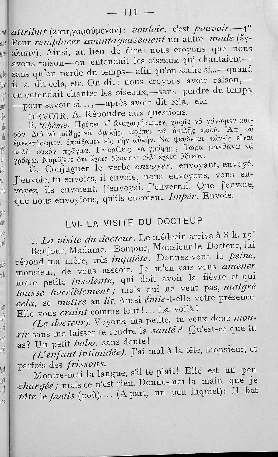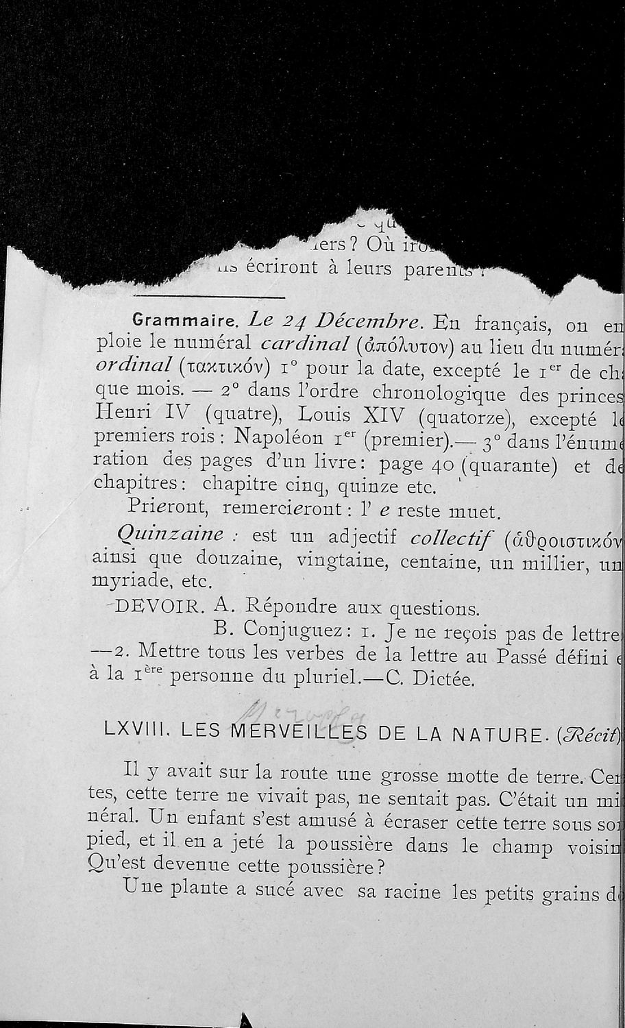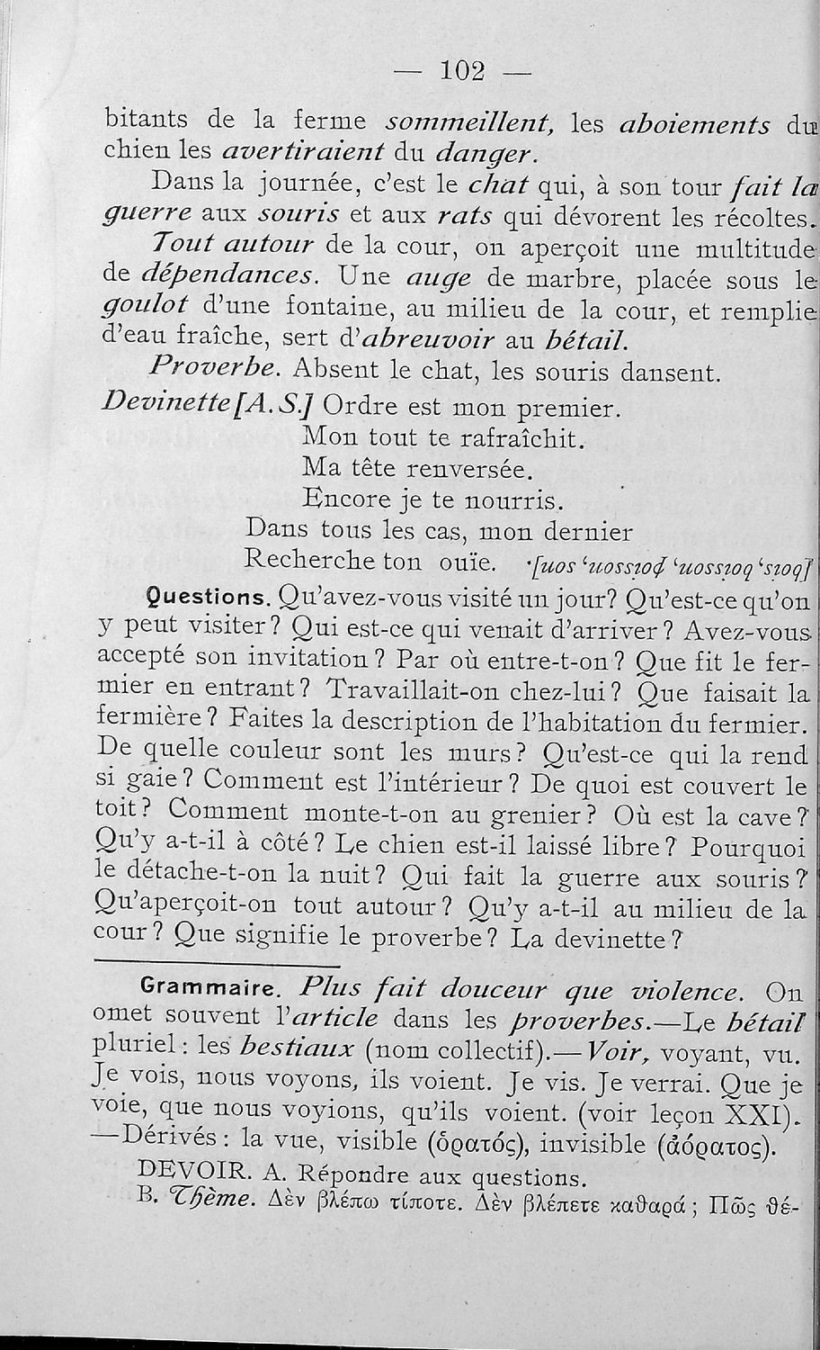 Σχολικό εγχειρίδιο Γαλλικών Β΄ και Γ' Ελληνικού Σχολείου, Αστικού Σχολείου και Παρθεναγωγείου που περιλαμβάνει κείμενα, κανόνες γραμματικής και συντακτικού, ερωτήσεις και ασκήσεις κατανόησης, και λεξιλογικά ...
