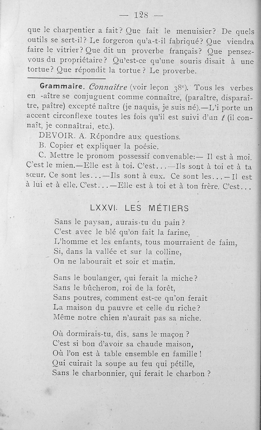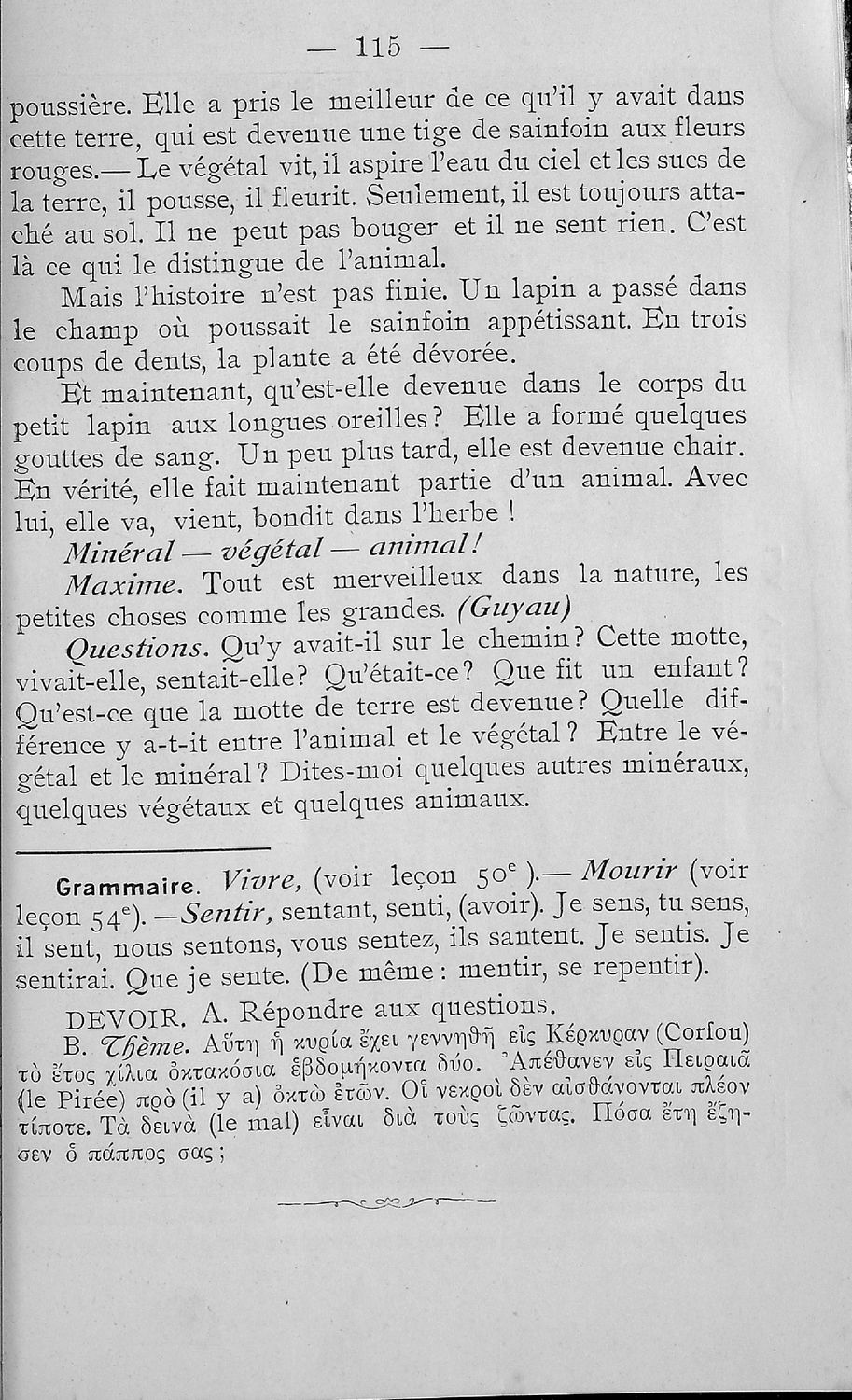 520 ## _aΣχολικό εγχειρίδιο Γαλλικών για τη Β΄ και Γ΄ των Ελληνικών Σχολείων που περιέχει θεωρία, ποιήματα, πεζά, λεξιλόγιο και ασκήσεις. Ο συγγραφέας ήταν καθηγητής της Γαλλικής στο ΕΜΠ.