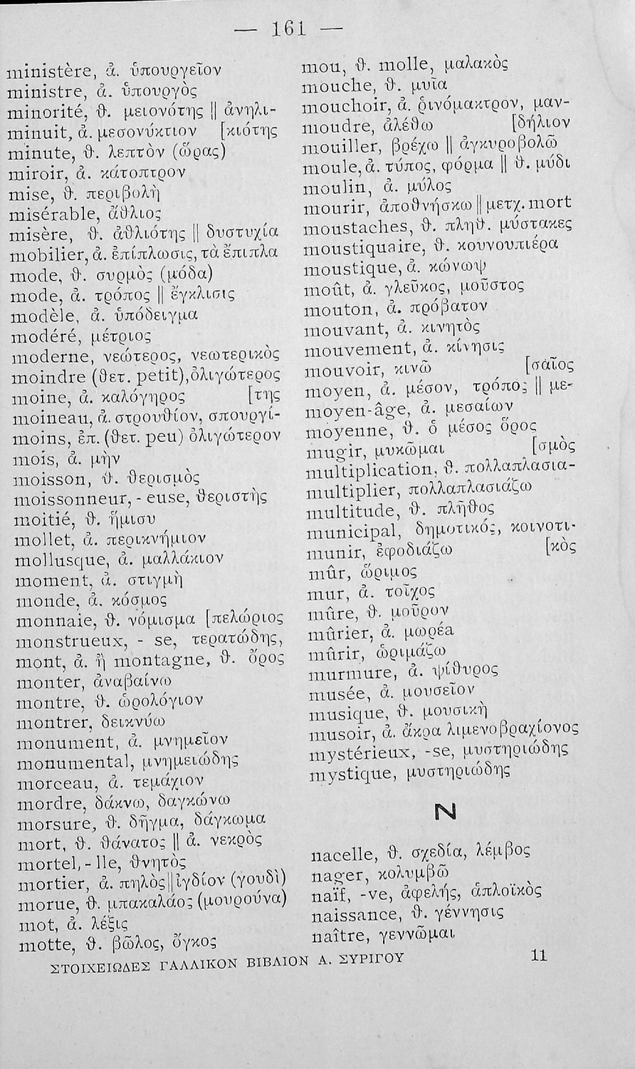 Σχολικό εγχειρίδιο Γαλλικών για τις Β΄ και Γ' Ελληνικού Σχολείου, Αστικού Σχολείου και Παρθεναγωγείου που περιλαμβάνει κείμενα, κανόνες γραμματικής και συντακτικού, λεξιλογικά και πραγματολογικά σχόλια.